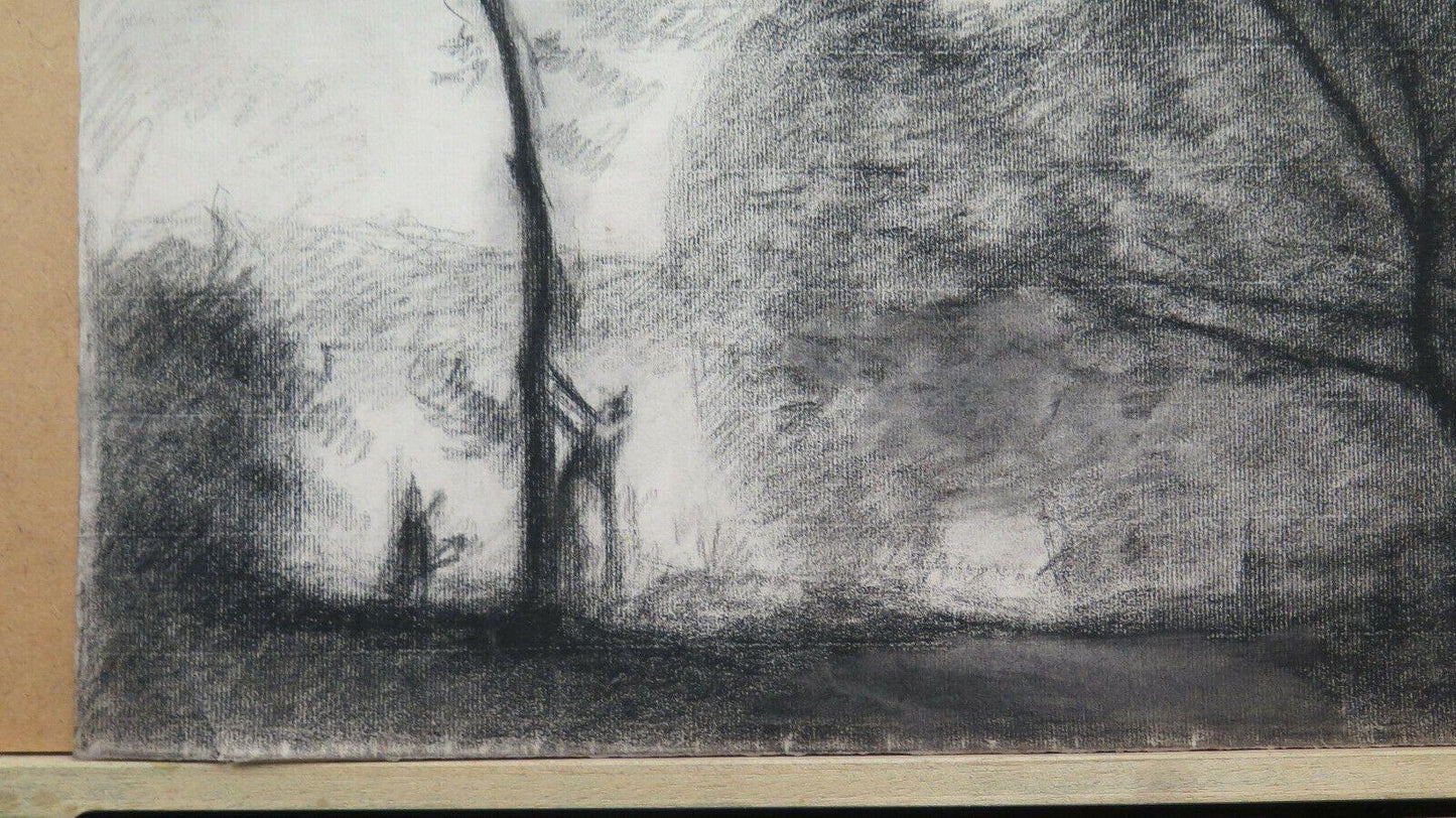 DISEGNO ANTICO SPETTRALE PAESAGGIO DI CAMPAGNA Pierre Duteurtre detto DUT BM53.1