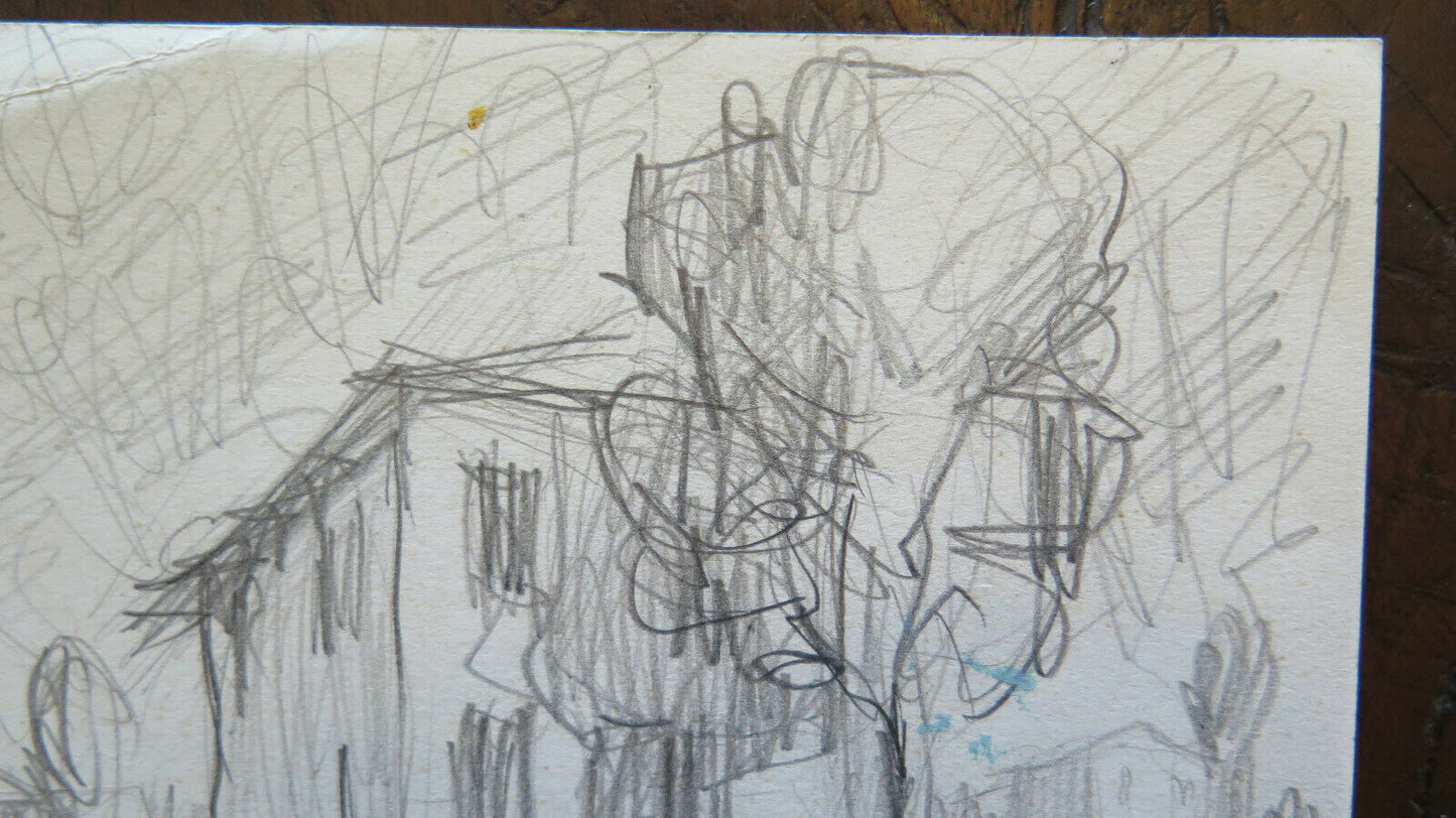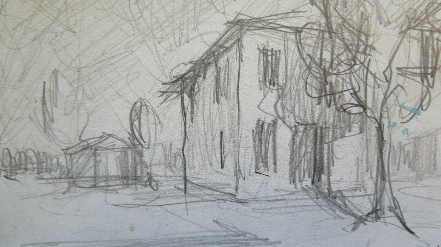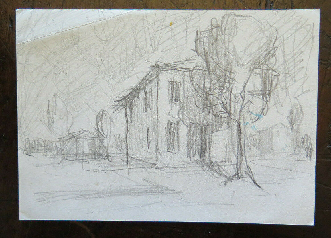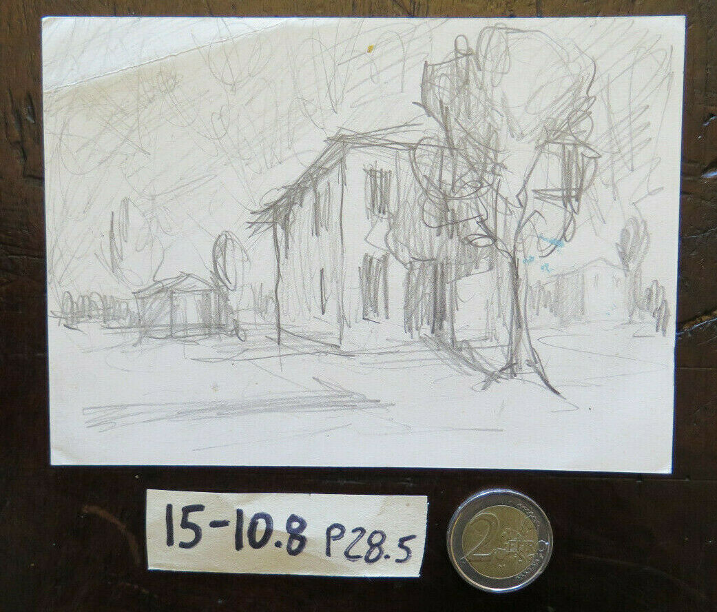 DISEGNO ANTICO STUDIO PREPARATORIO VEDUTA CASA CAMPAGNA BOZZETTO ORIGINALE P28.5