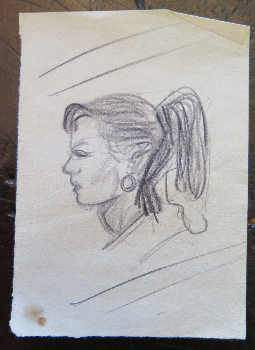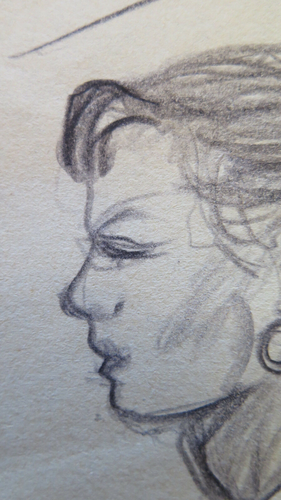 DISEGNO VINTAGE BOZZETTO PREPARATORIO AUTORE G. PANCALDI RITRATTO PROFILO P28.5