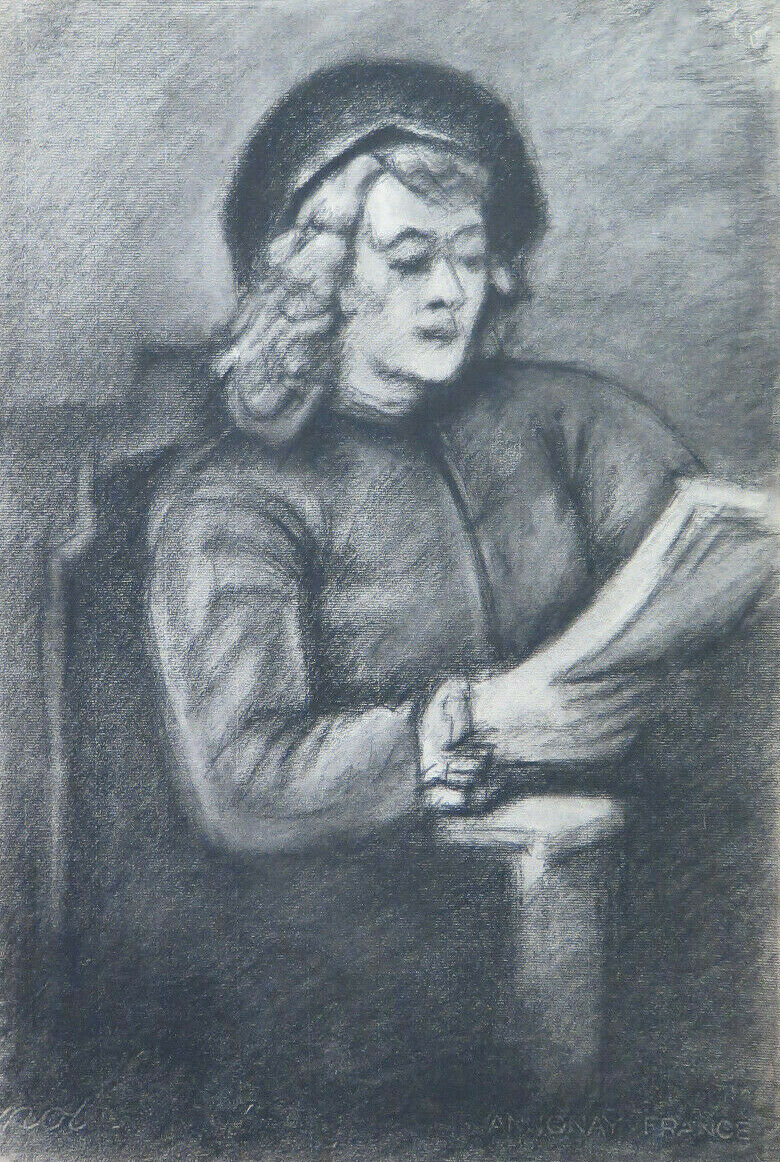 DONNA CHE LEGGE UN LIBRO GRANDE DISEGNO ANTICO DI Pierre Duteurtre DUT BM53.1