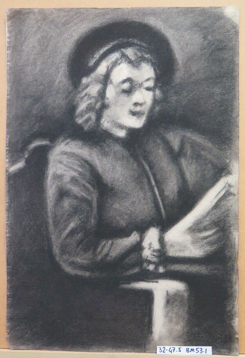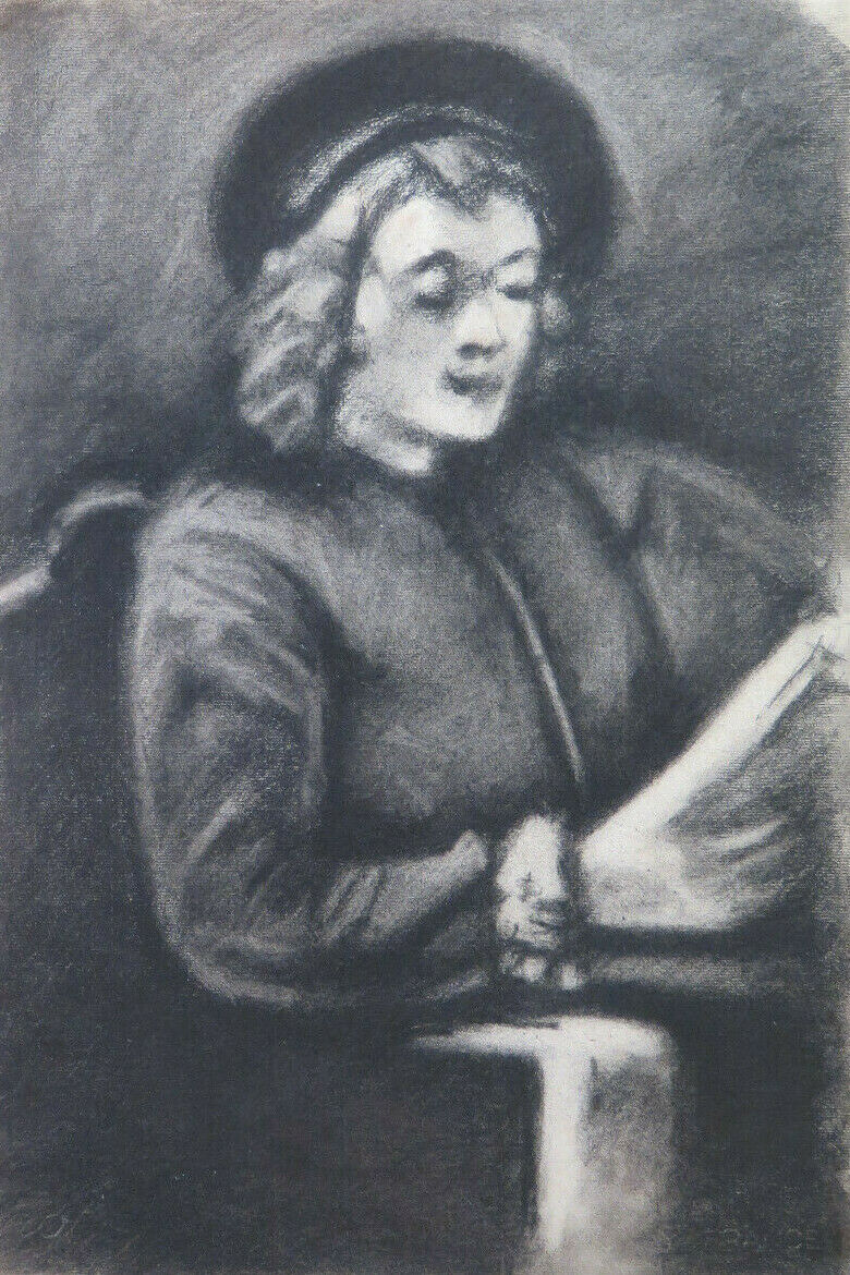 DONNA CHE LEGGE UN LIBRO GRANDE DISEGNO ANTICO OPERA Pierre Duteurtre DUT BM53.1