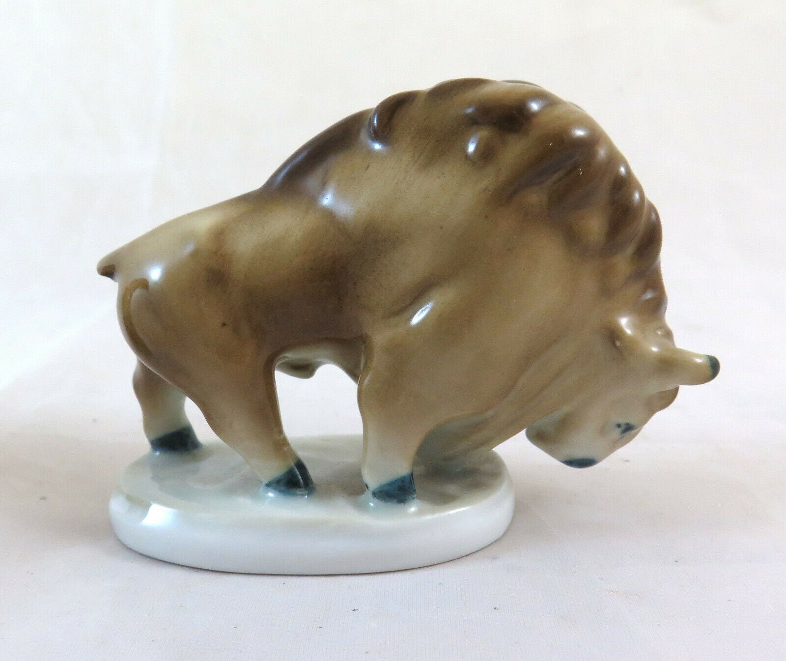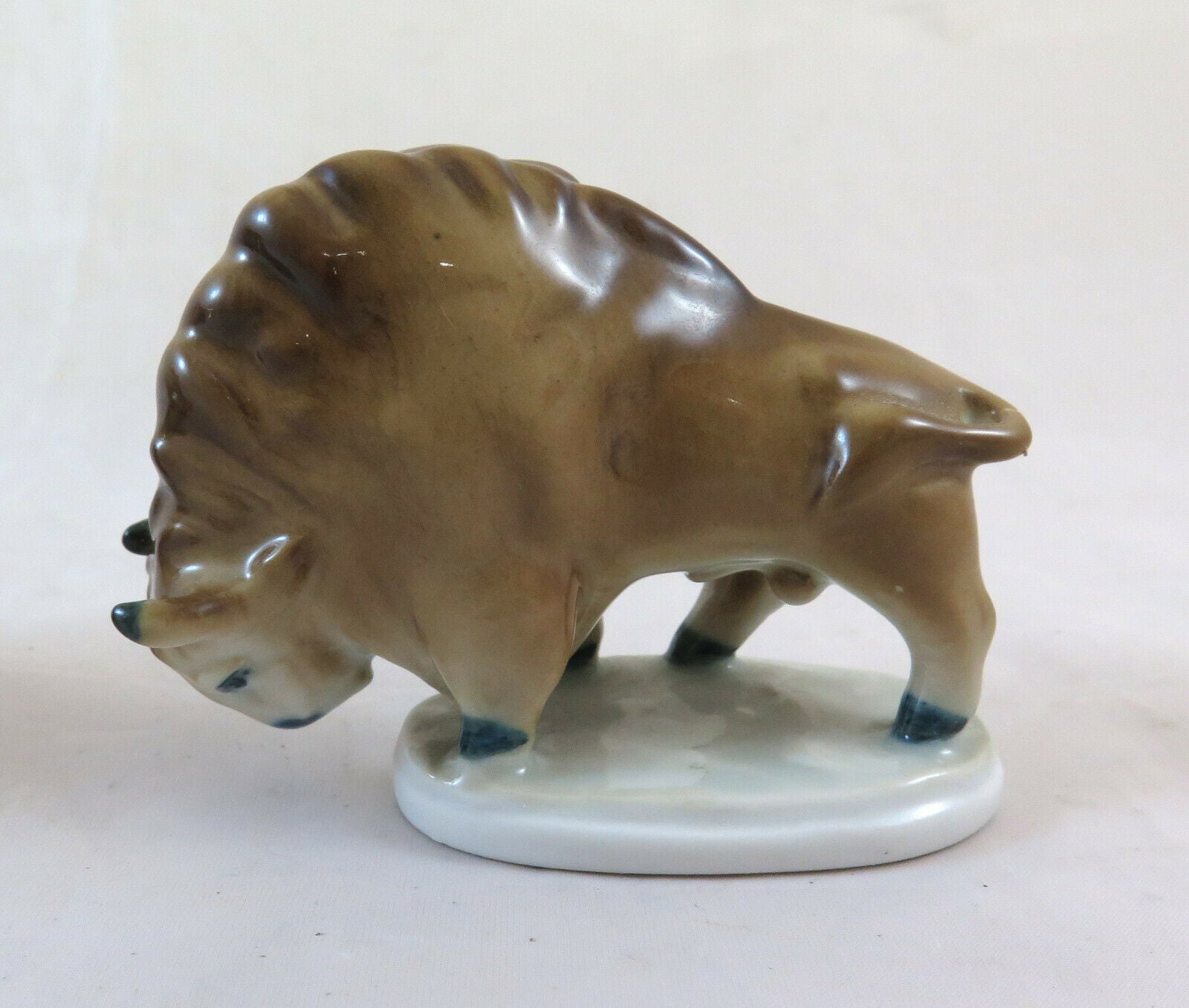 - Hand painted porcelain Hungarian Bison bull figurine. Has hallmark at bottom Zsolnay Hungary hand painted d.