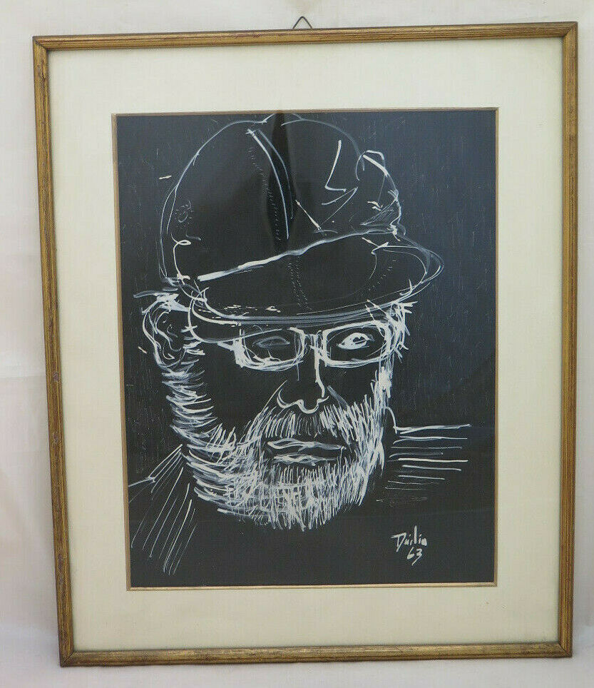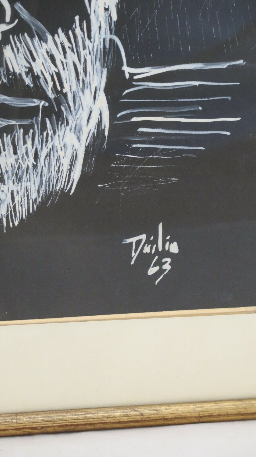 DUILIO GAMBINO 1937-2013 QUADRO VINTAGE RITRATTO DIPINTO SU CARTA BM51