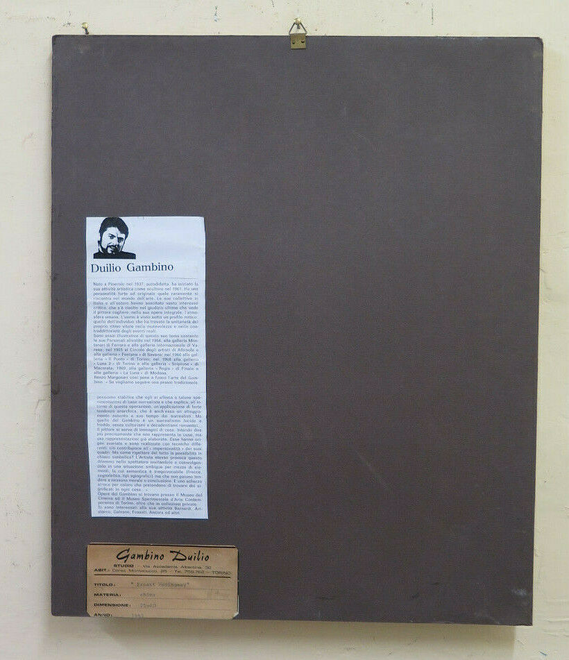 Ritratto opera del pittore piemontese Duilio Gambino, biografia e documentazione sul retro del quadro.