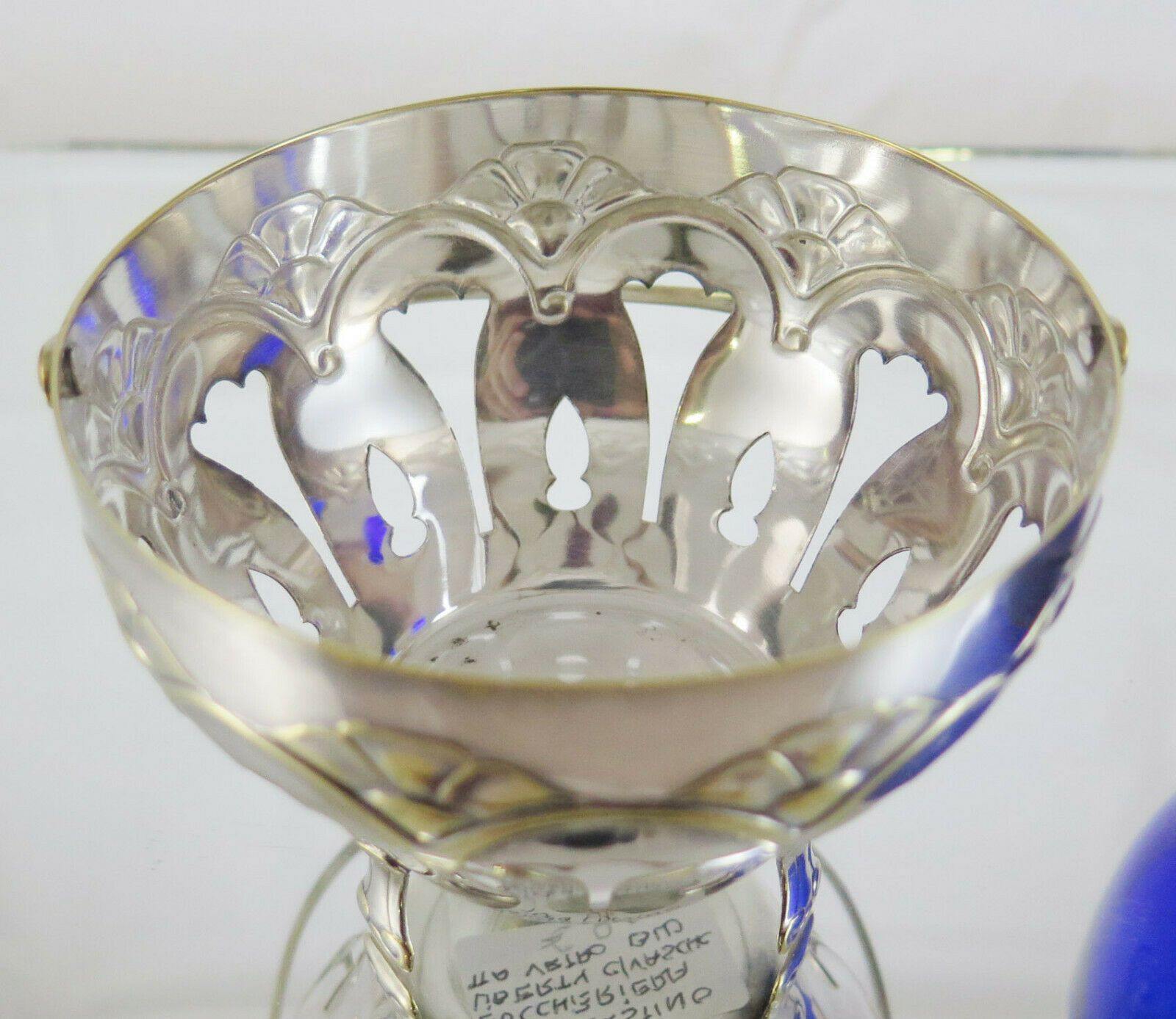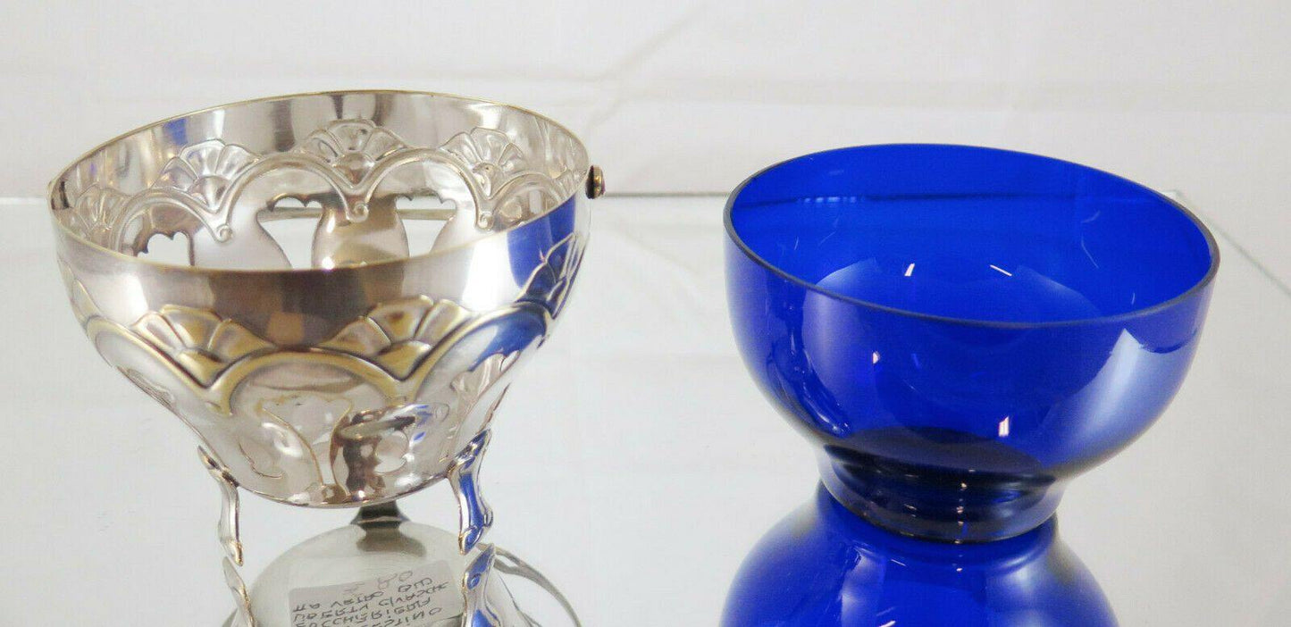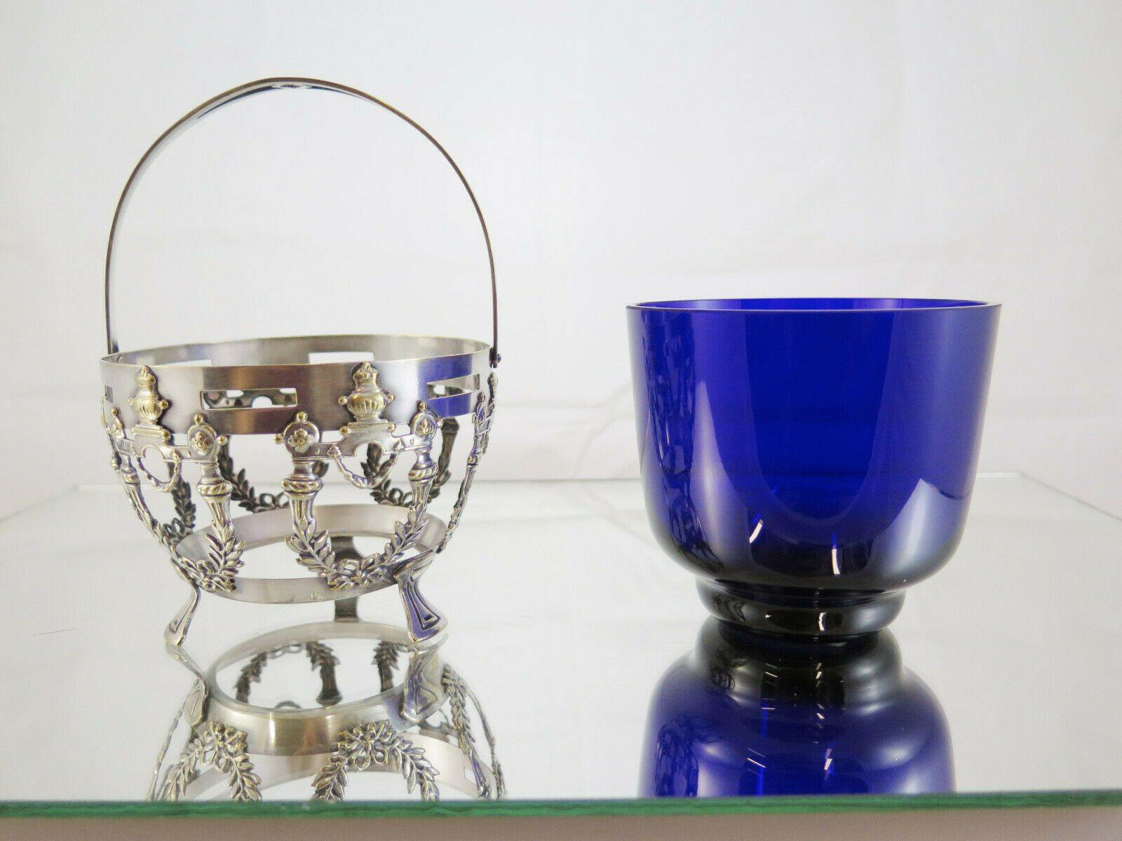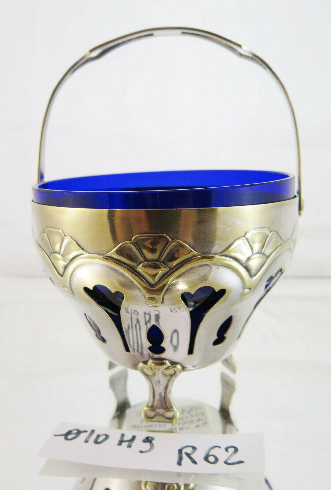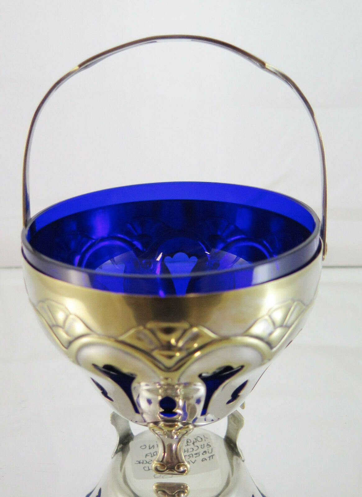 ELEGANTE ZUCCHERIERA ANTICA NEOCLASSICA ECLETTICA IN METALLO E VETRO BLU R62