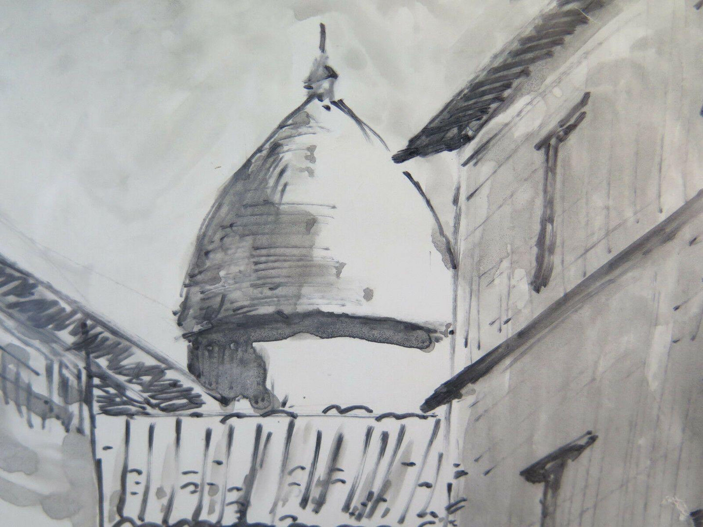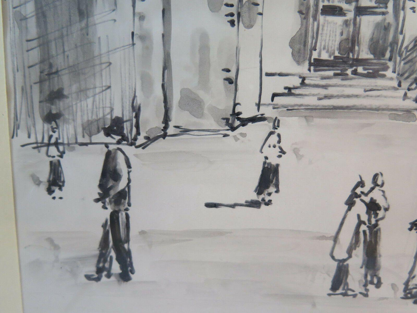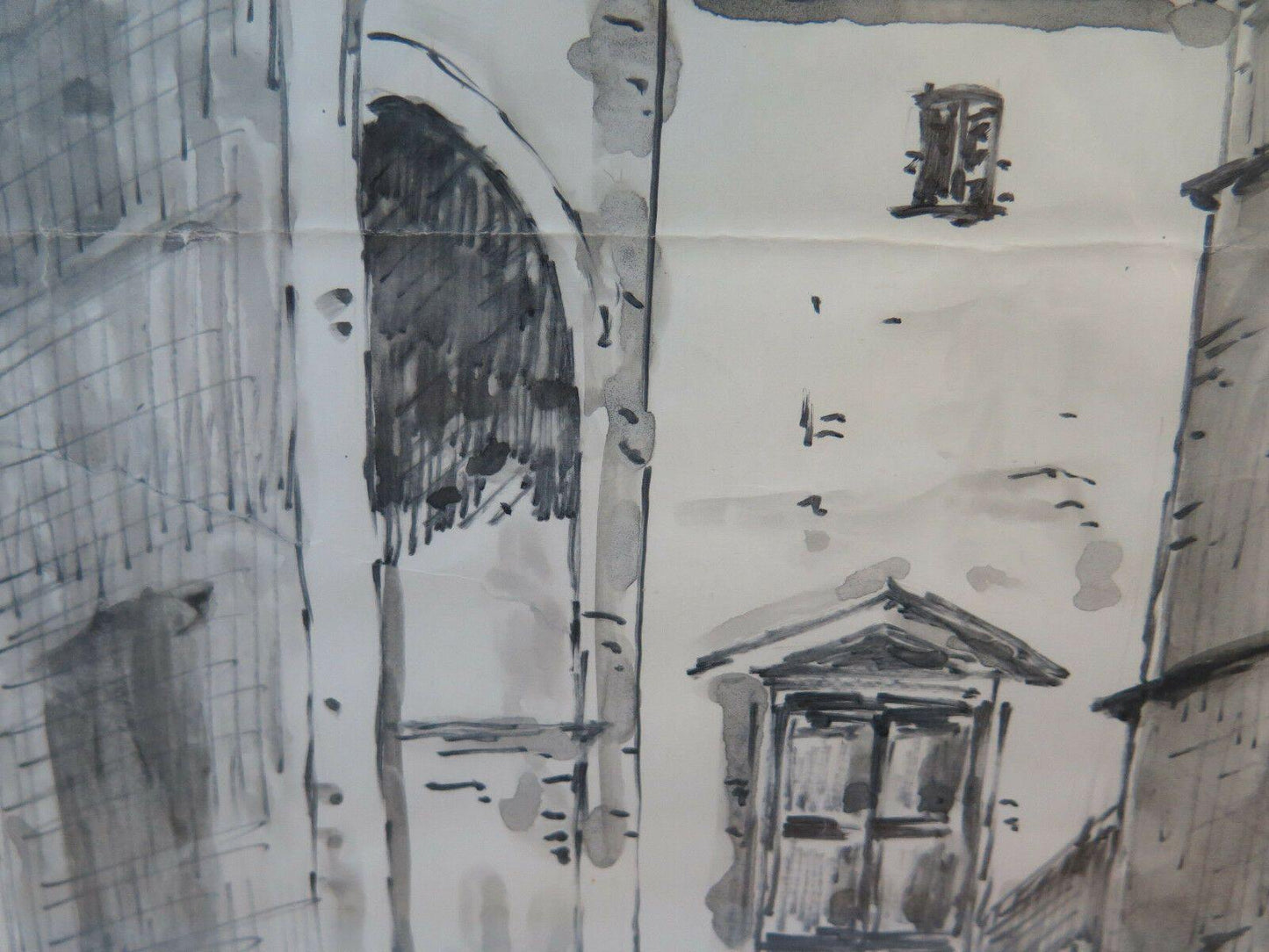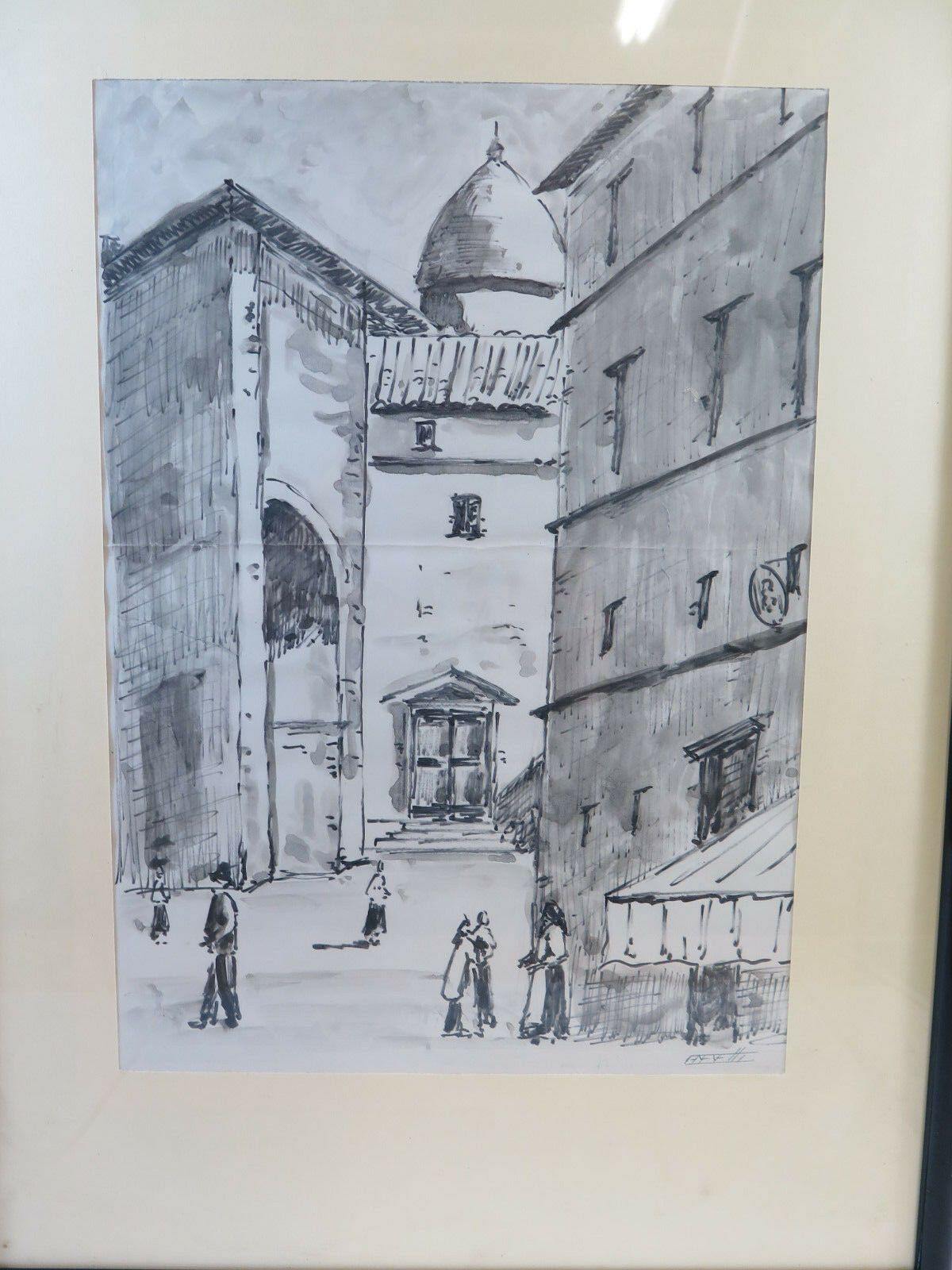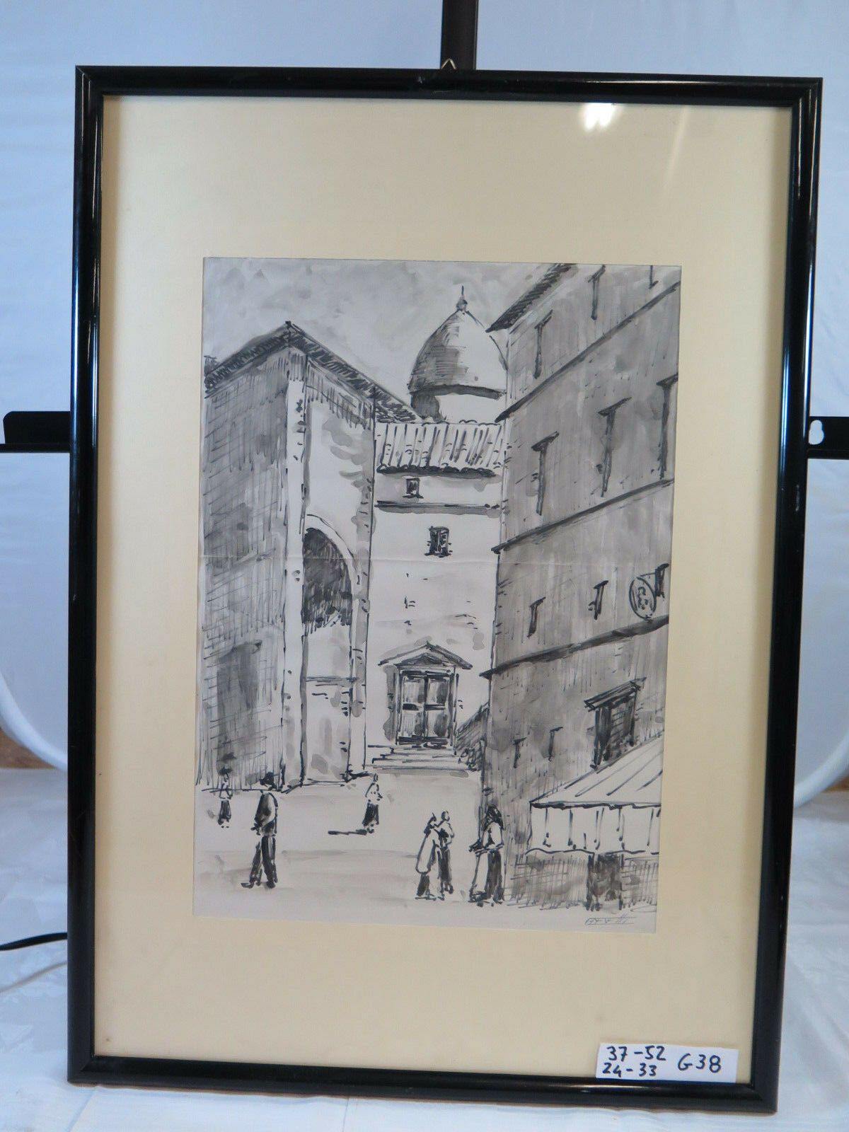 GENOVA CENTRO STORICO QUADRO VINTAGE DIPINTO ACQUERELLO SU CARTA VEDUTA G38