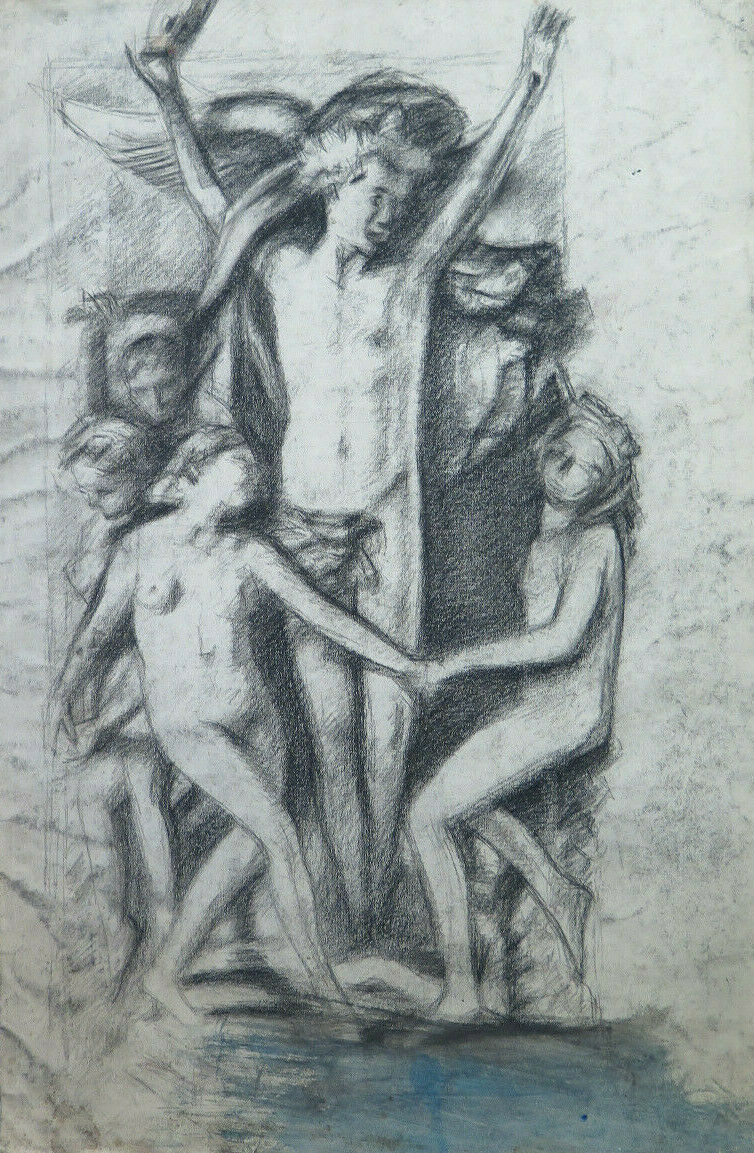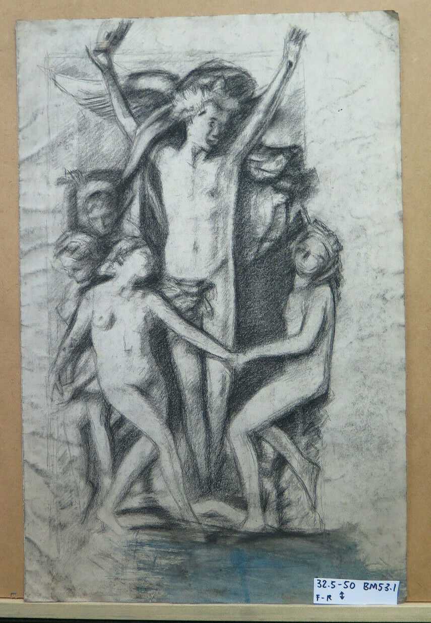 GRANDE DISEGNO ANTICO CON NUDI OPERA ARTISTA Pierre Duteurtre detto DUT BM53.1