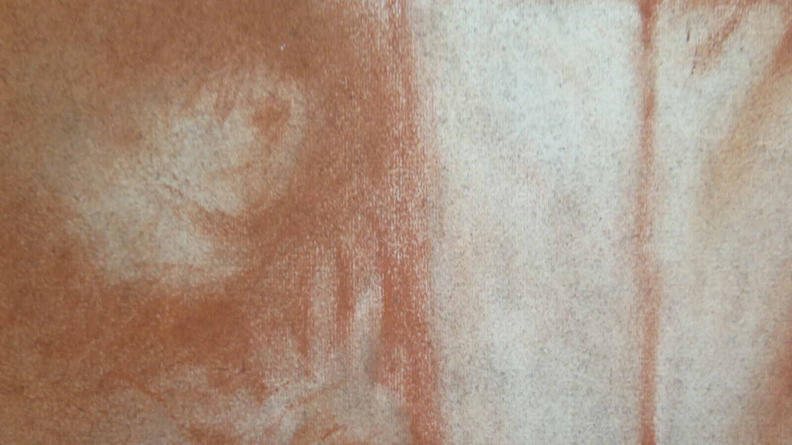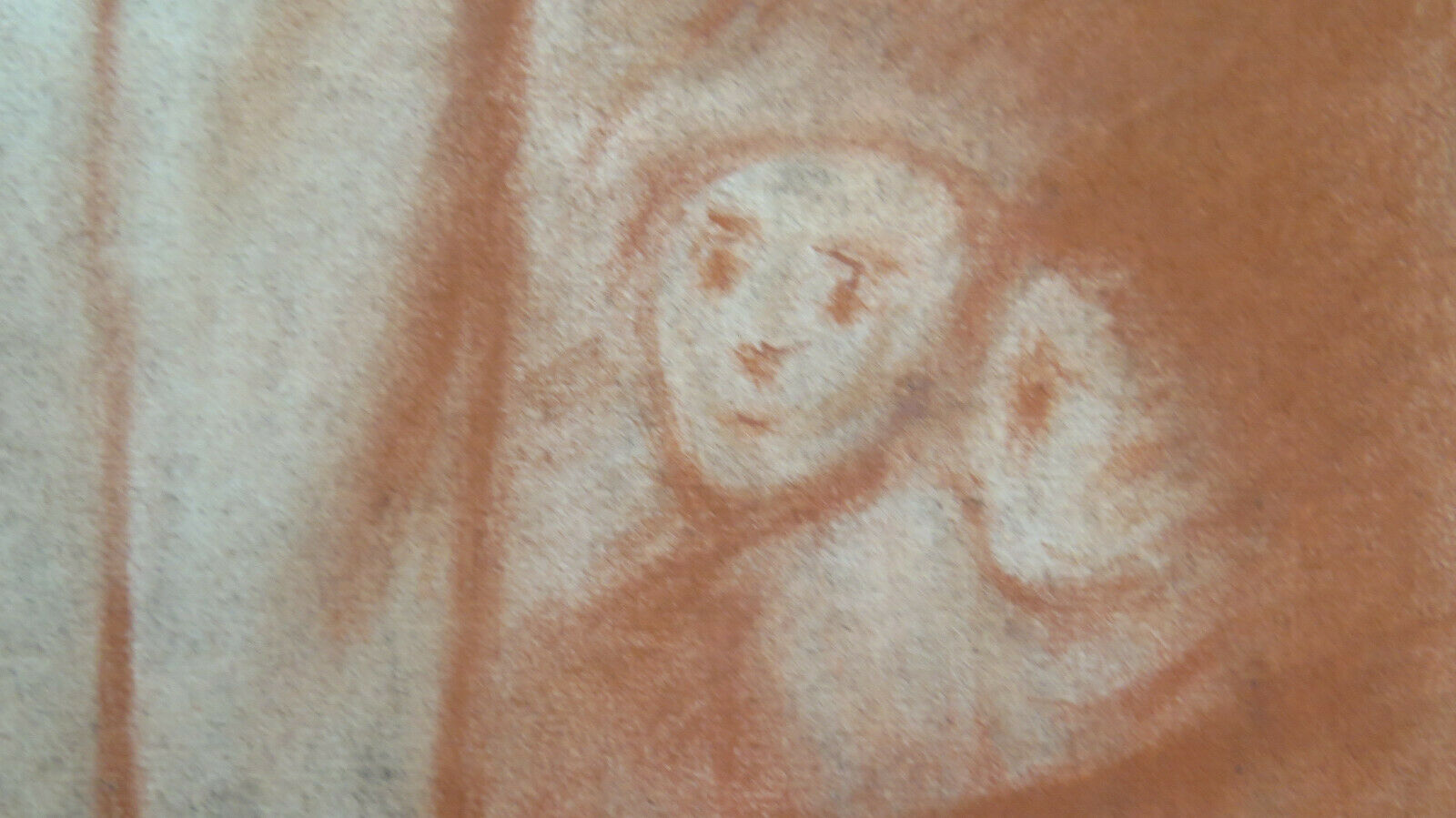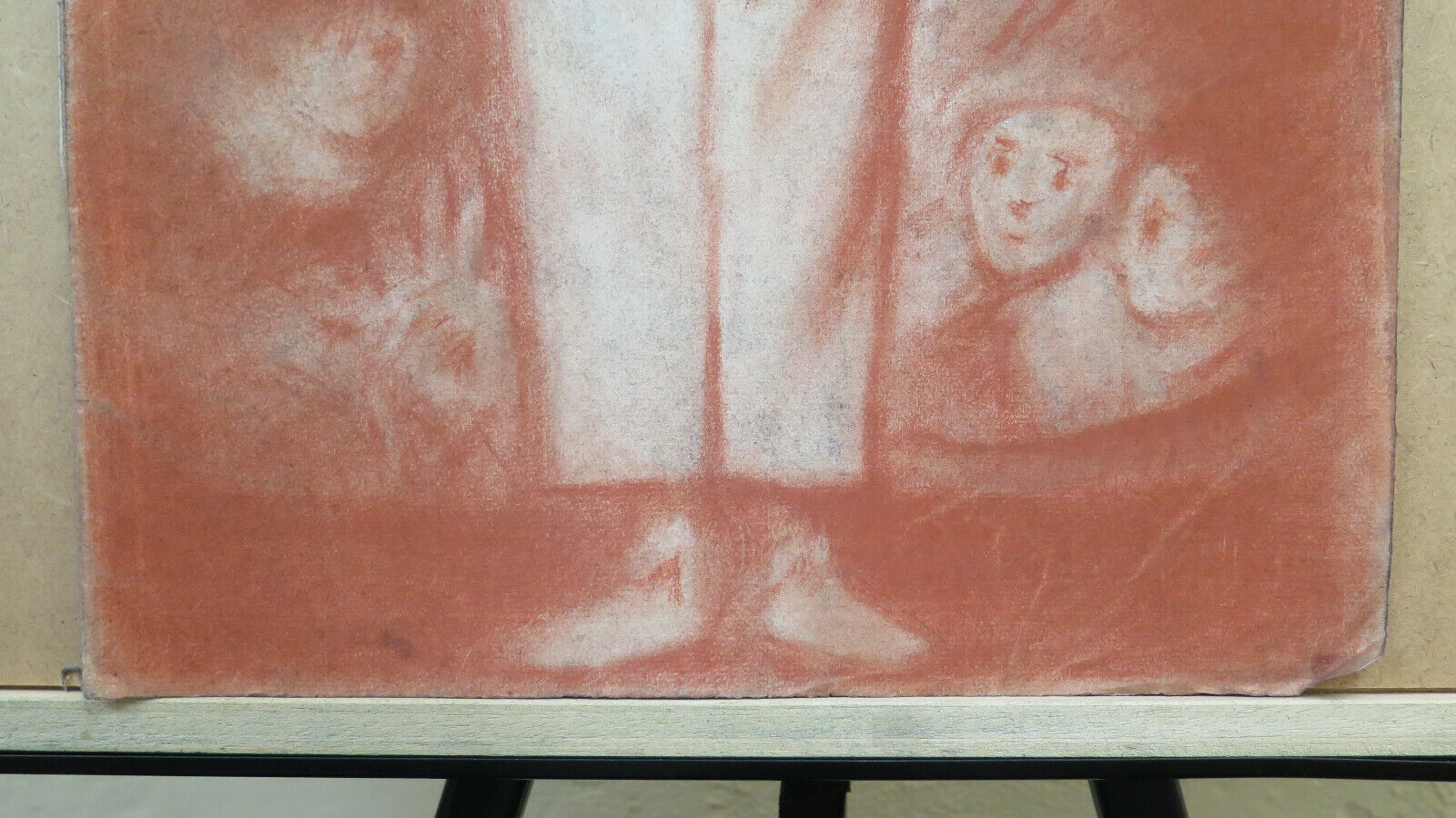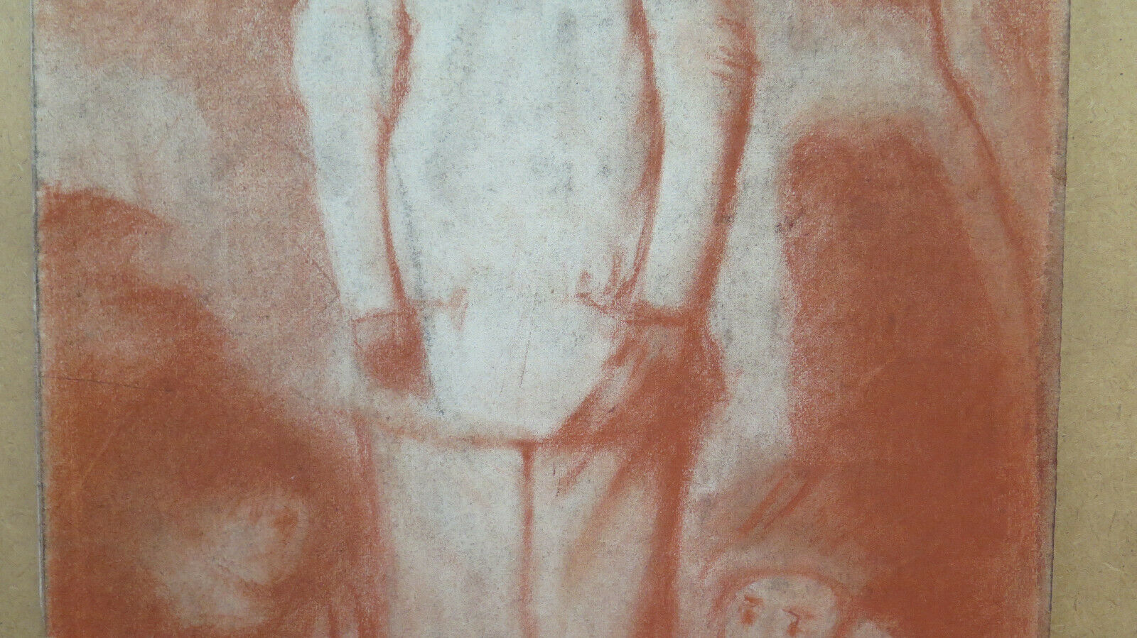 Large size sanguine drawing insipired by Jean-Antoine Watteau's"Pierrot". Probably a young age exercize.