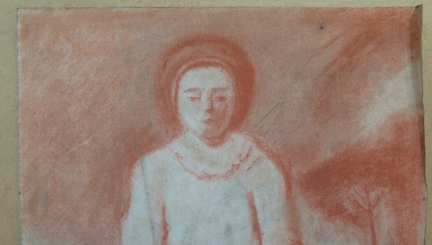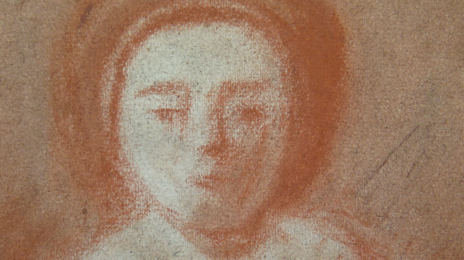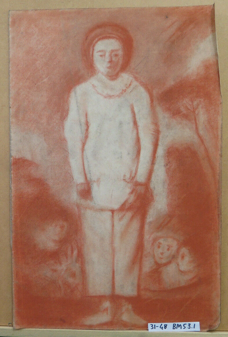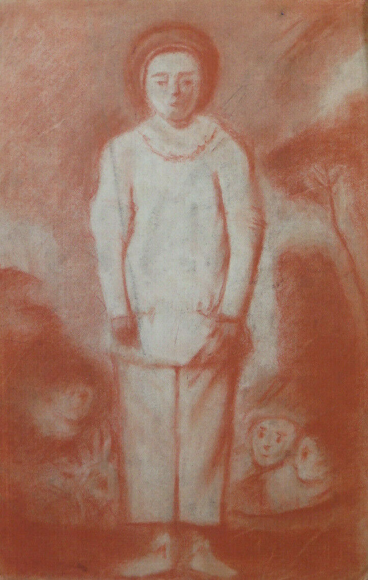 Large size sanguine drawing insipired by Jean-Antoine Watteau's"Pierrot". Probably a young age exercize.