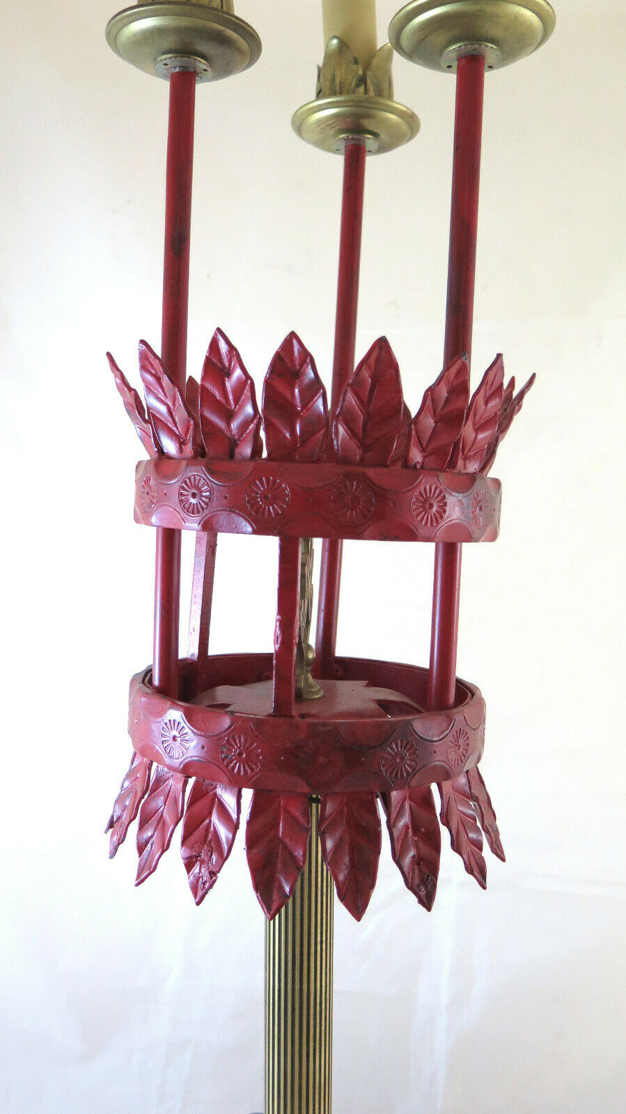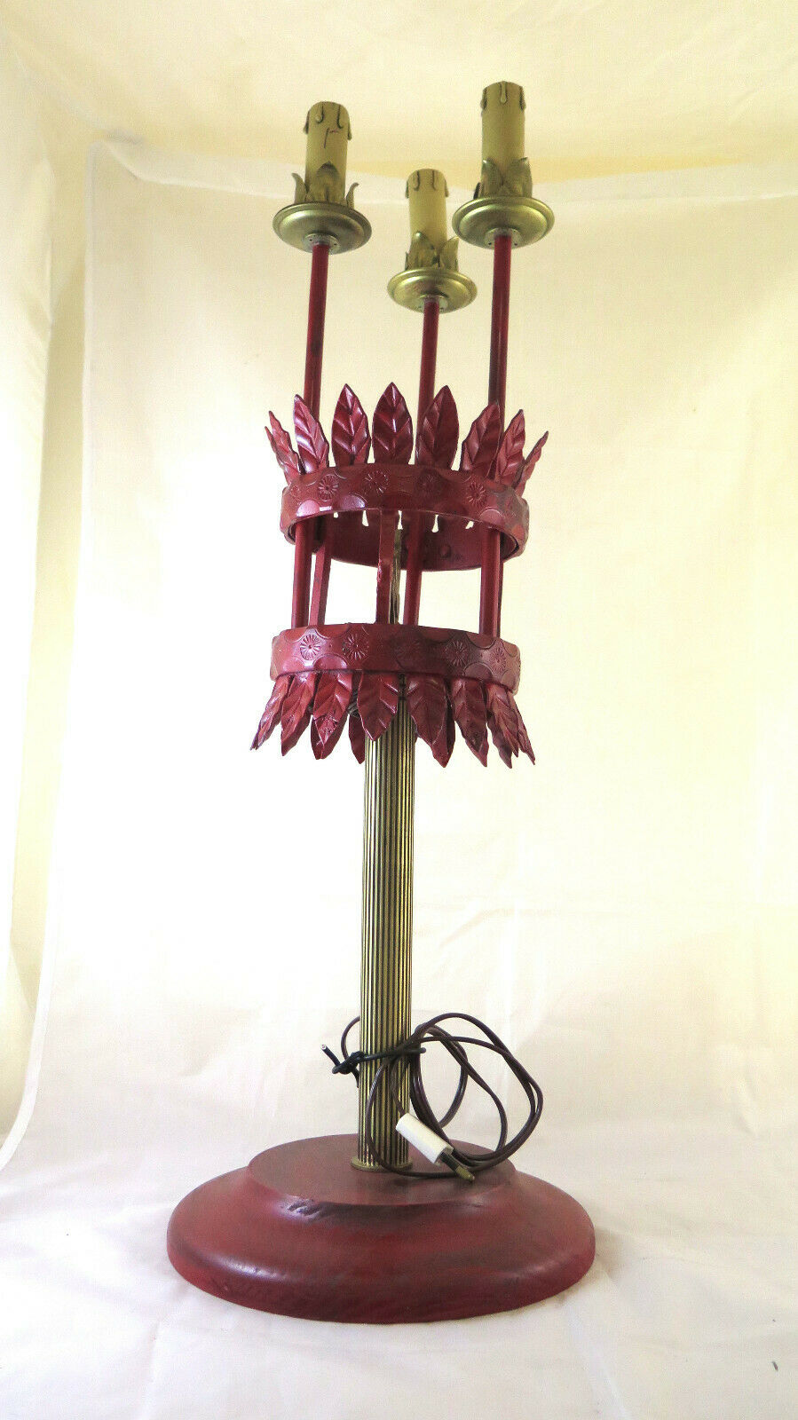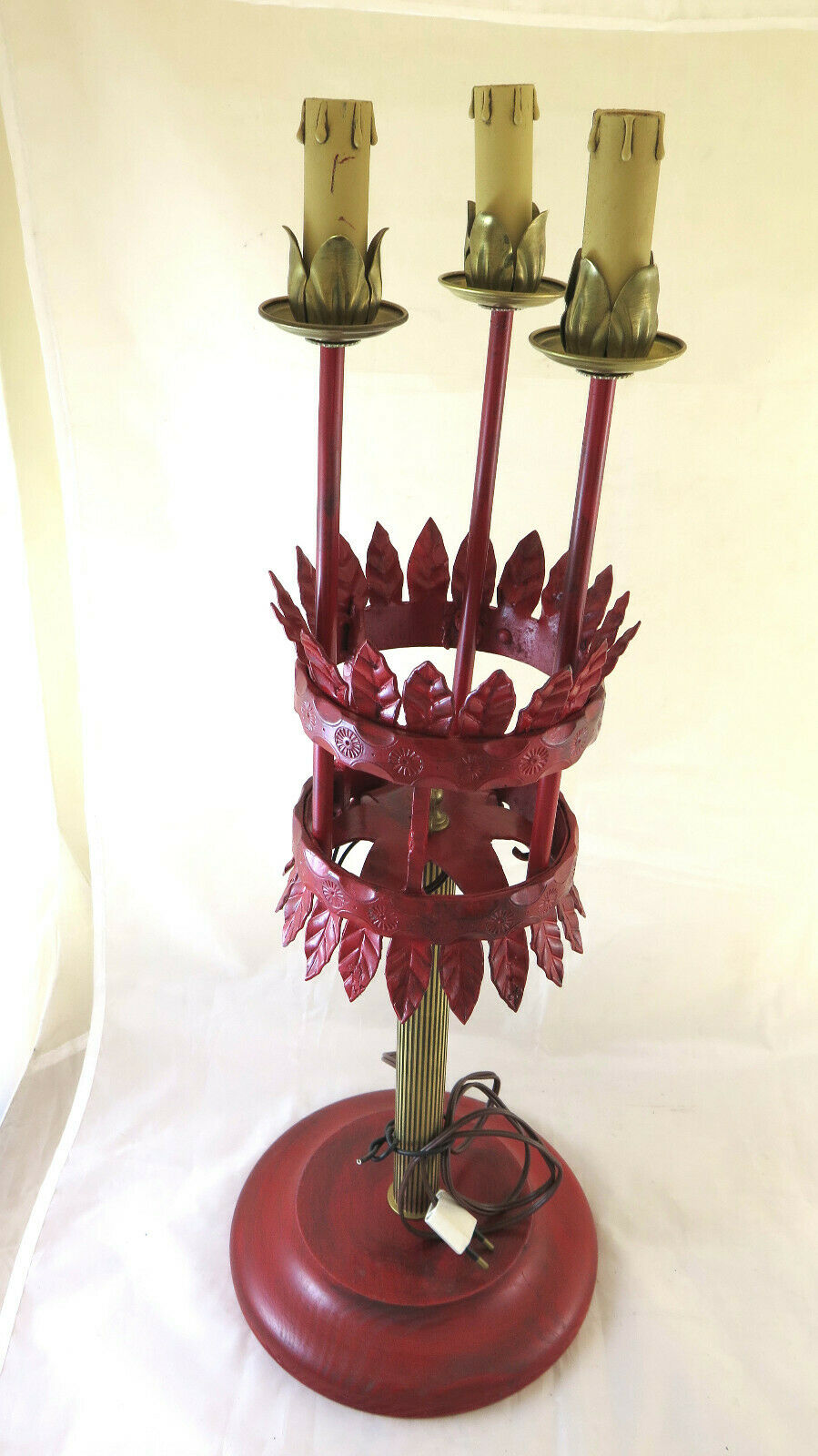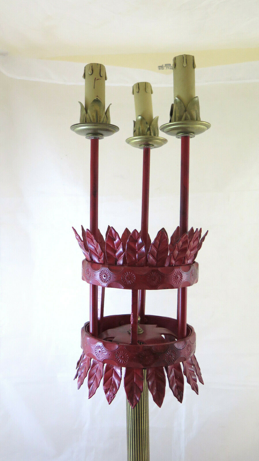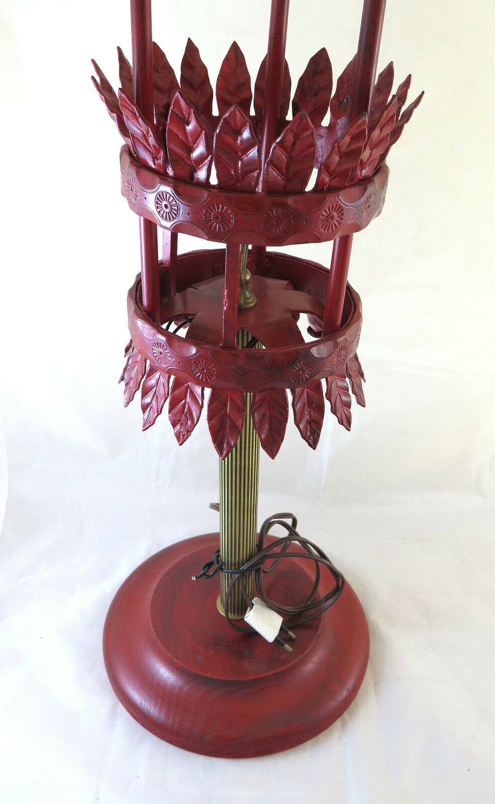 Elegante lampada da tavolo o da terra realizzata in ferro battuto e decorata con motivi floreali.