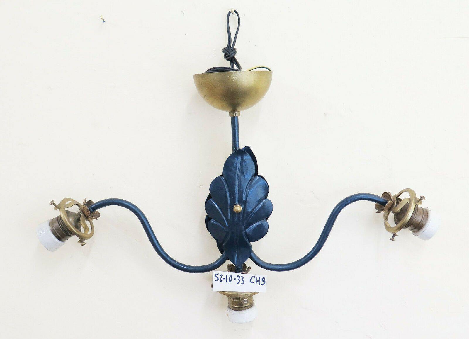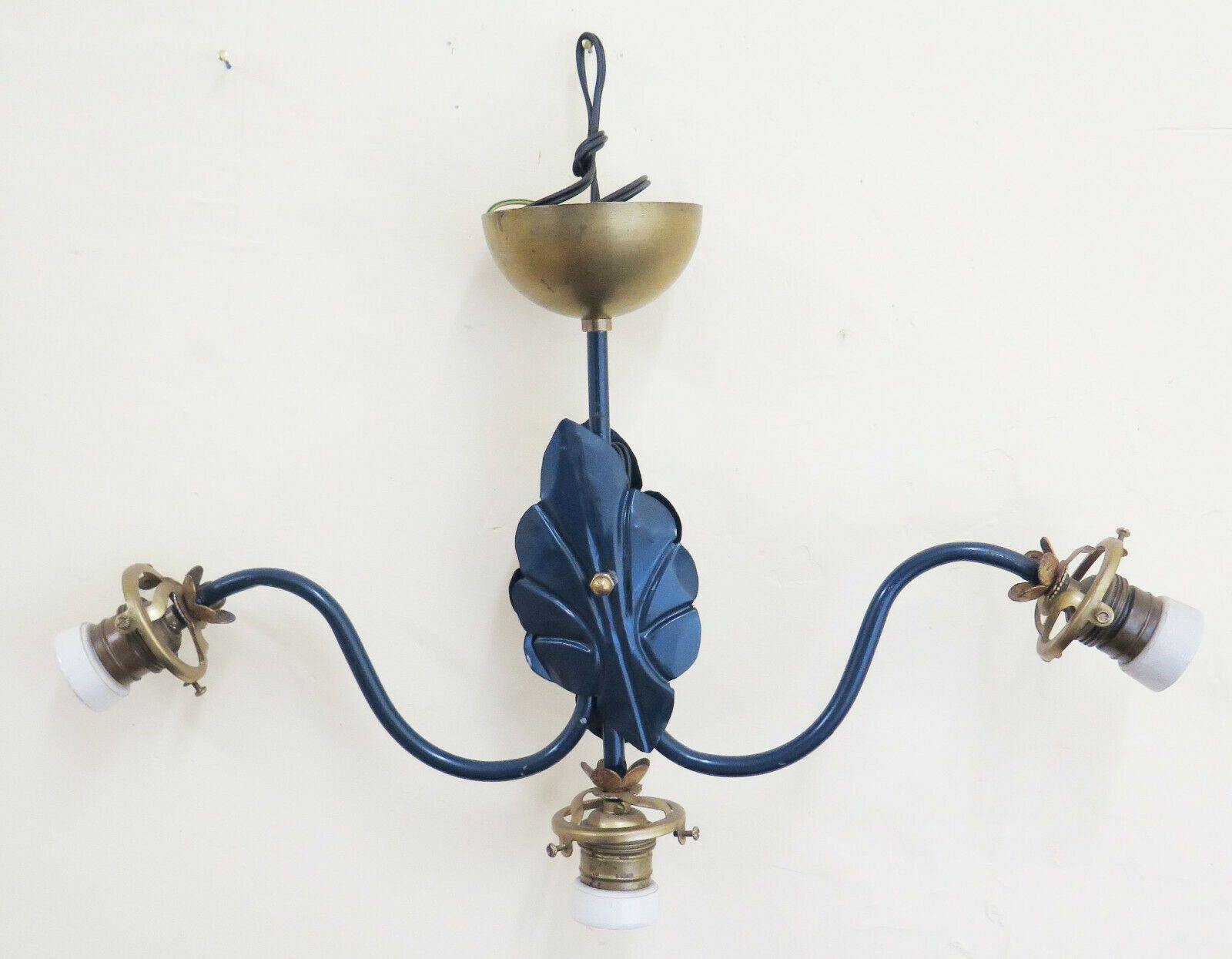 LAMPADARIO VINTAGE A TRE LUCI IN OTTONE EPOCA META' 900 MODERNARIATO DESIGN CH9