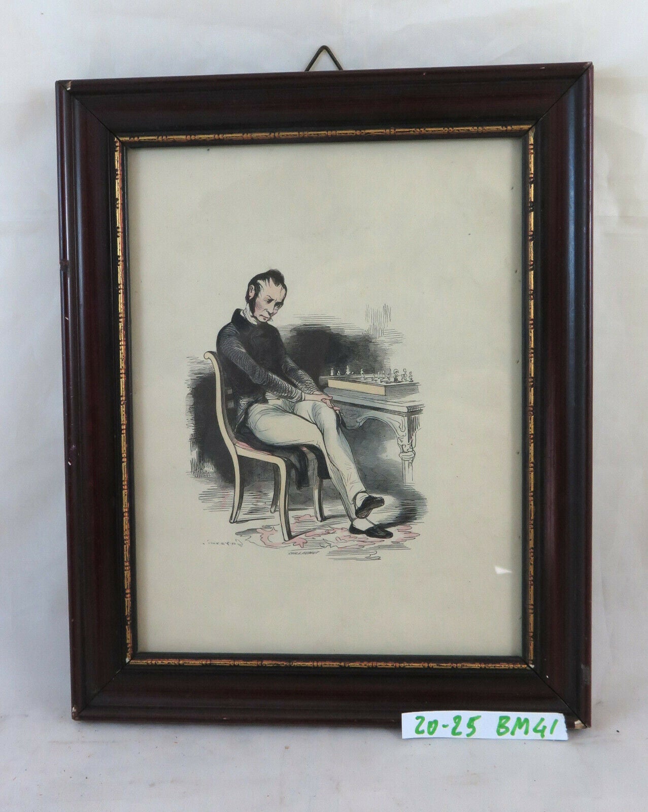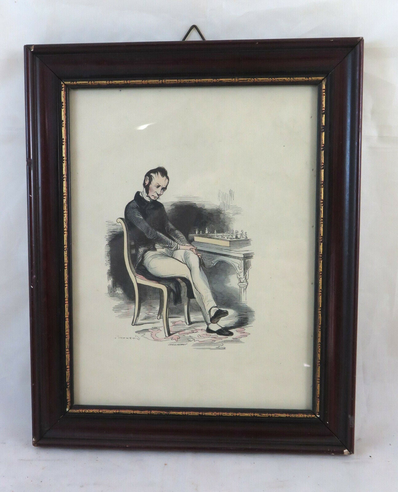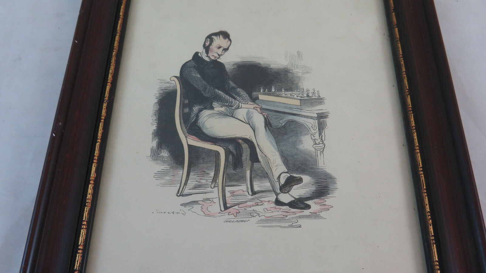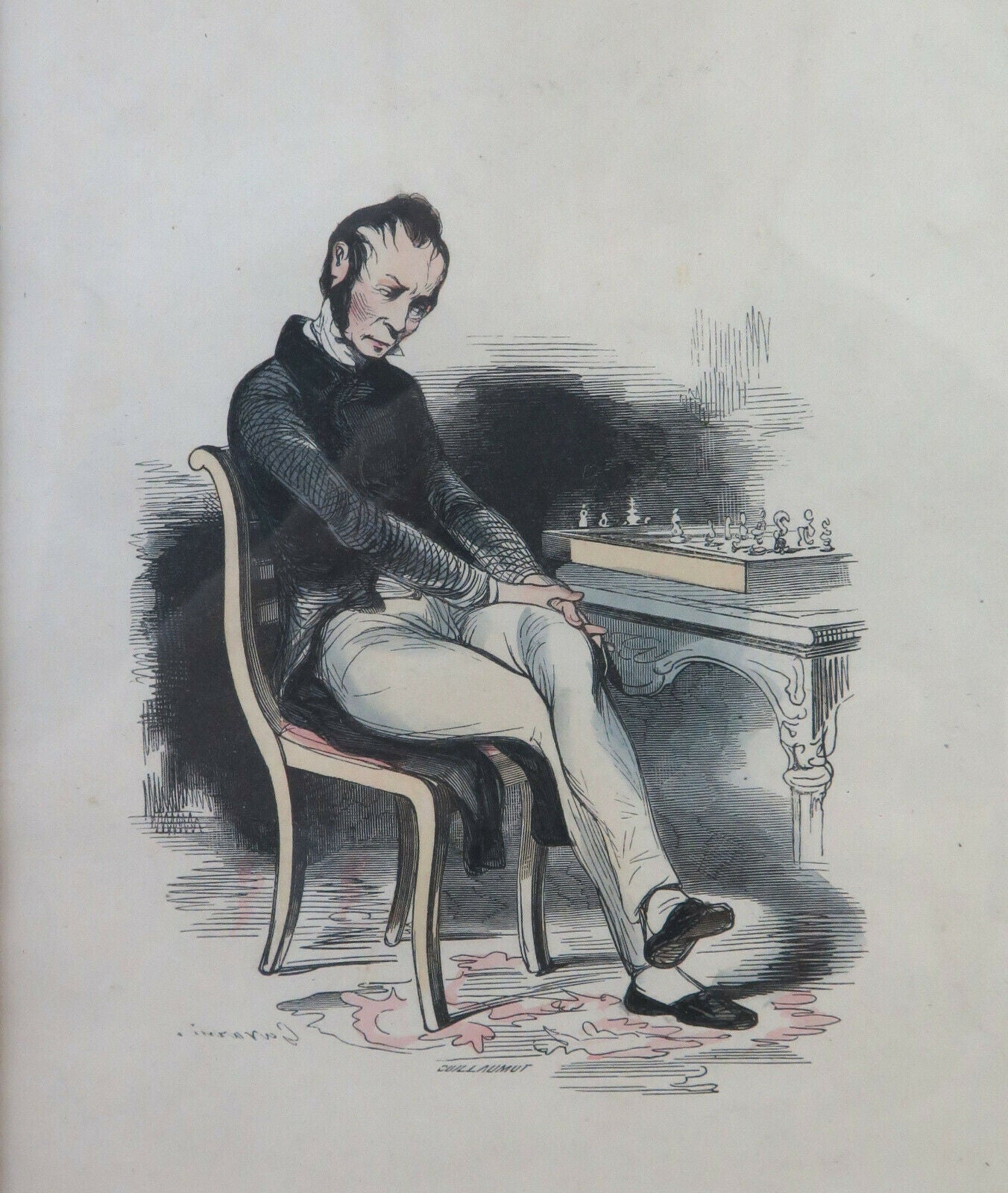 Antica litografia opera del disegnatore francese Paul Gavarni, pseudonimo di Guillaume Sulpice Chevalier (Parigi, 1804 – 1866) che raffigura un giocatore di scacchi.