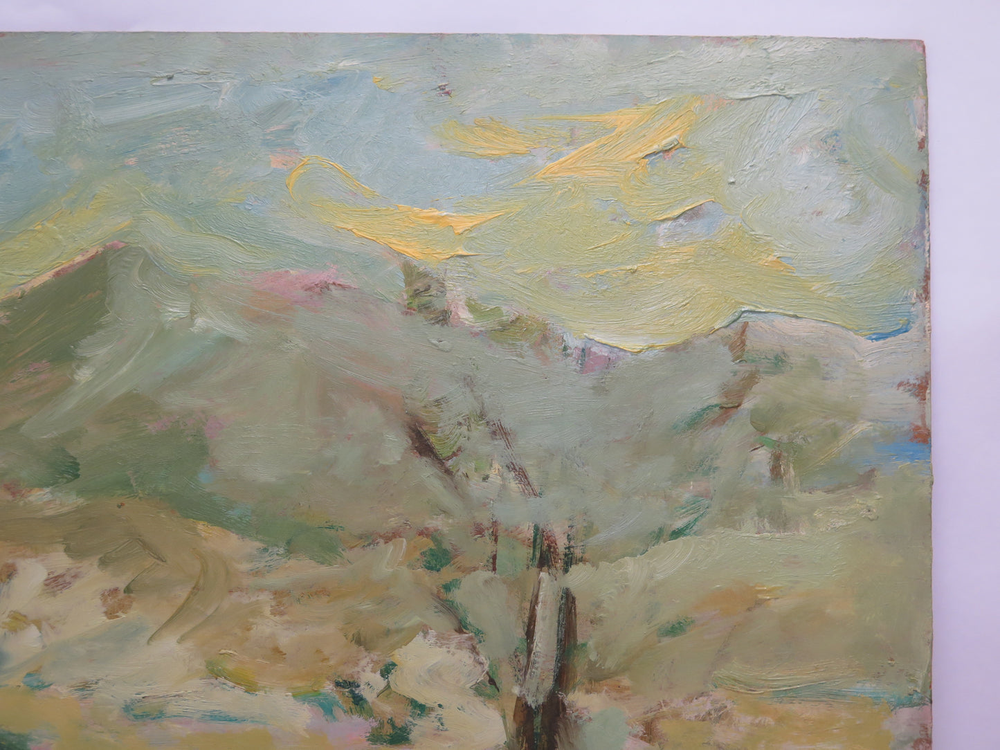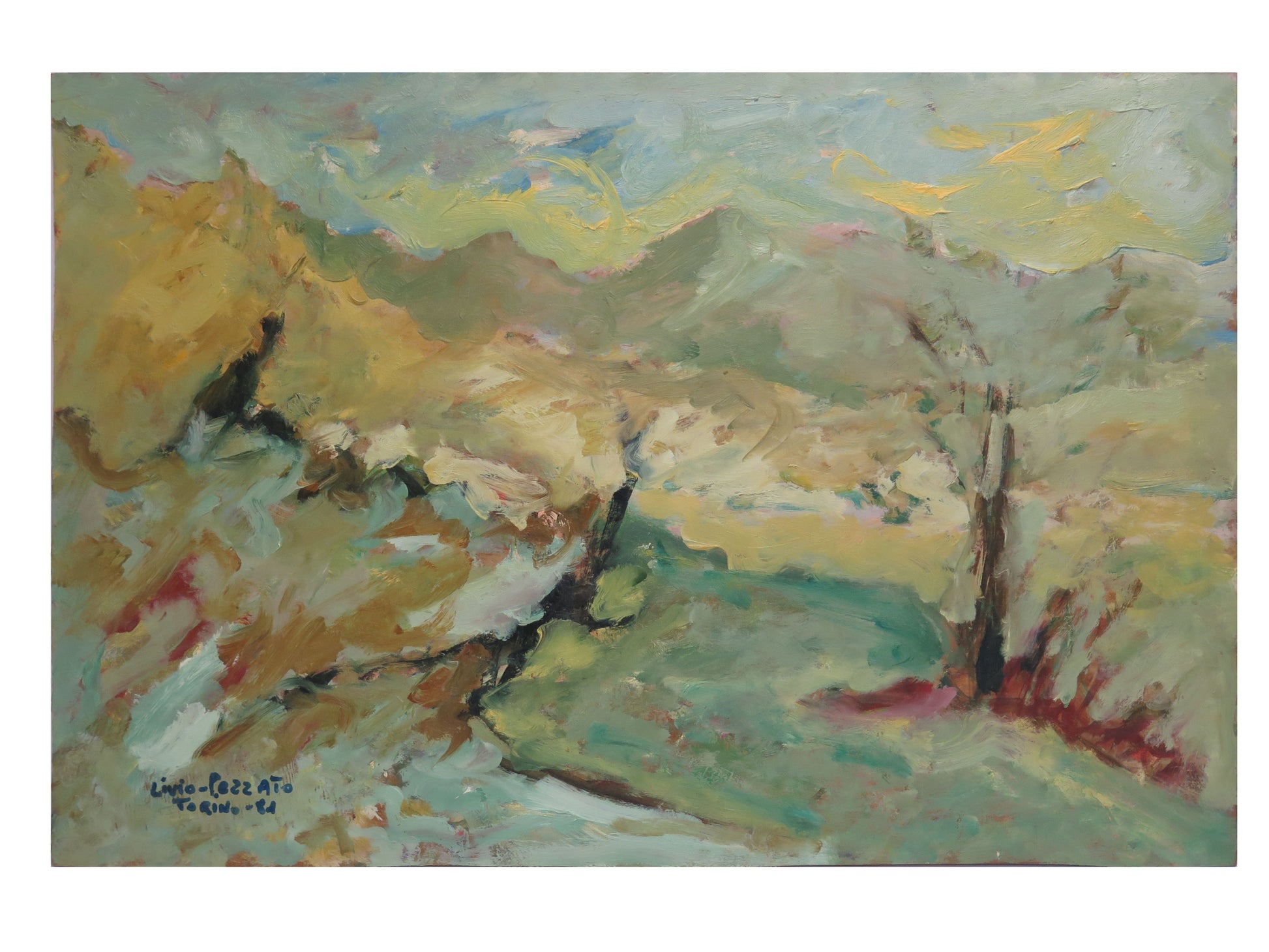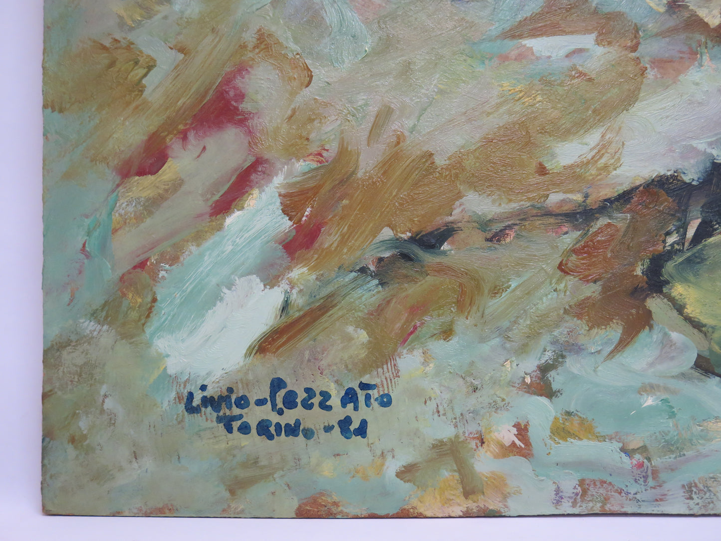 LIVIO PEZZATO PAESAGGIO QUADRO DIPINTO AD OLIO SU TAVOLA FIRMATO DATATO 1981 PS