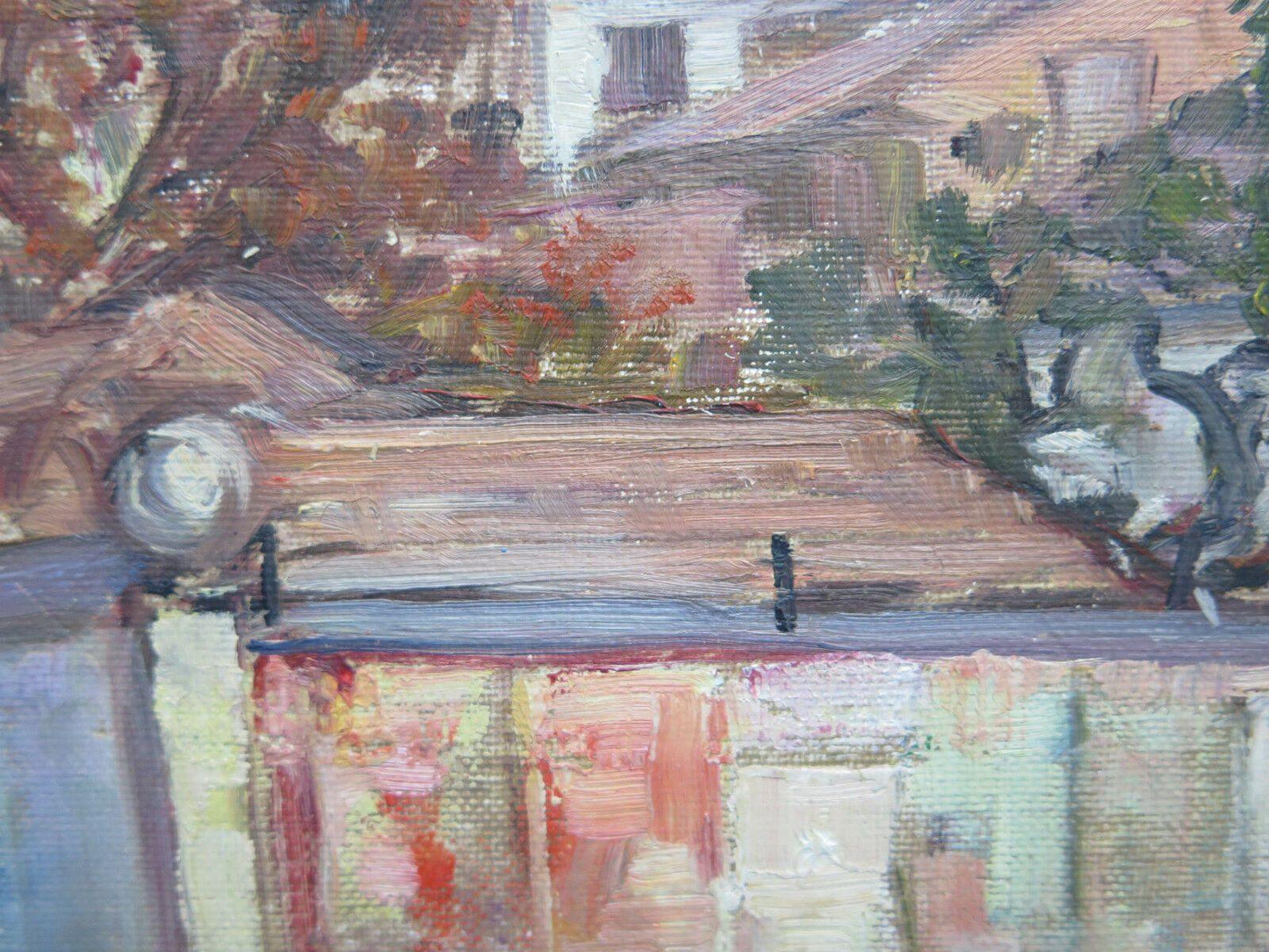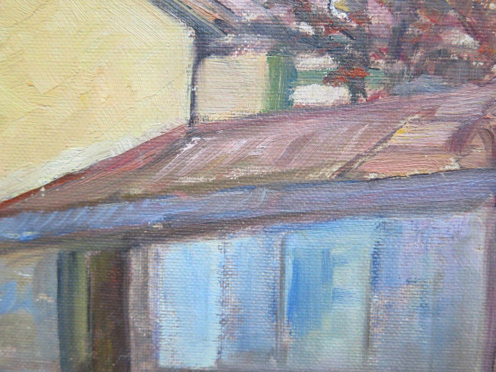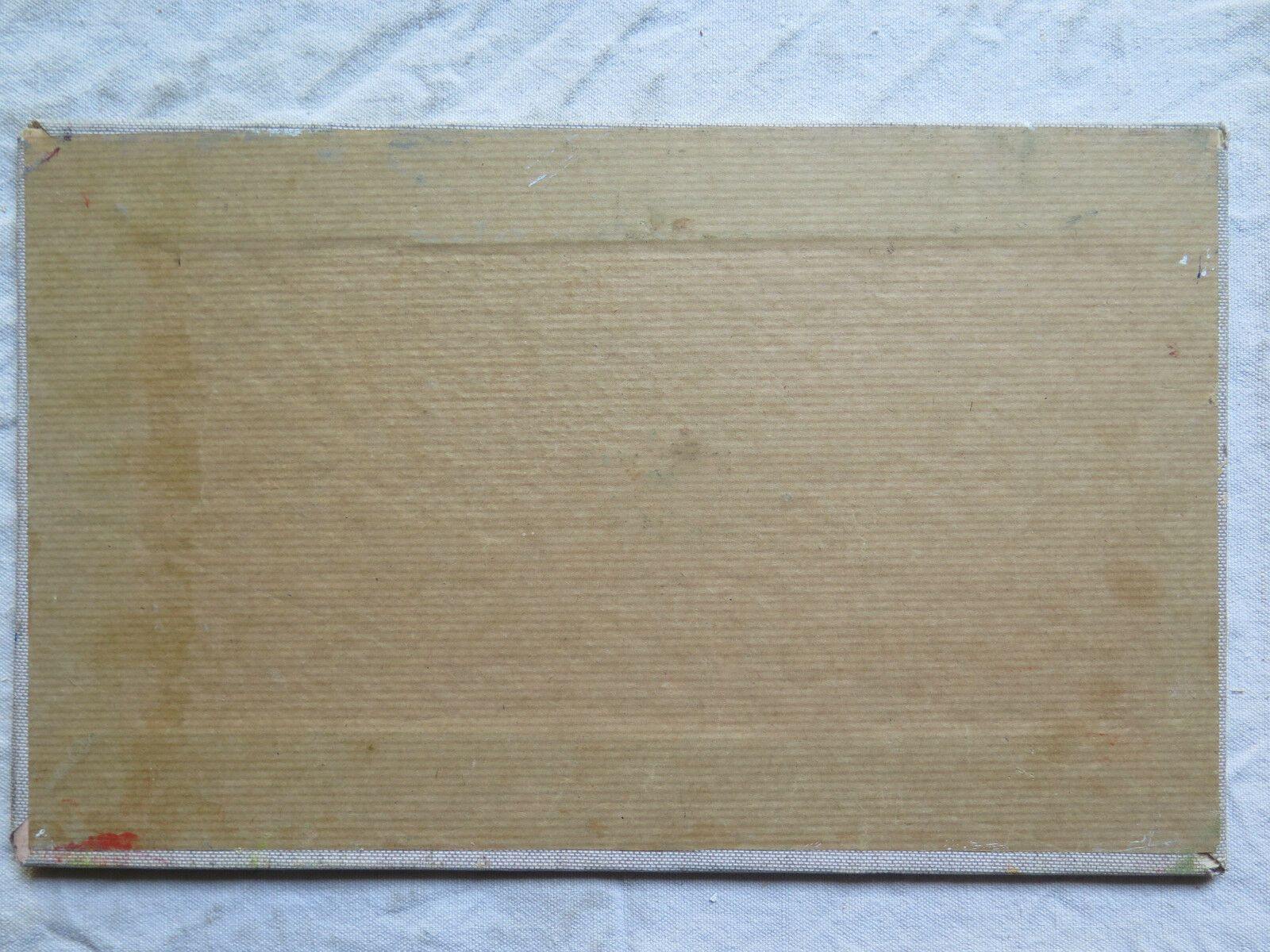 Dipinto vintage ad olio su tavola, veduta di Piumazzo