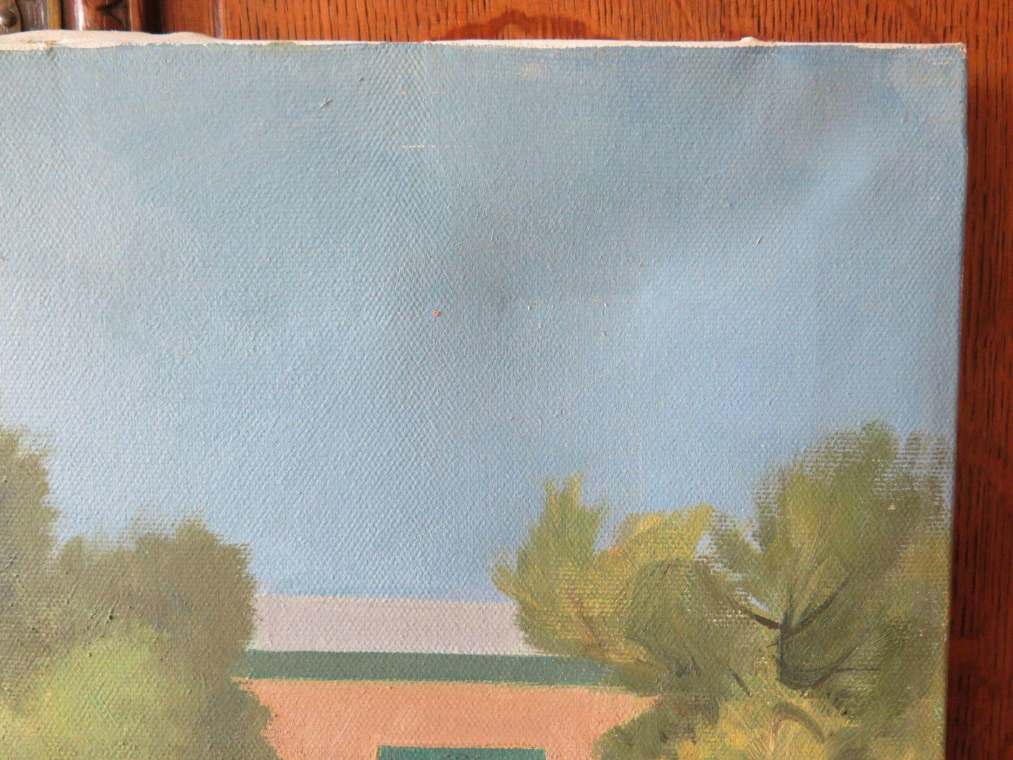 PAESAGGIO CITTADINO ESTIVO QUADRO MODERNO ANNI SESSANTA RIVIERA ROMAGNOLA p17