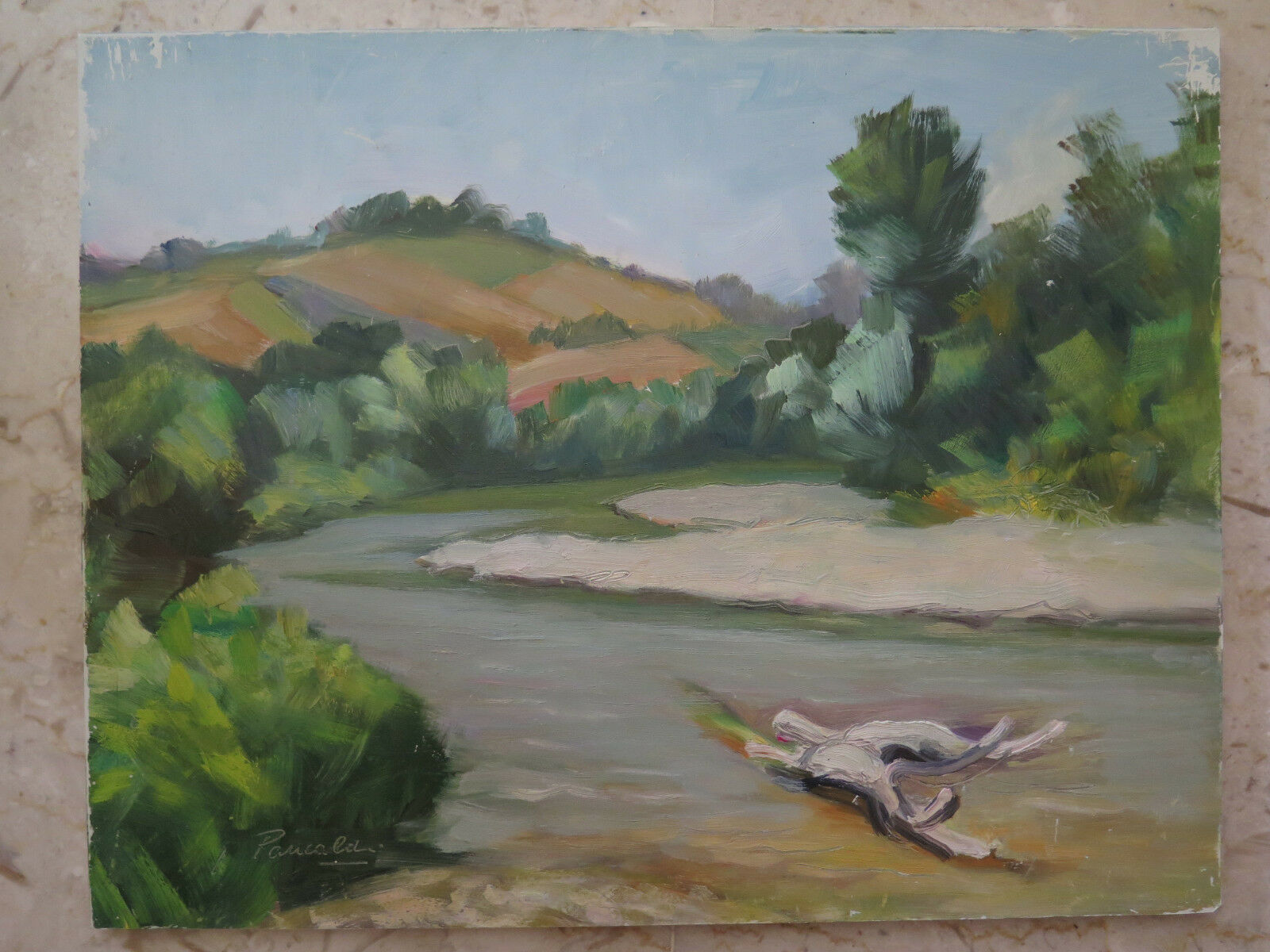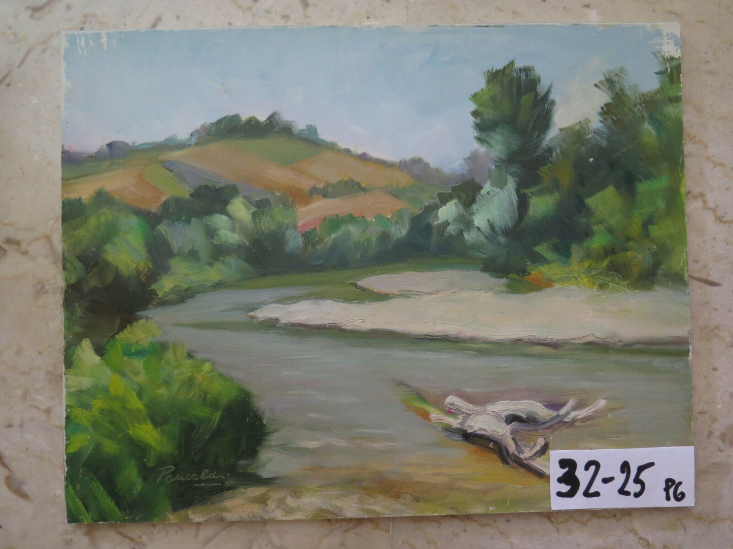Paesaggio dell'Emilia Romagna QUADRO VINTAGE DIPINTO OLIO SU TAVOLA FIRMATO p6