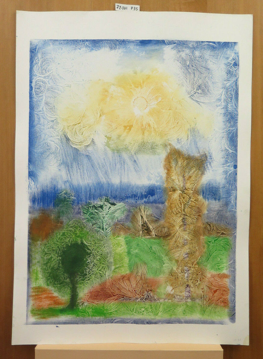 PAESAGGIO DI CAMPAGNA QUADRO DIPINTO AD ACQUERELLO TECNICA DEL GELO VINTAGE P35