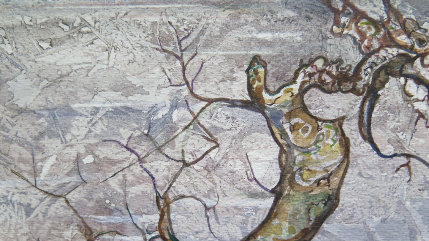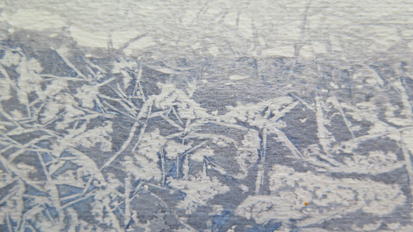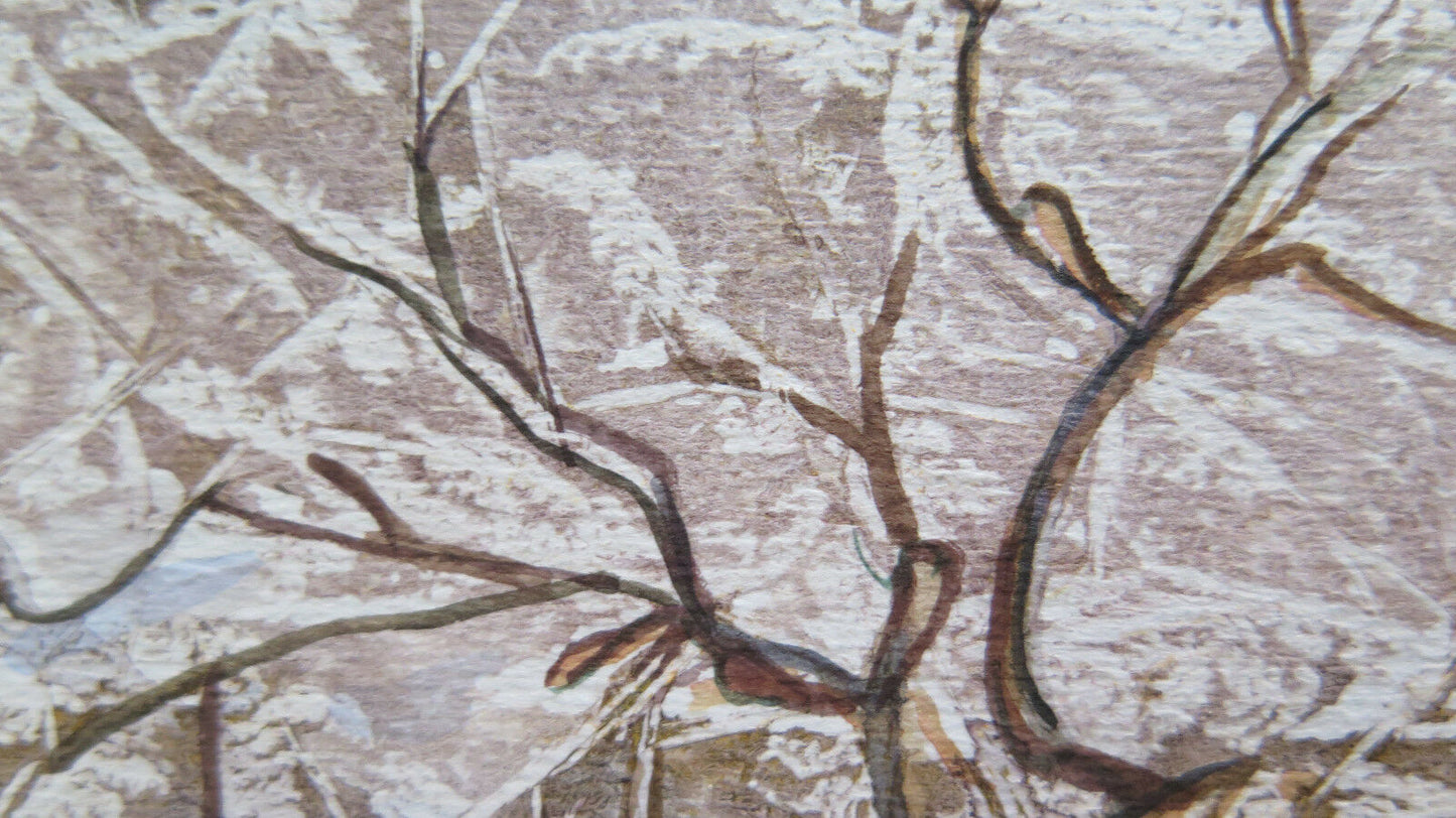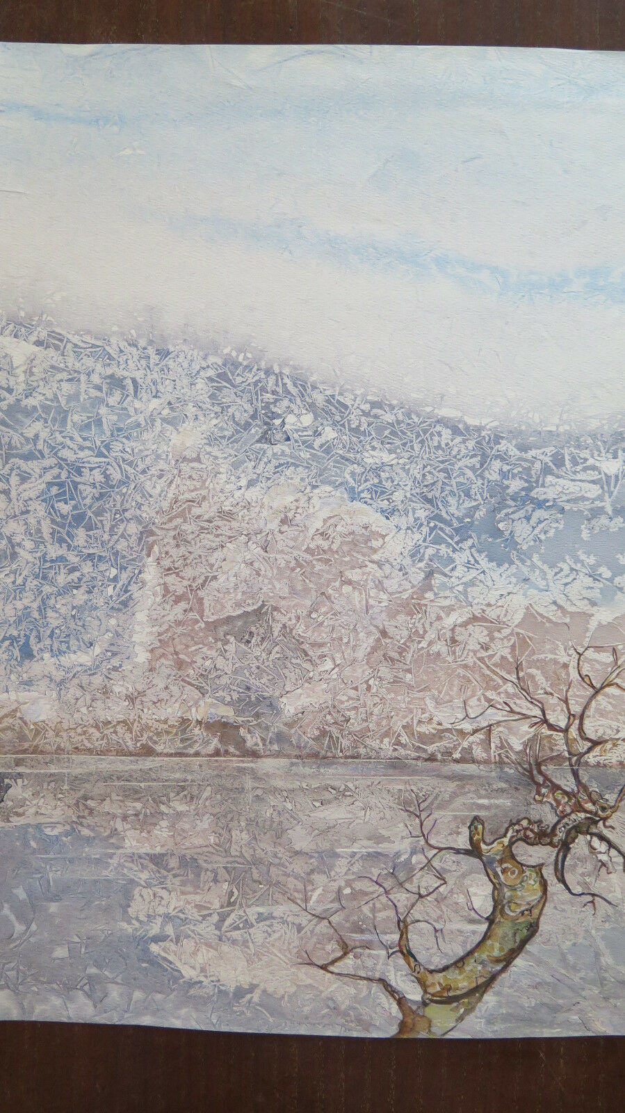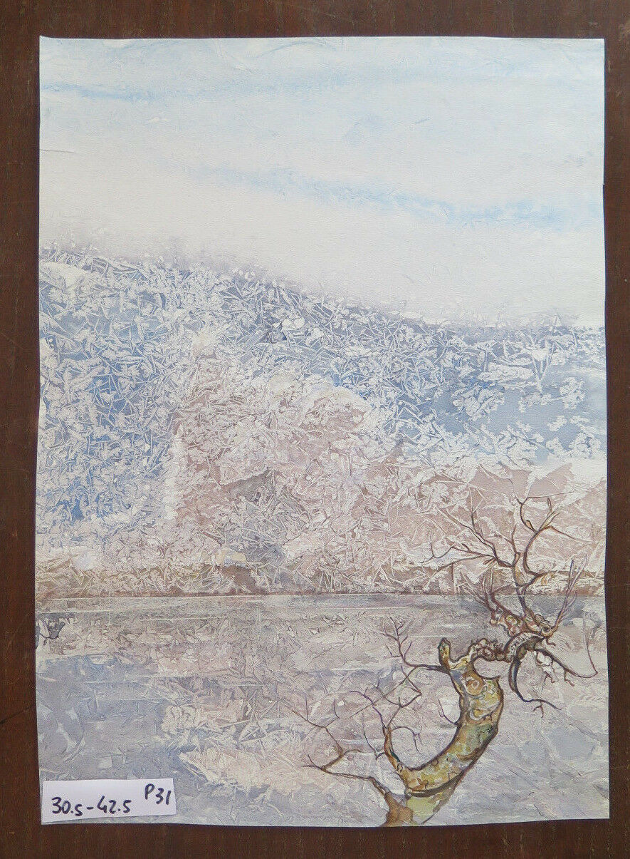 PAESAGGIO GHIACCIATO QUADRO VINTAGE DIPINTO AD ACQUERELLO SU CARTA ORIGINALE P31