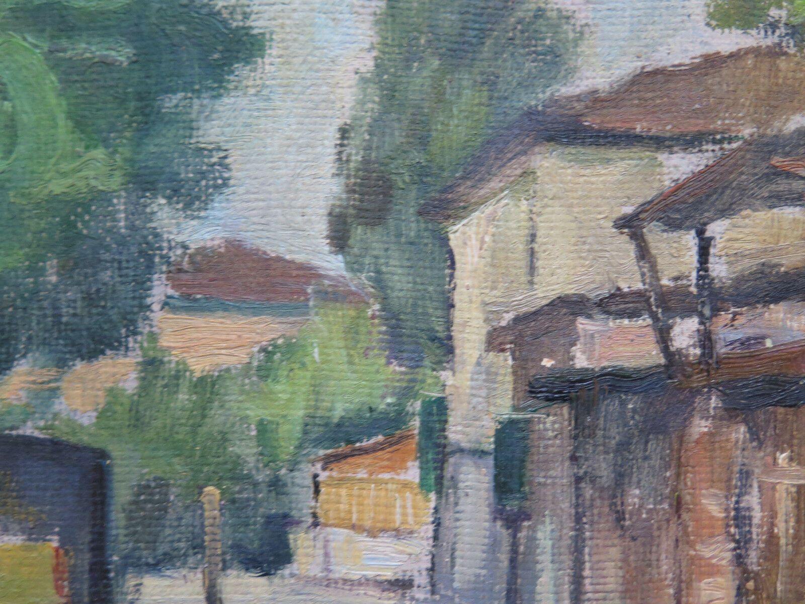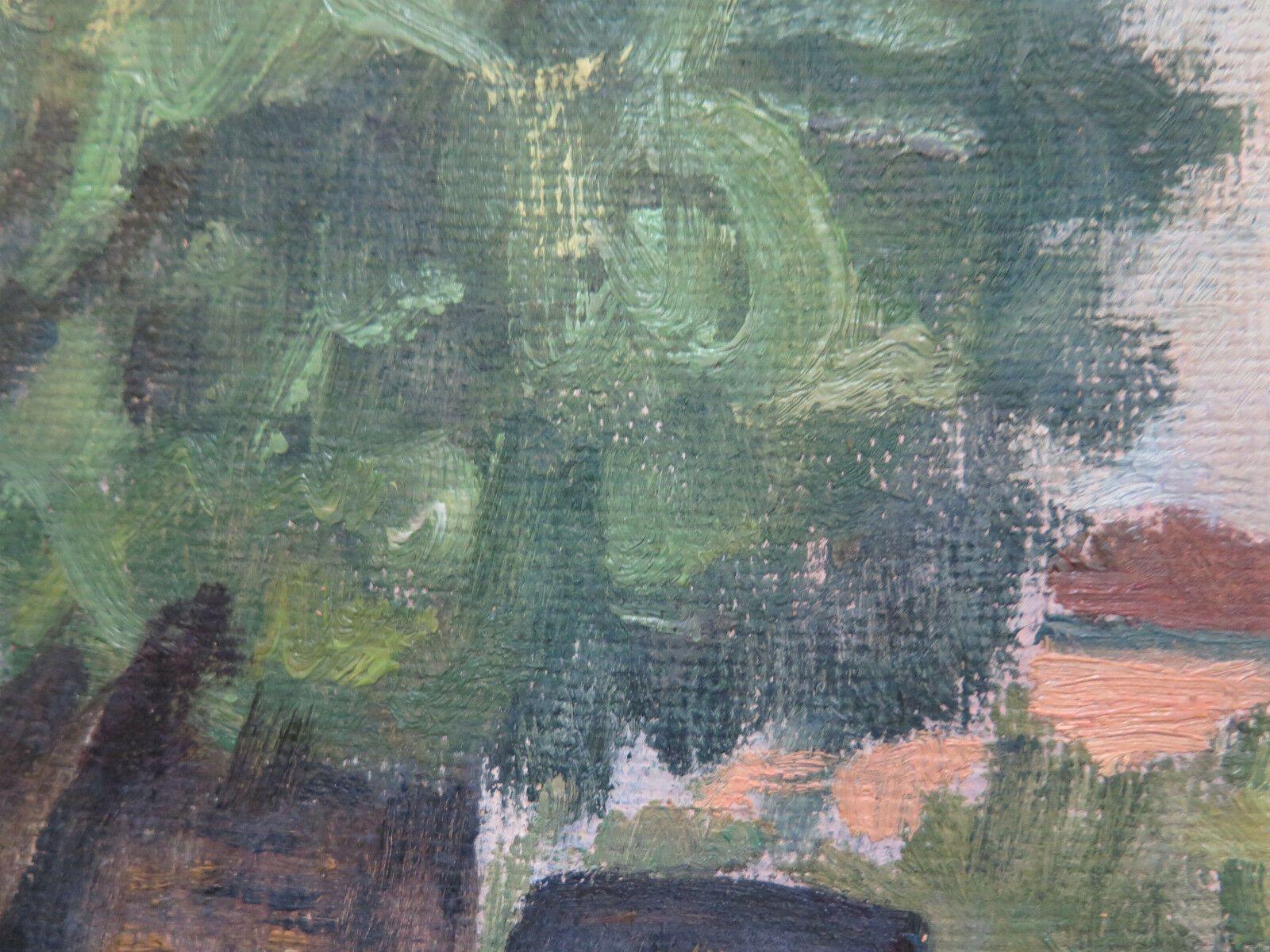 PAESAGGIO IN PRIMAVERA QUADRO ANTICO DIPINTO AD OLIO SU TAVOLA ORIGINALE p3
