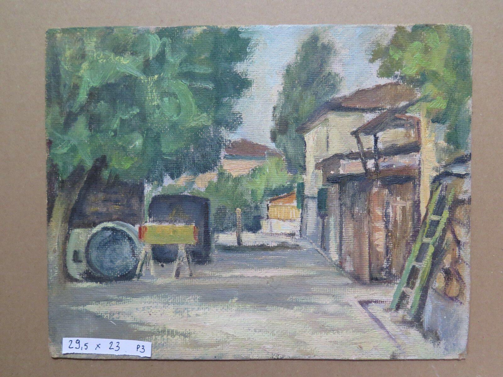 Quadro antico dipinto olio paesaggio di campagna in primavera