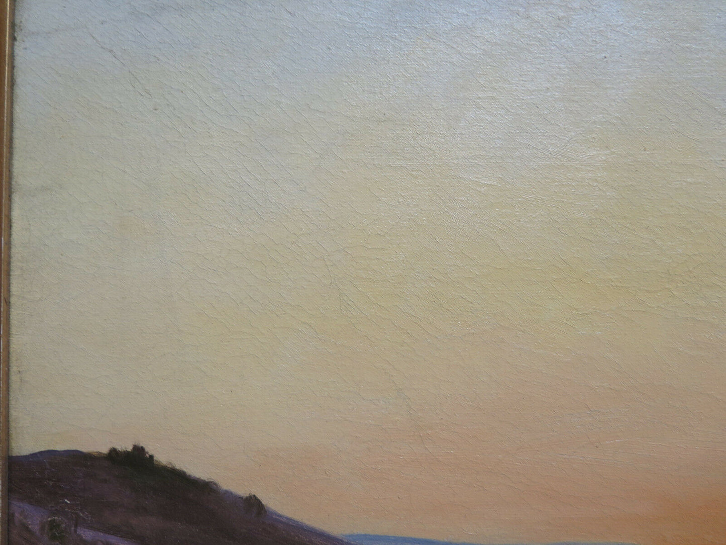 PAESAGGIO NORDICO AL TRAMONTO ANTICO DIPINTO OLIO TELA DANIMARCA PRIMO 900 R93