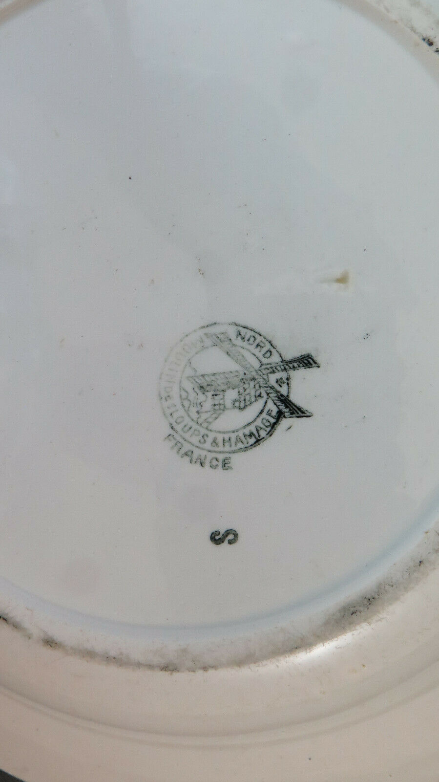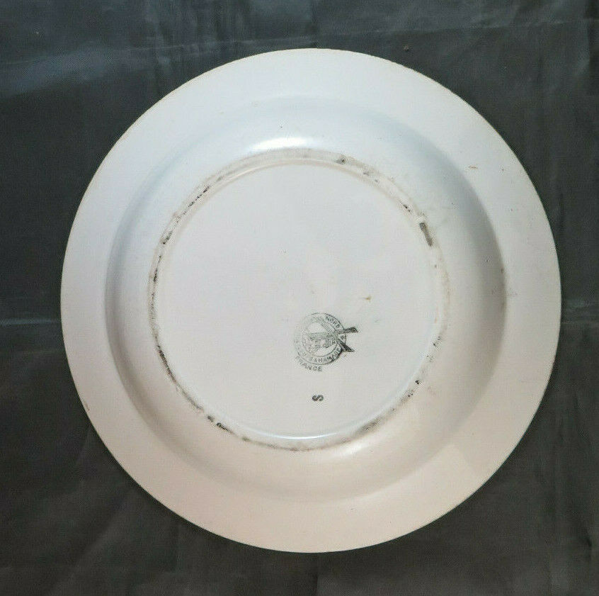 Antique hand painted Moulin Des Loups & Hamage ceramic plate, marks on the bottom.