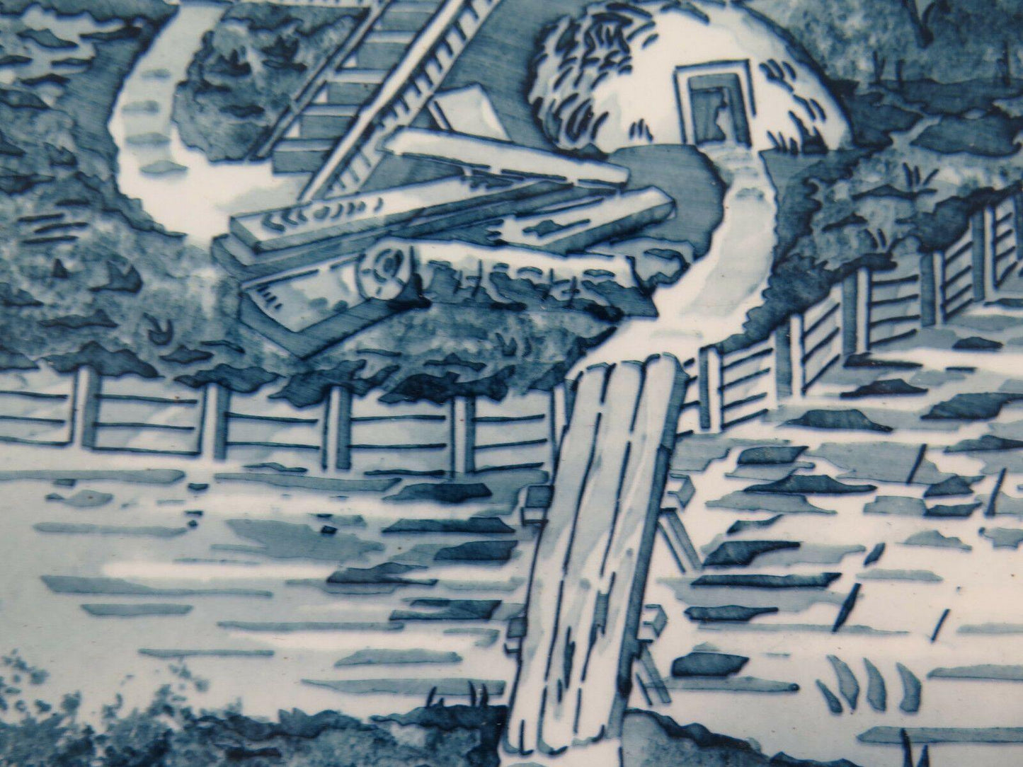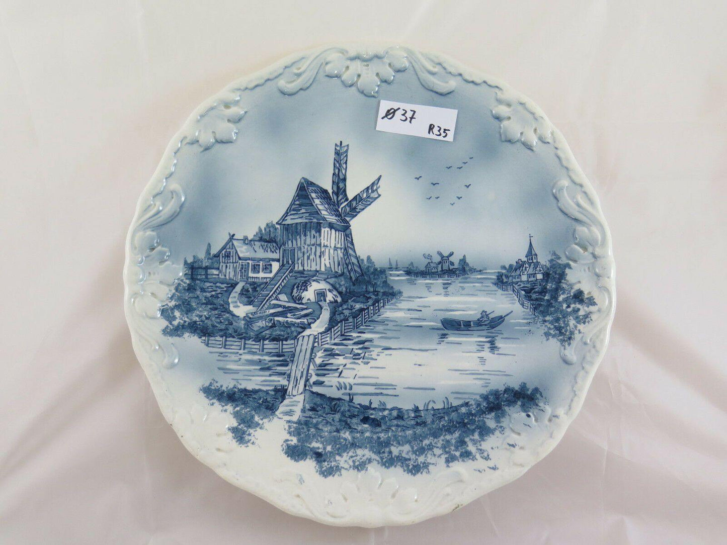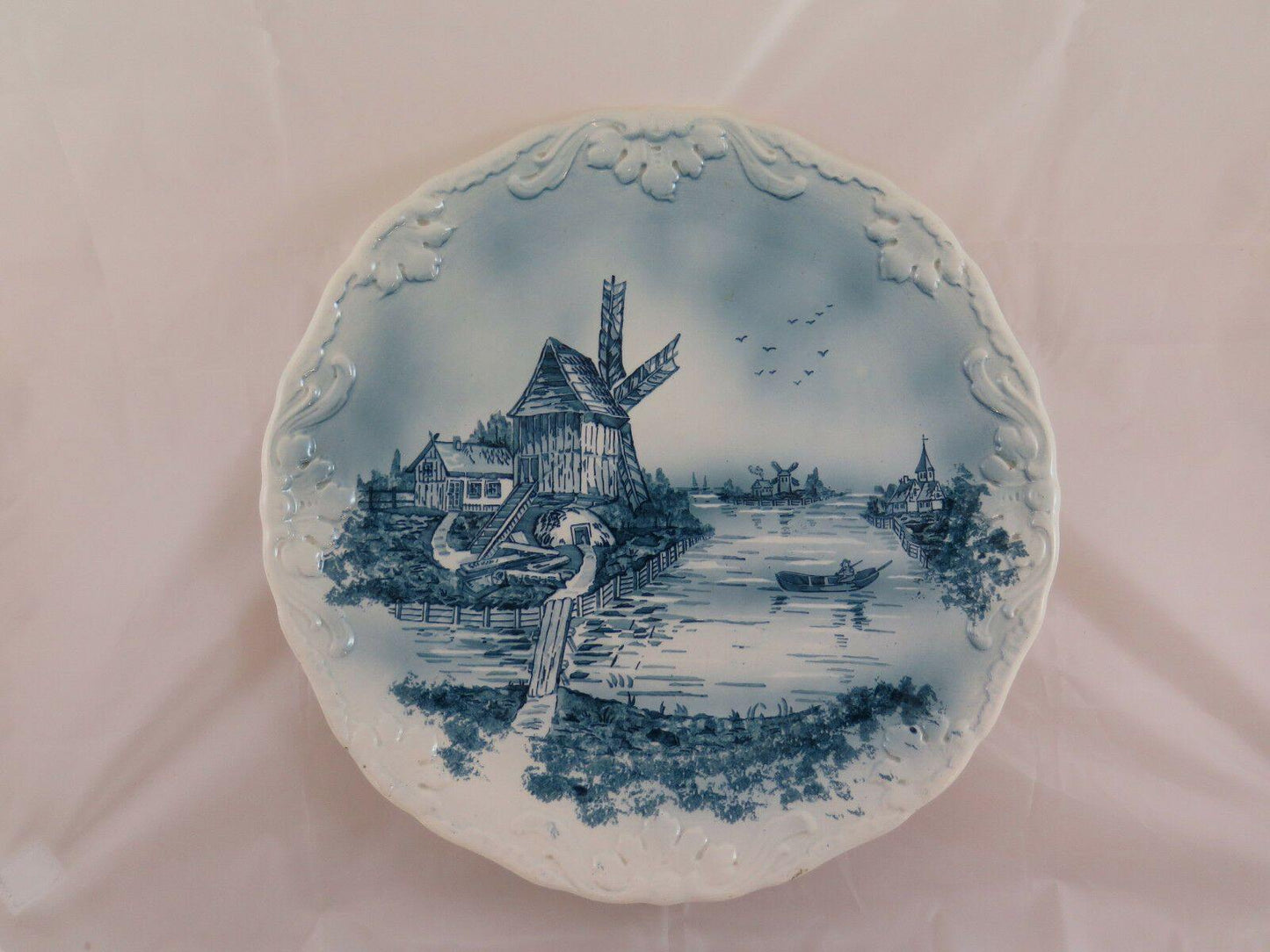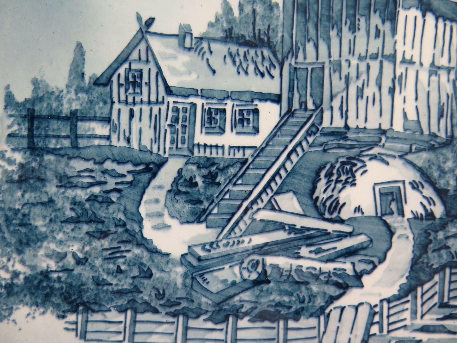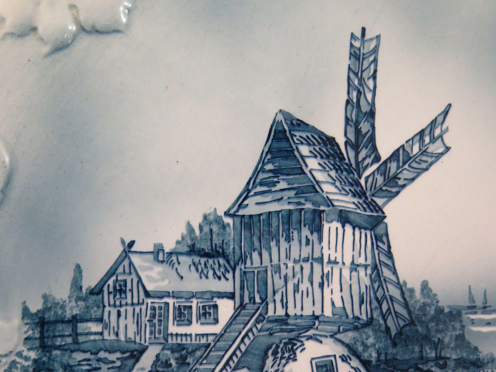 Elegante piatto in ceramica da parete decorato con paesaggi e mulini a vento.