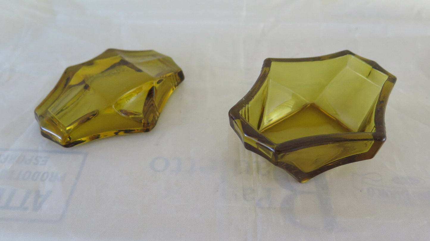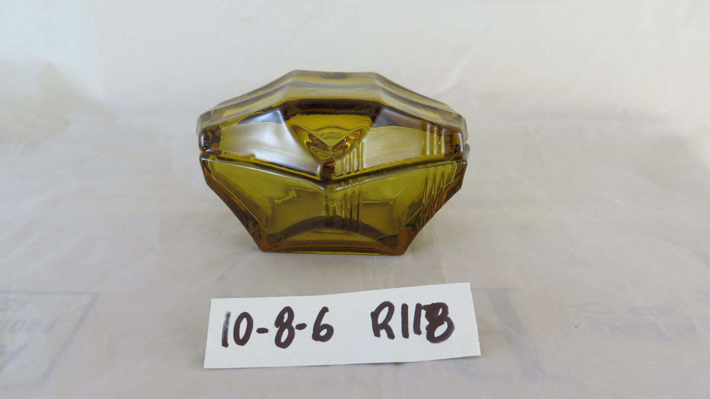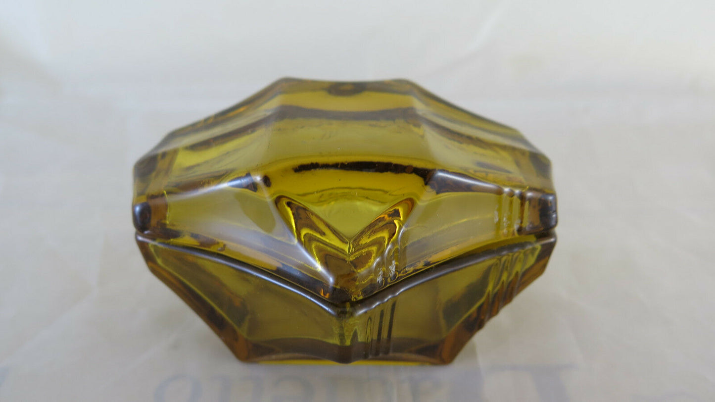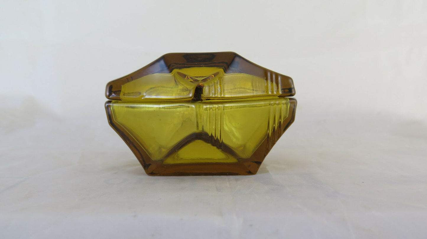 Piccola scatola di vetro giallo a forma di rombo, ideale per piccoli oggetti o gioielli.