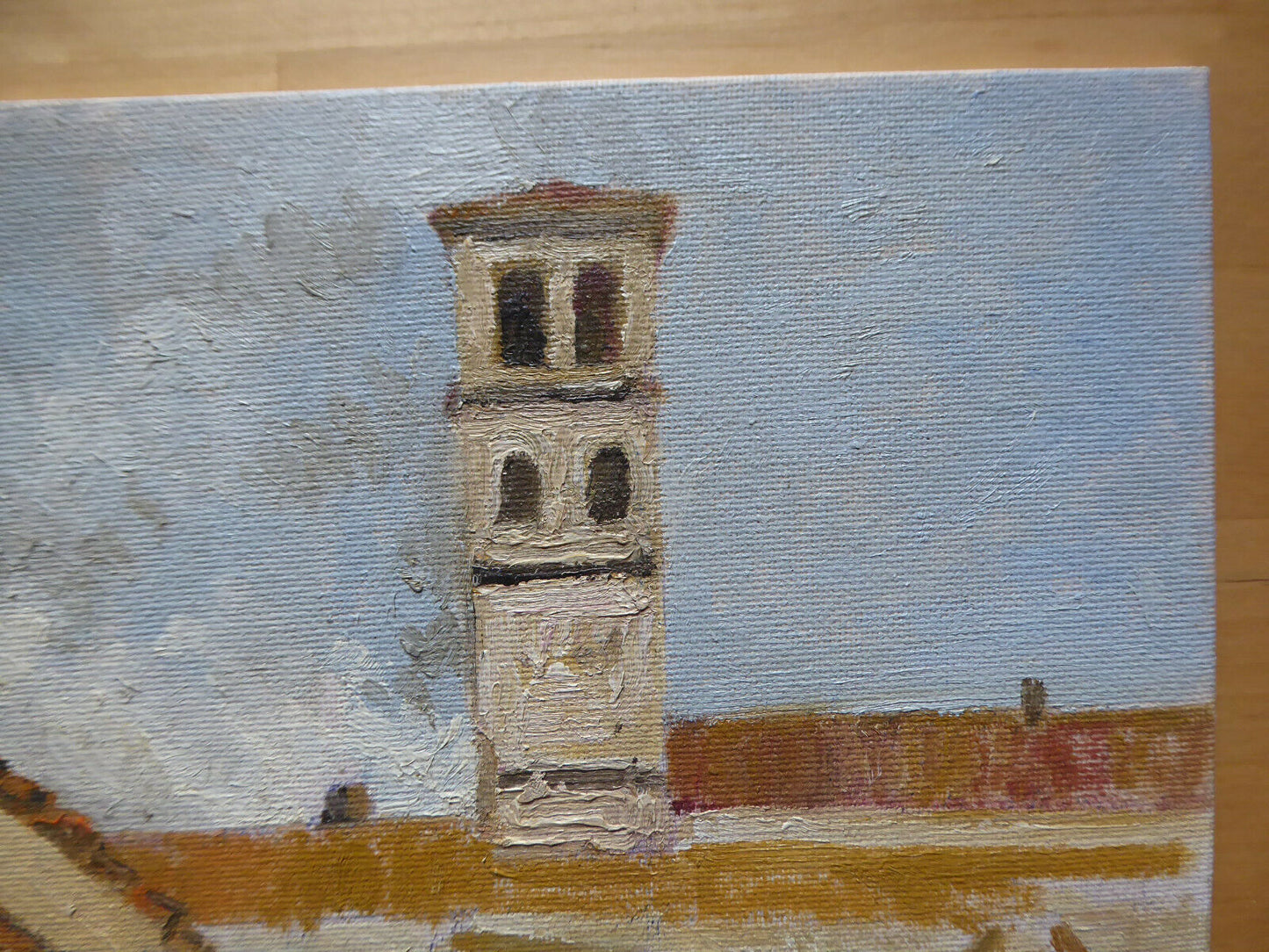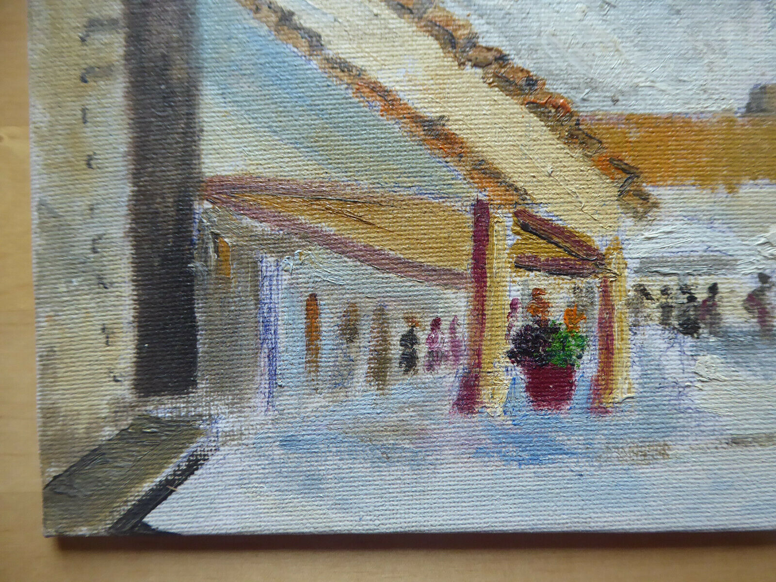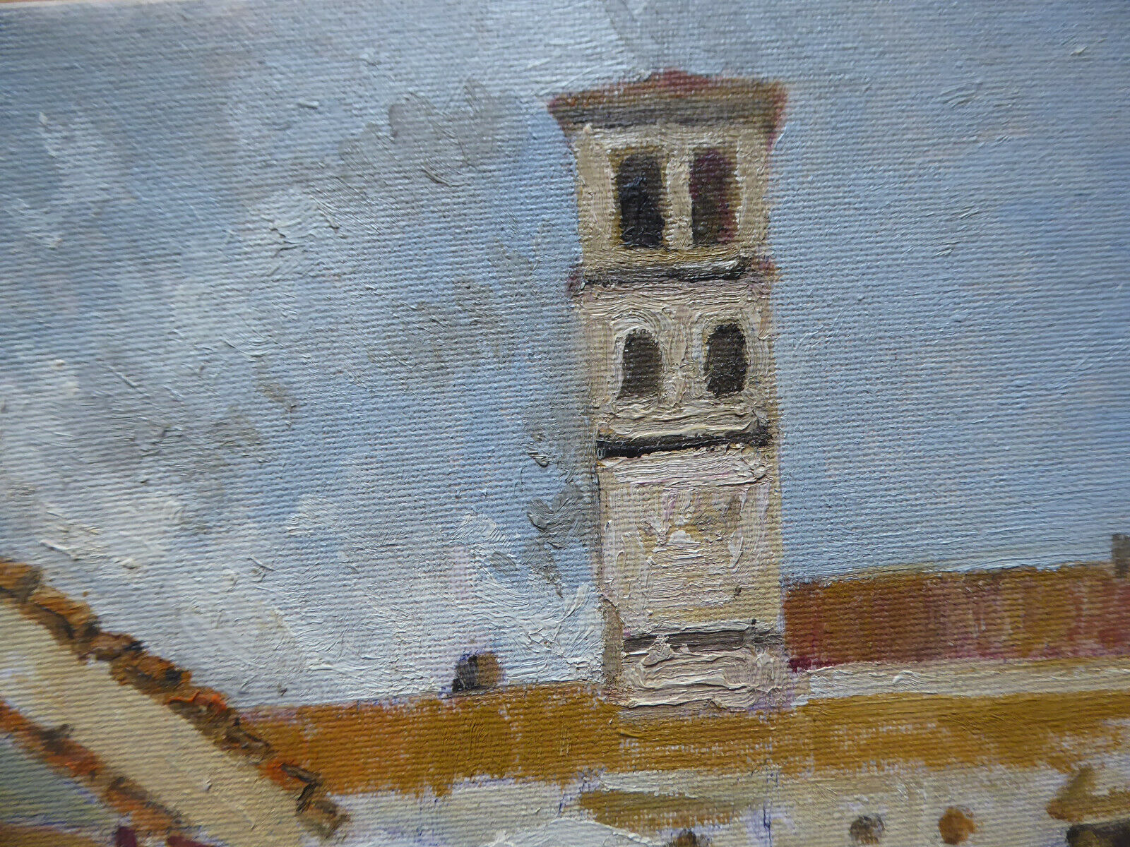 PICCOLO DIPINTO BOZZETTO OLIO SU TAVOLA VAEDUTA DI PAESE FIRMATO SPAGNA '900 MD1