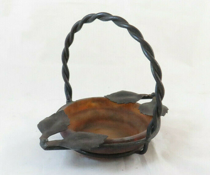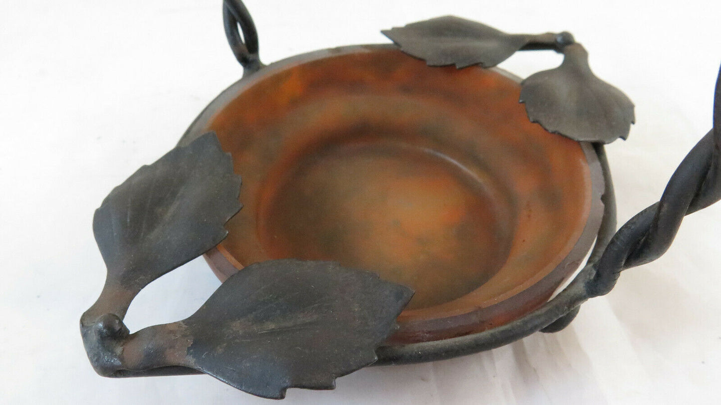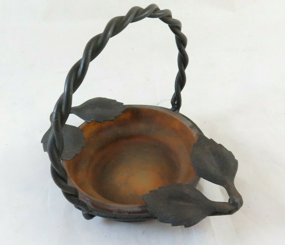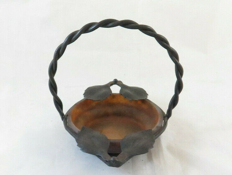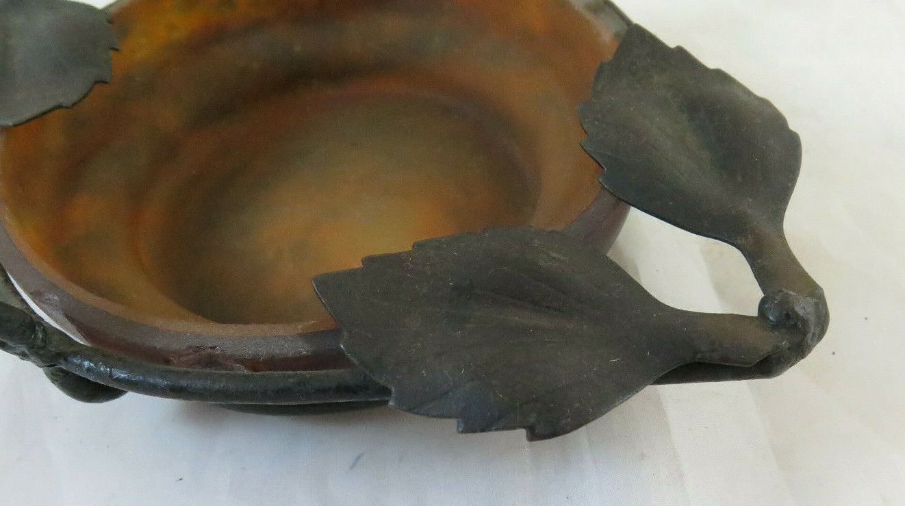 PORTACENERE ANTICO ART NOUVEAU IN VETRO OPALINO E FERRO BATTUTO LIBERTY BM35