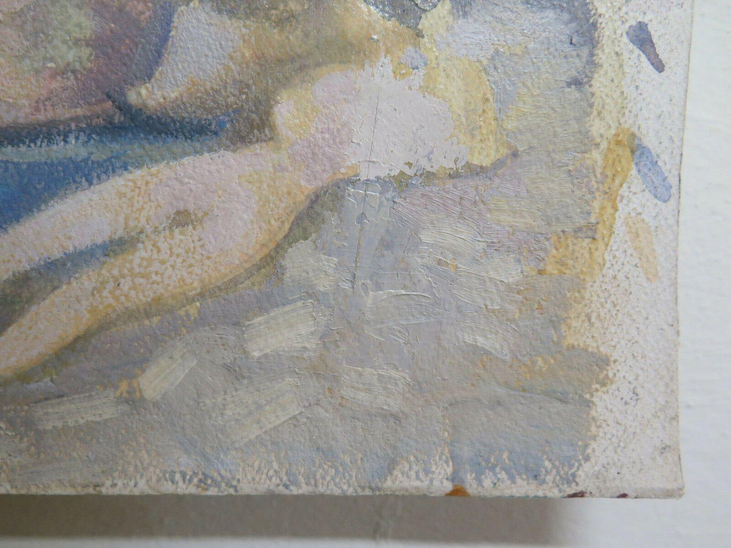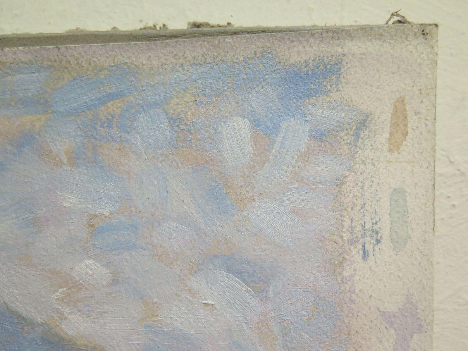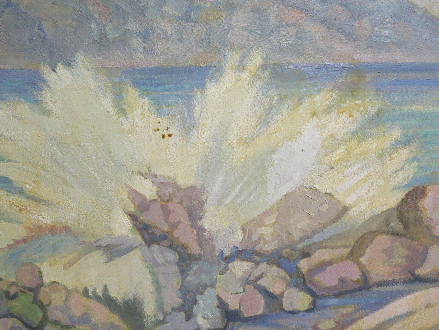 Particolare dipinto ad olio su cartoncino opera del pittore Gaetano Pancaldi (1922-2014) di Piumazzo di Castelfranco Emilia raffigurante un paesaggio di mare.
