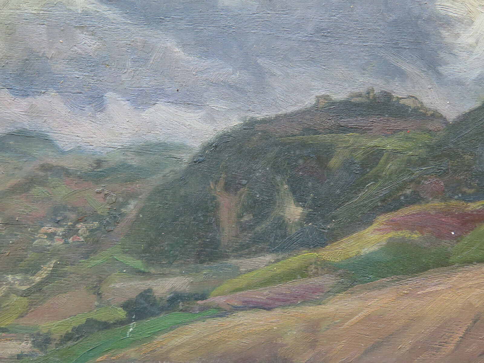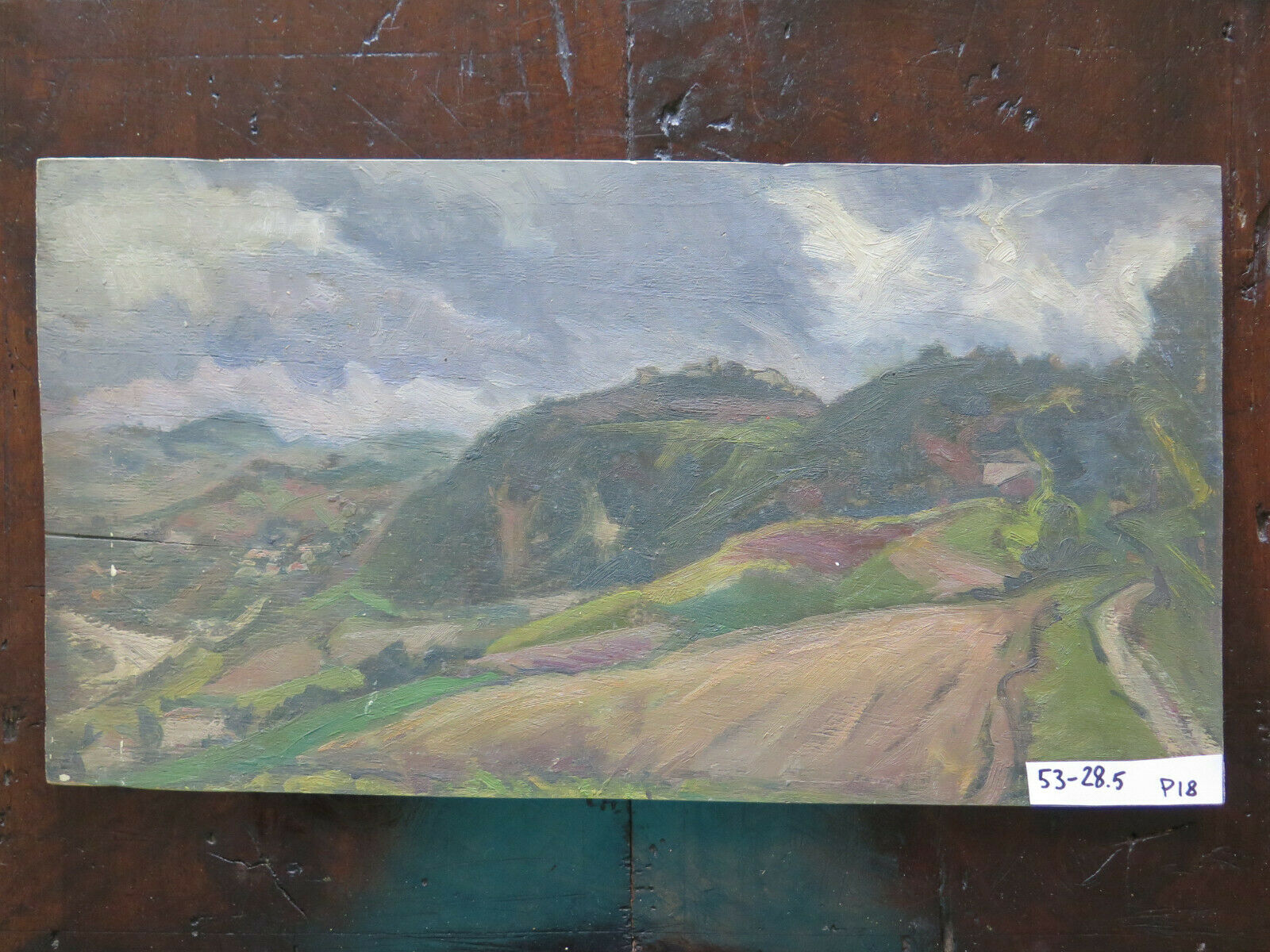 QUADRO AD OLIO SU TAVOLA PAESAGGIO CAMPI GAETANO PANCALDI PITTORE MODENA P18