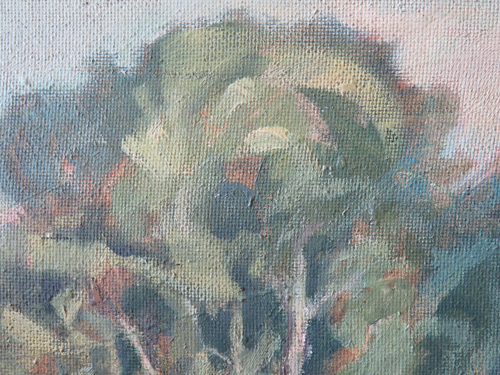 QUADRO AD OLIO SU TAVOLA PAESAGGIO FIRMATO GAETANO PANCALDI PITTORE MODENA P20