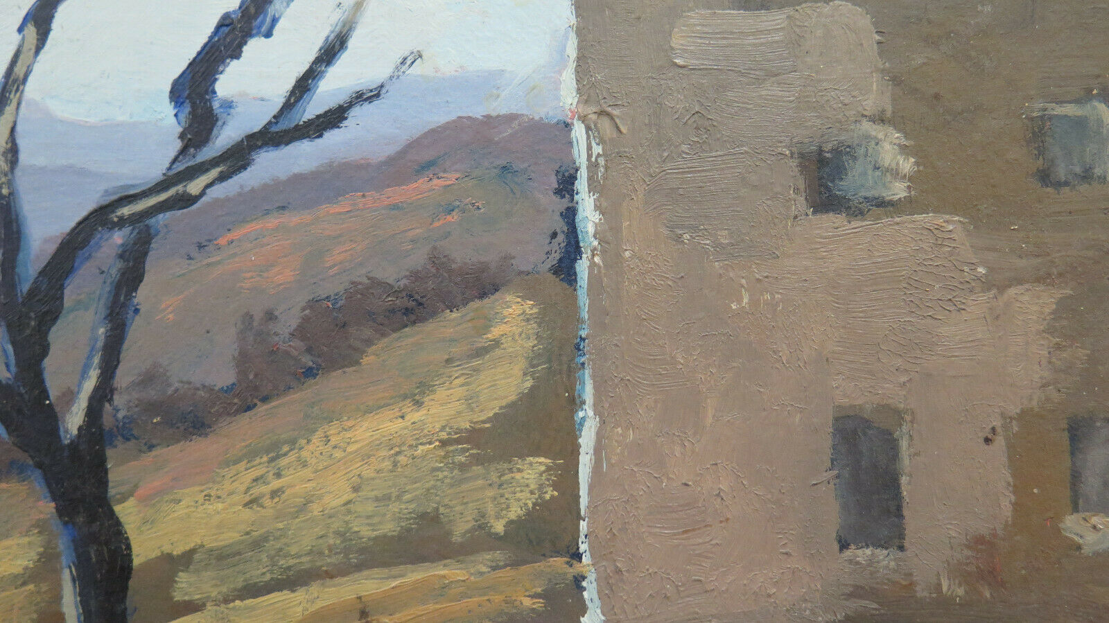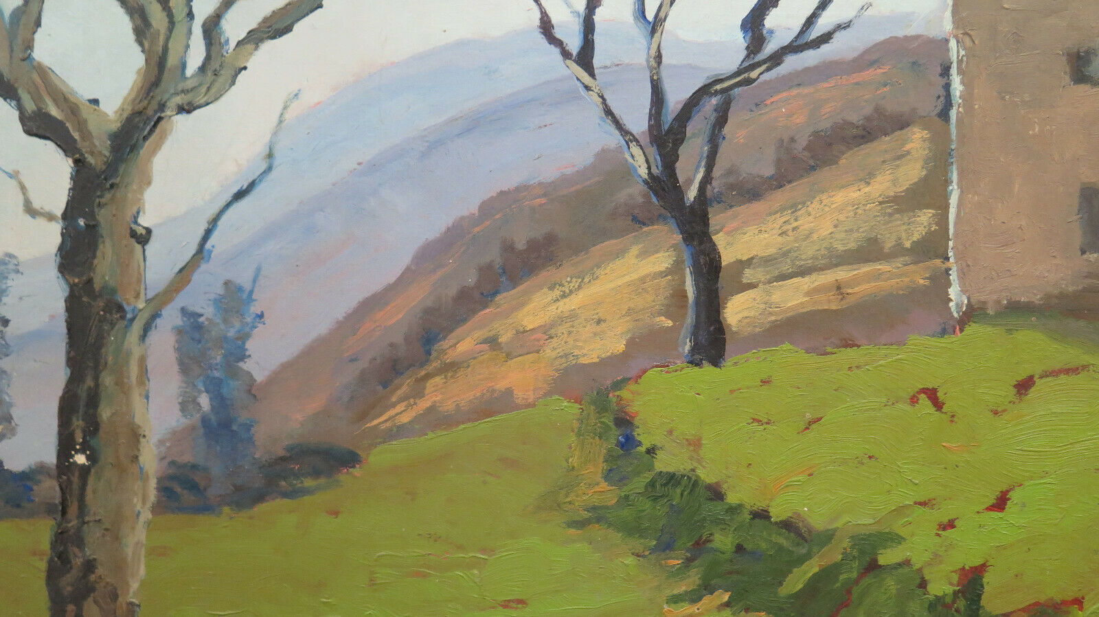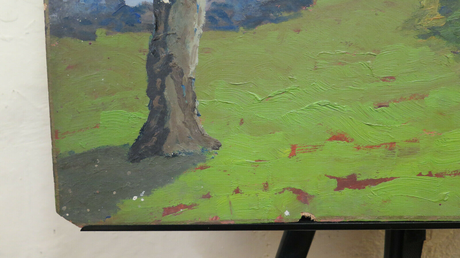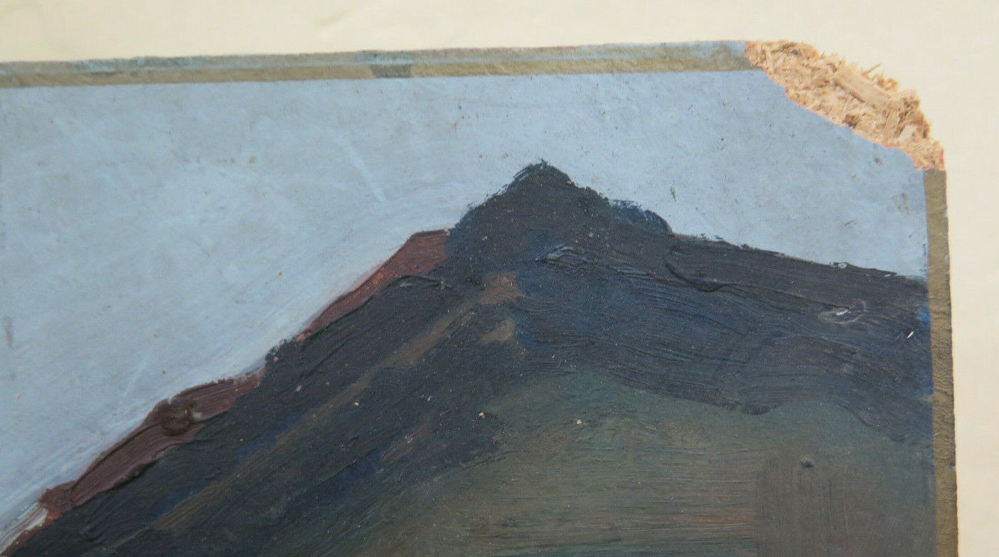 QUADRO AD OLIO SU TAVOLA VINTAGE PAESAGGIO DI CAMPAGNA ALPINO FIRMATO BM52