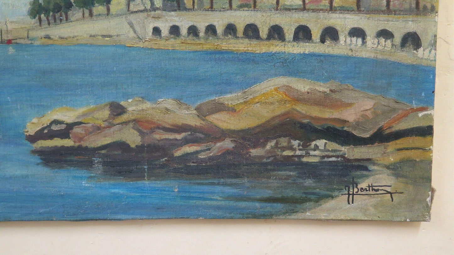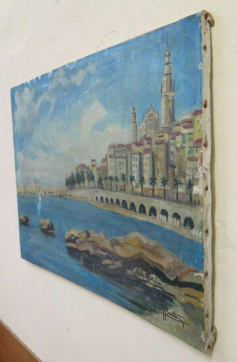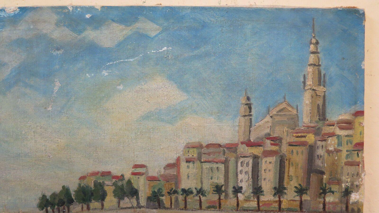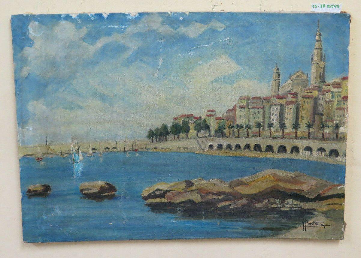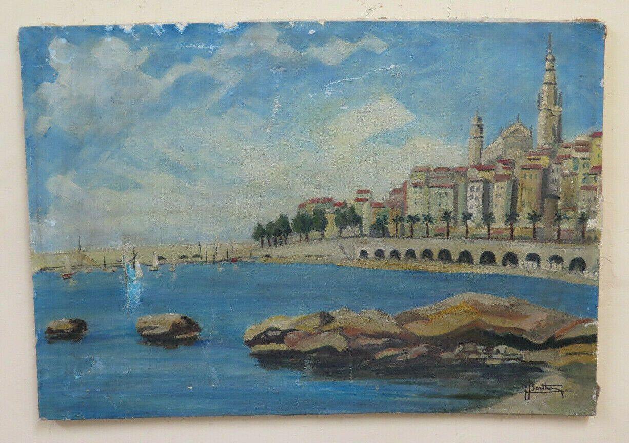 QUADRO AD OLIO VEDUTA DI MENTONE MENTON COSTA AZZURRA FIRMATO BERTHOMIEU BM45