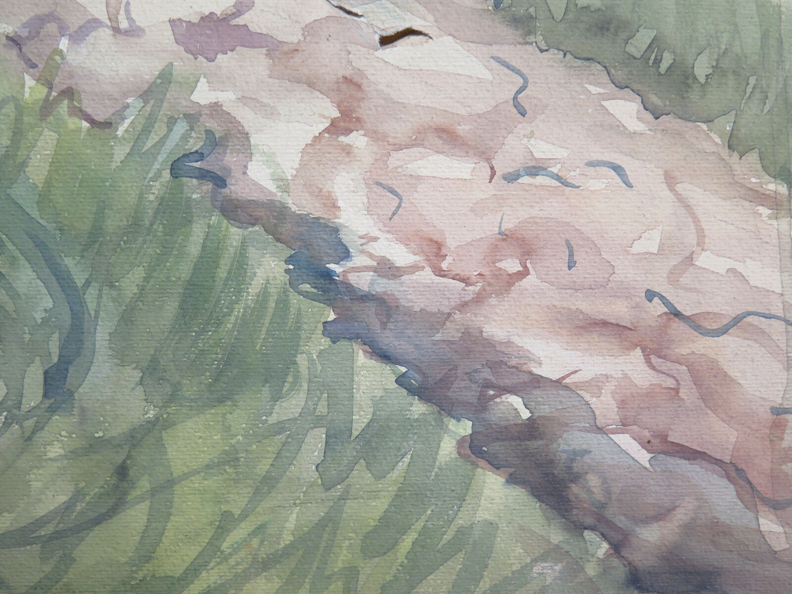 QUADRO ANTICO DIPINTO AD ACQUERELLO PAESAGGIO DI CAMPAGNA CON GARANZIA P27