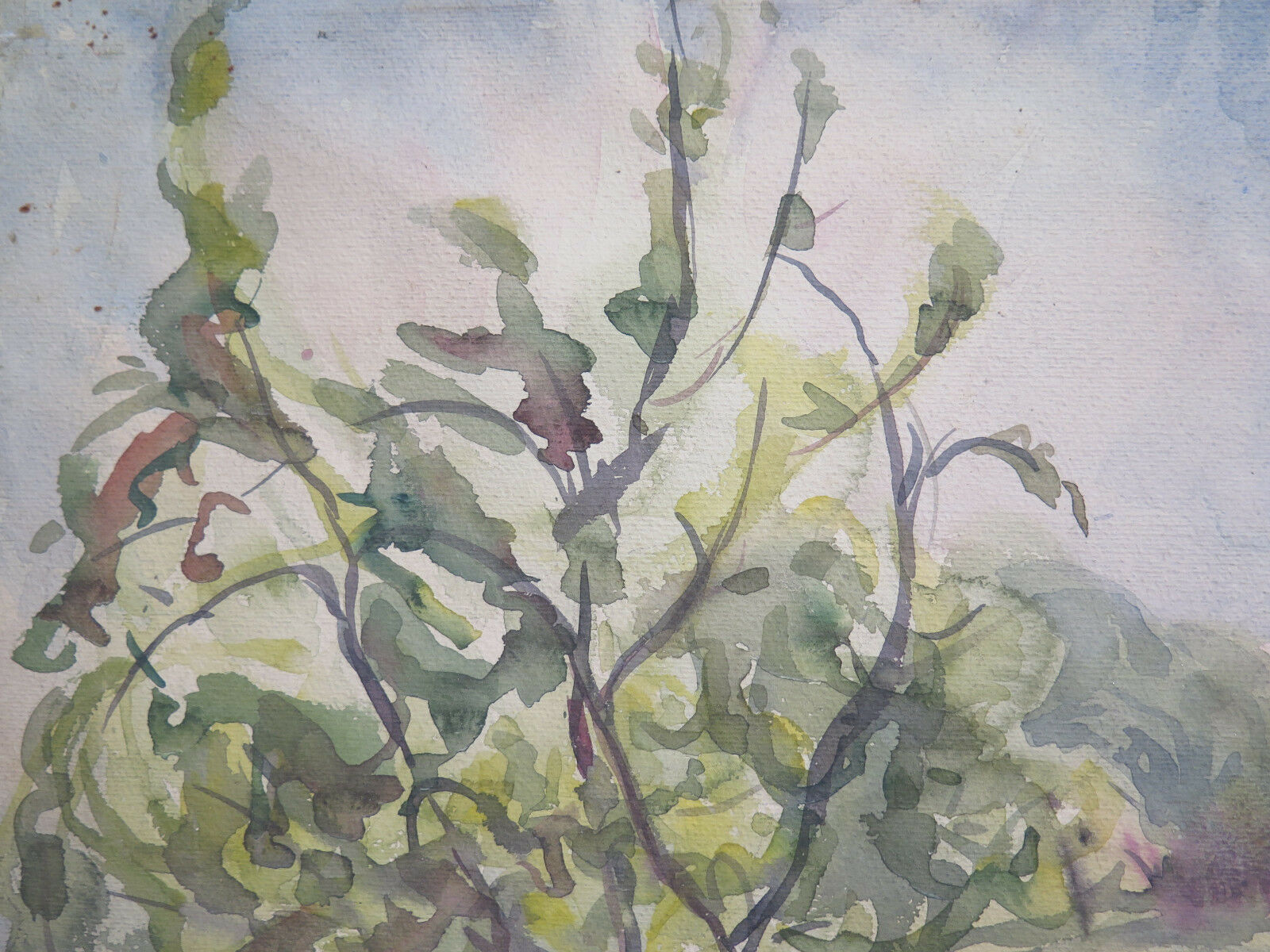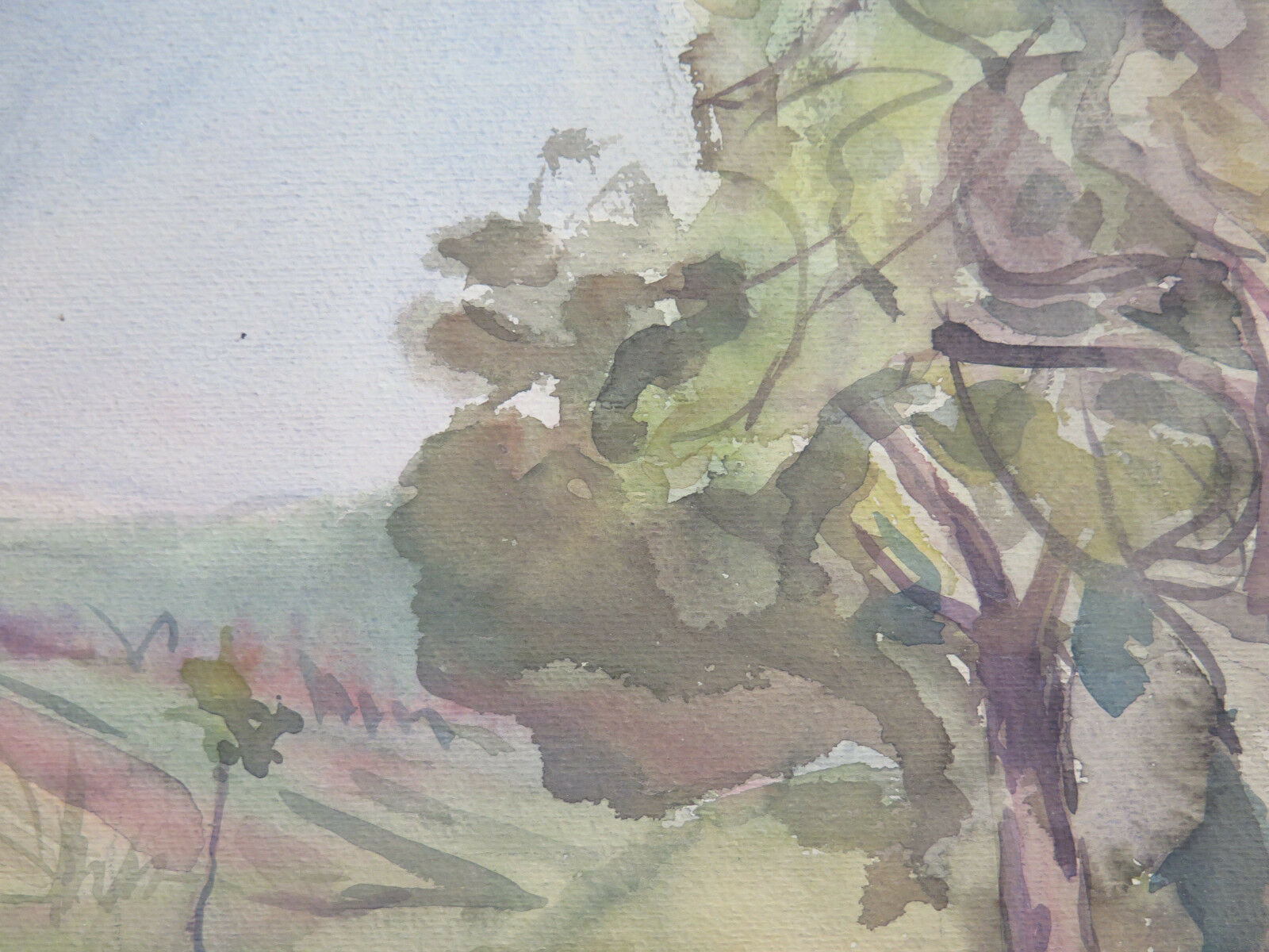 Soggetto: originale dipinto ad acquerello su carta opera del Maestro Gaetano Pancaldi (1922-2014) in cui viene raffigurata la campagna emiliana in primavera, luogo caro al pittore.