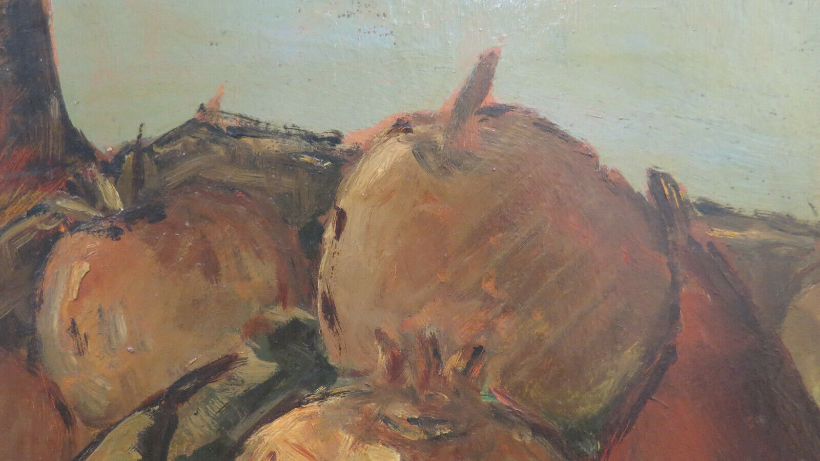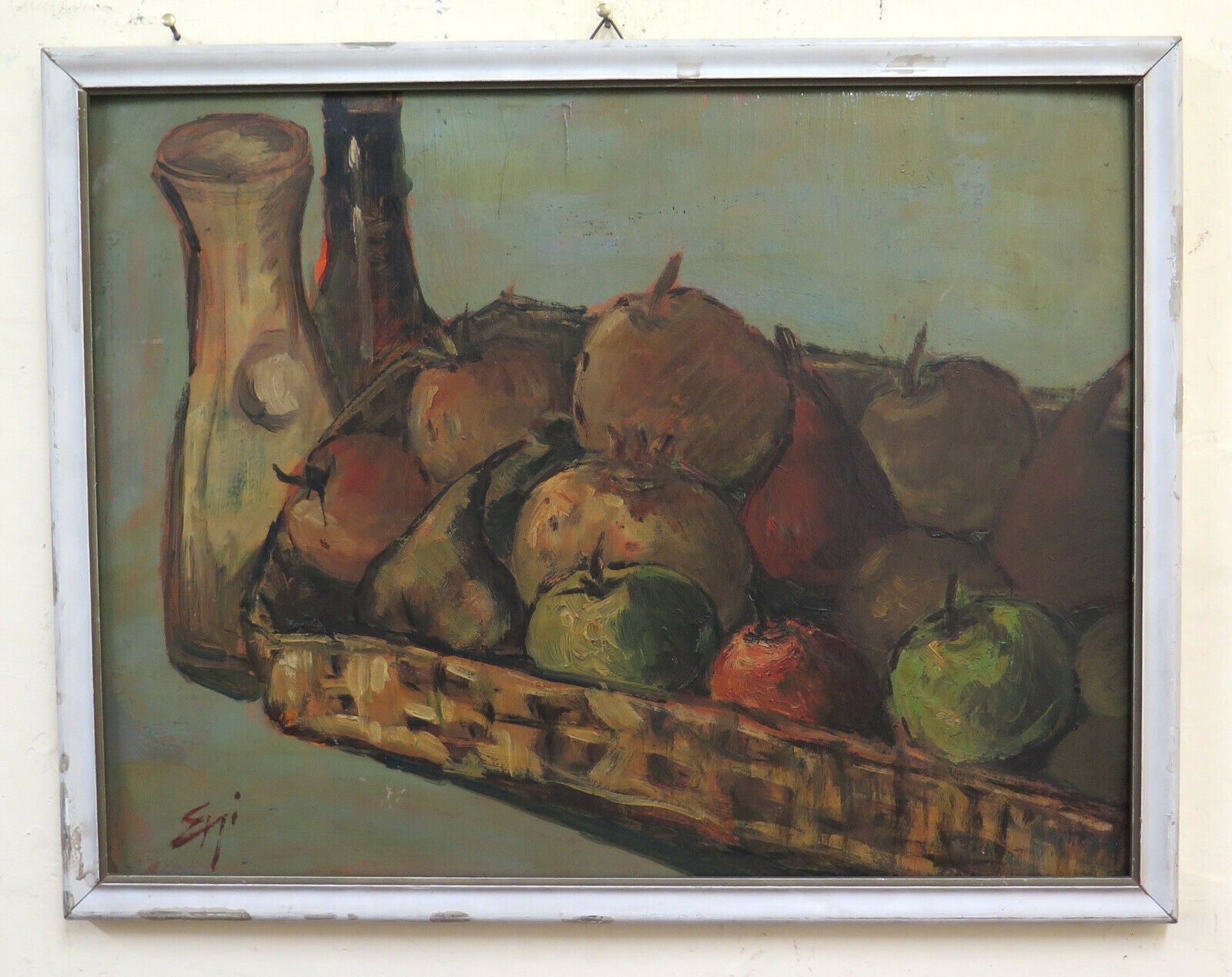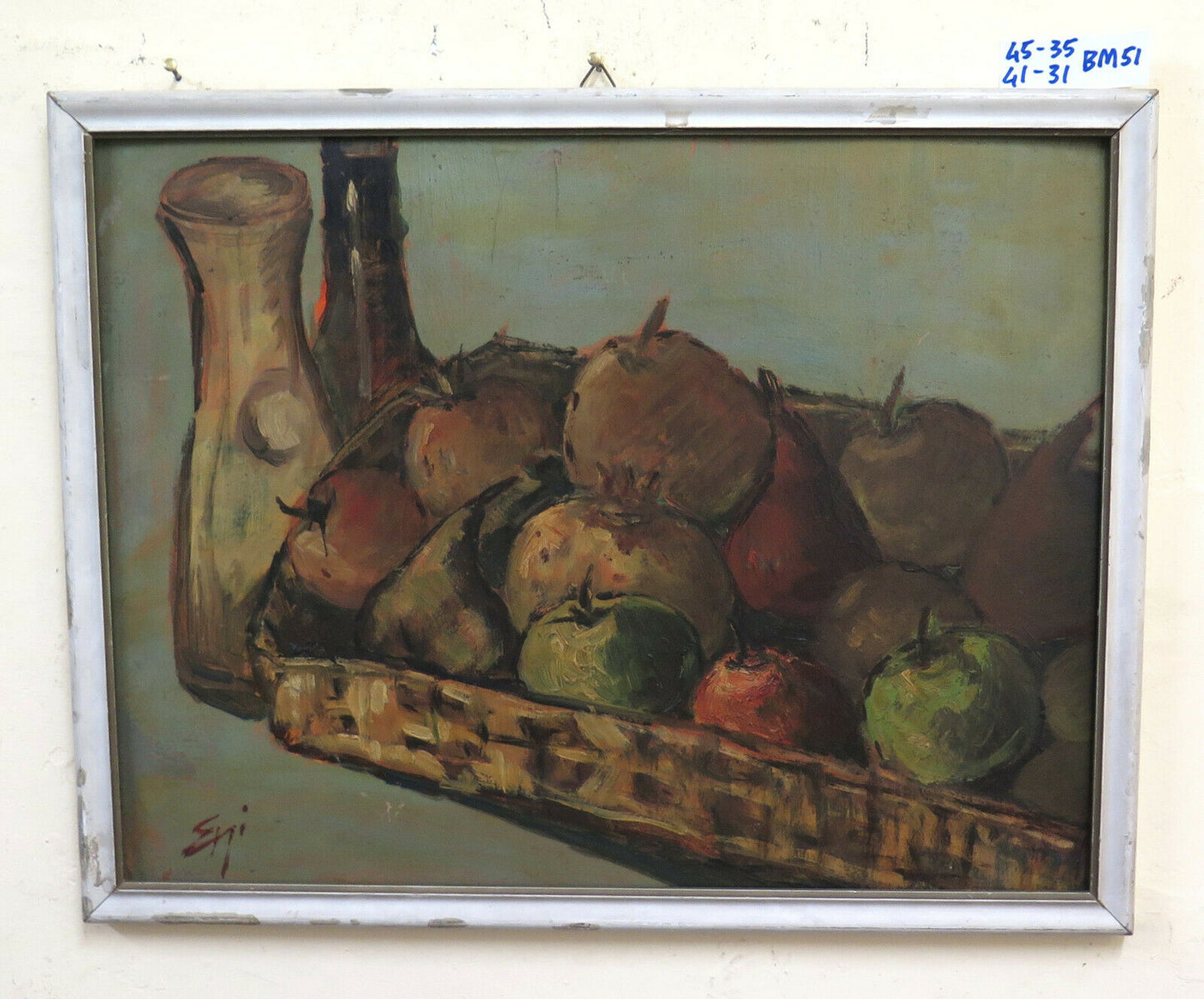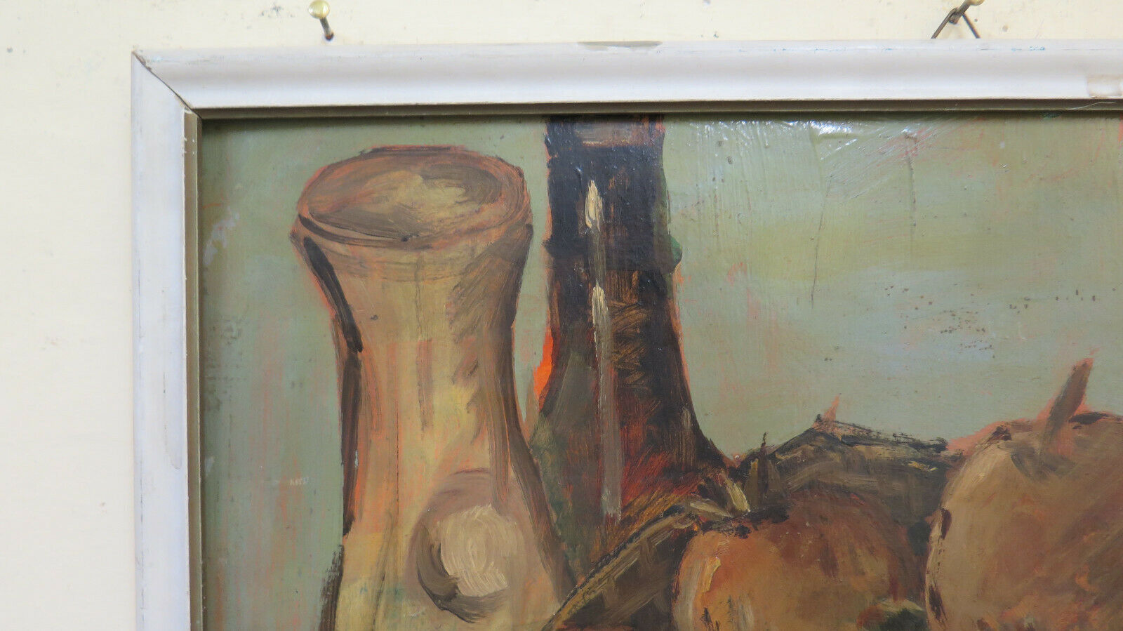 QUADRO ANTICO DIPINTO OLIO SU TAVOLA NATURA MORTA E MAZZO DI FIORI AL RETRO BM51