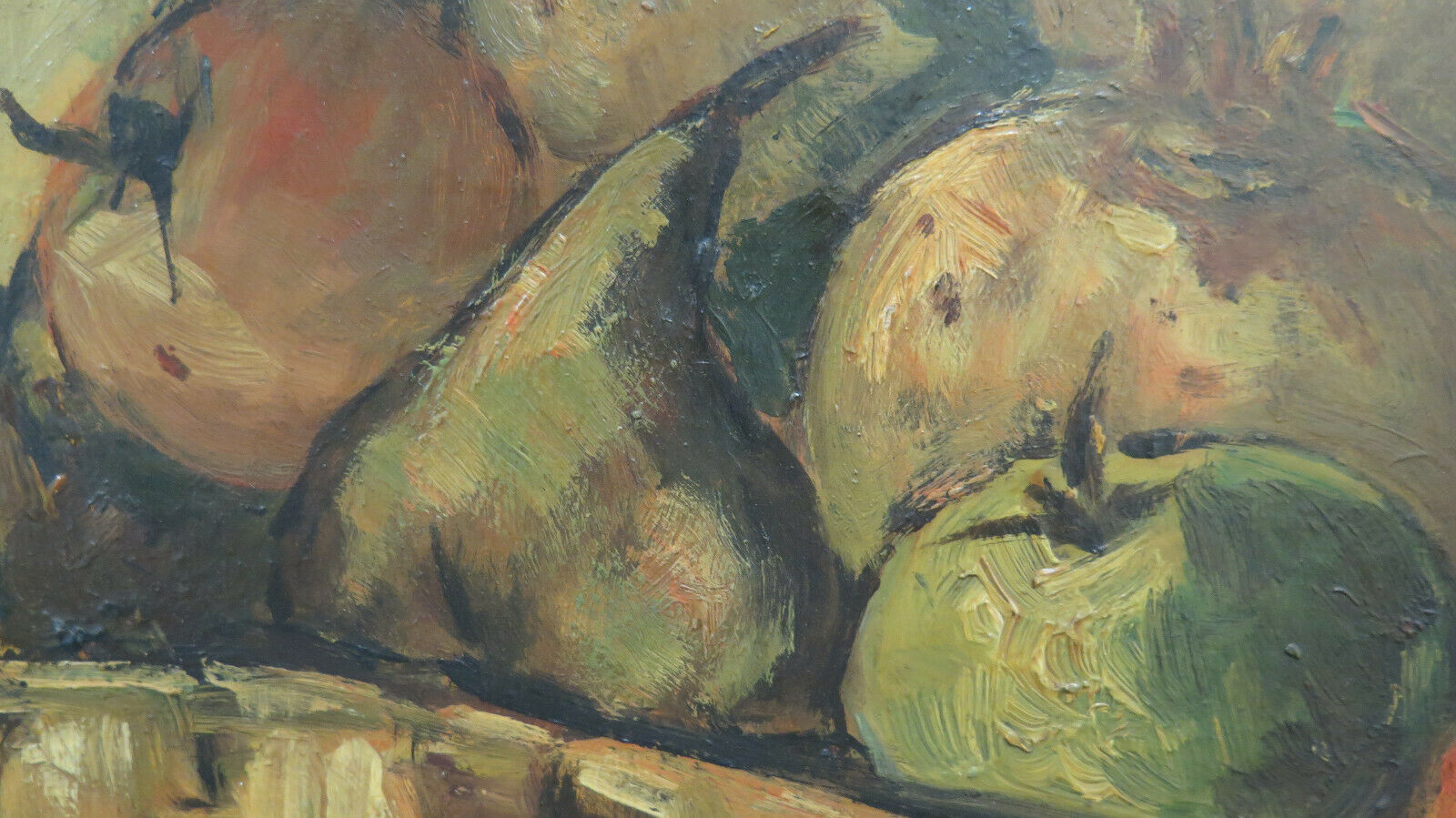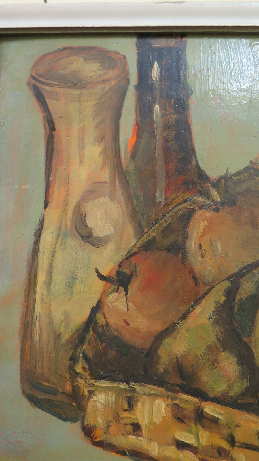 Elegante natura morta dai colori tenui firmata in basso a sinistra e con un bel mazzo di fiori dipinto sul retro.
