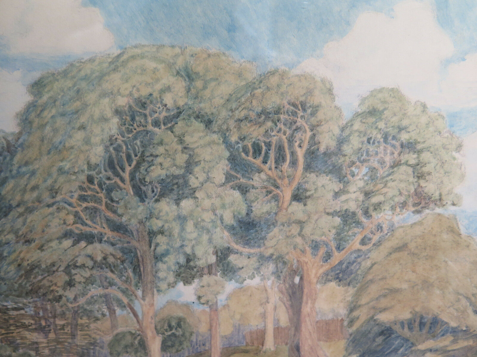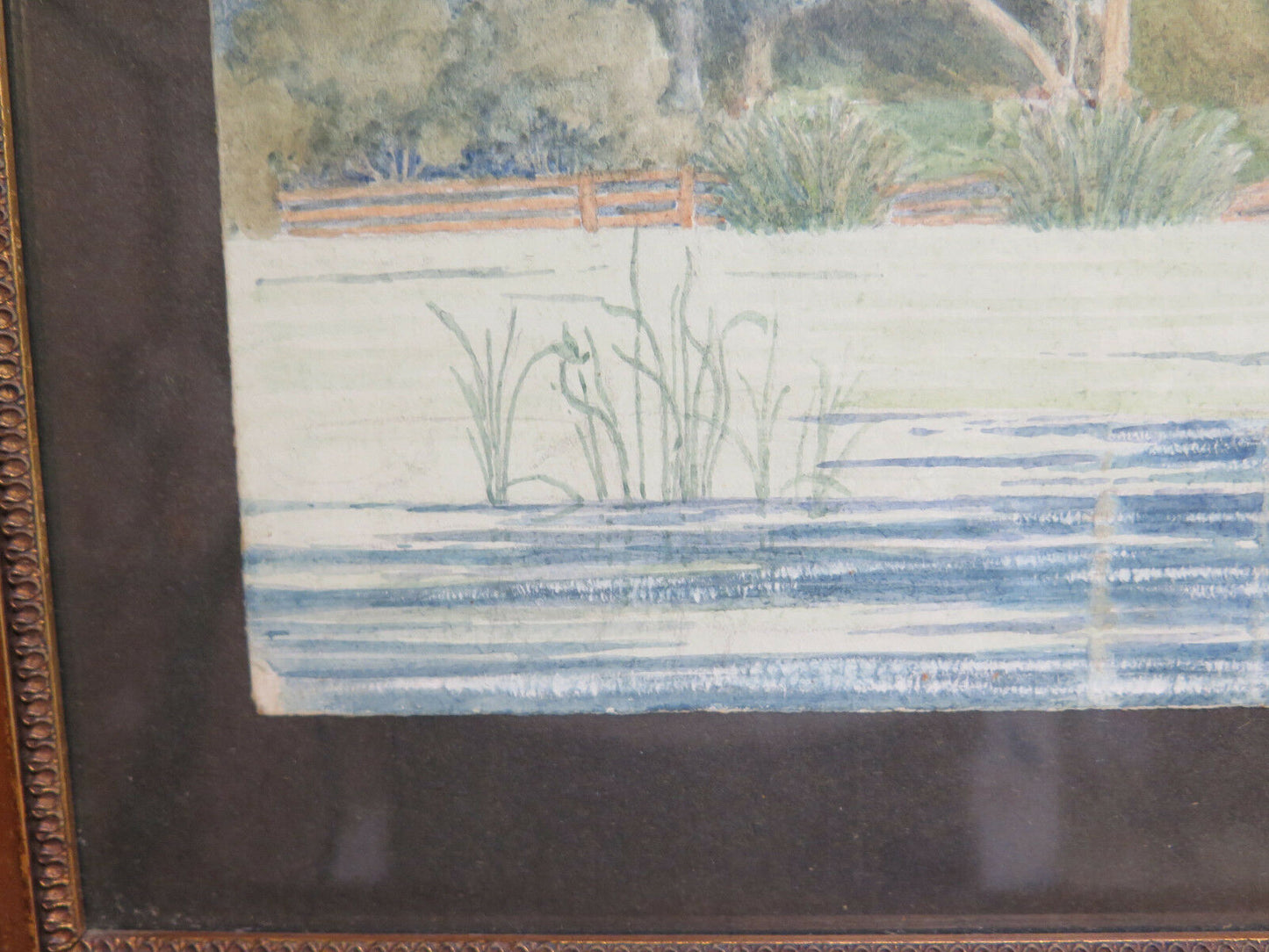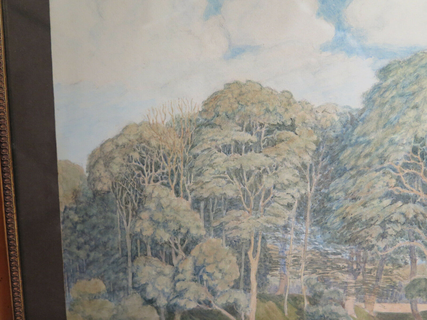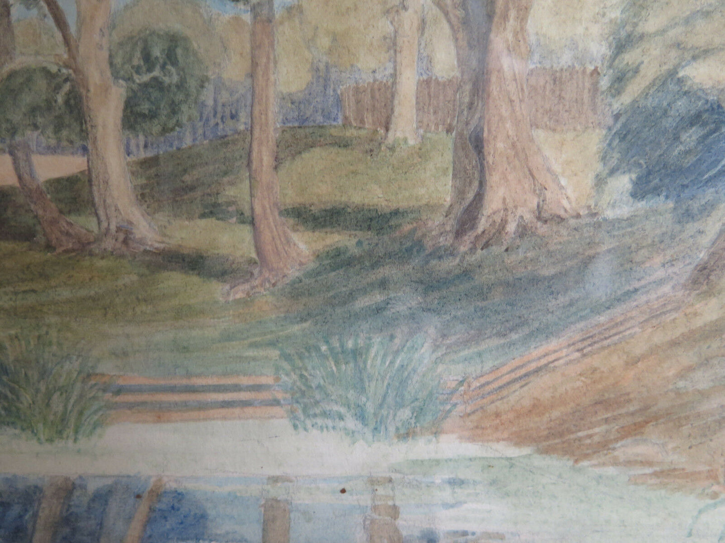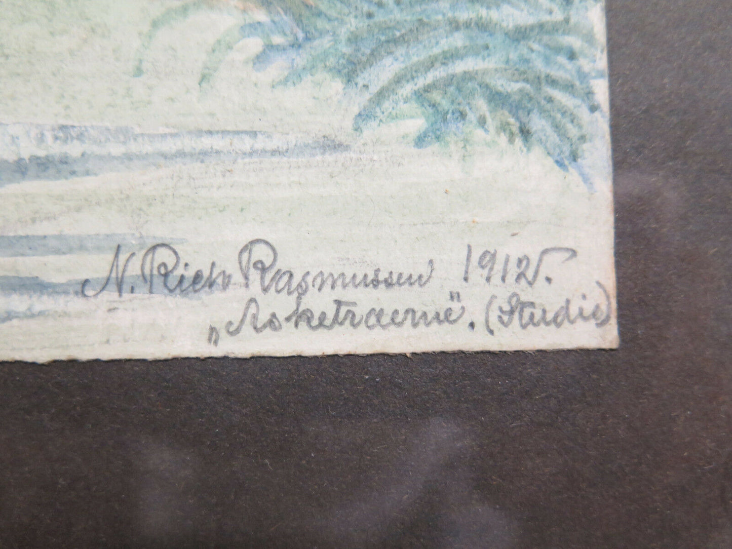 Finisssimo acquerello su carta firmato N. Rien Rasmussen 1912 raffigurante un paesaggio della campagna danese.