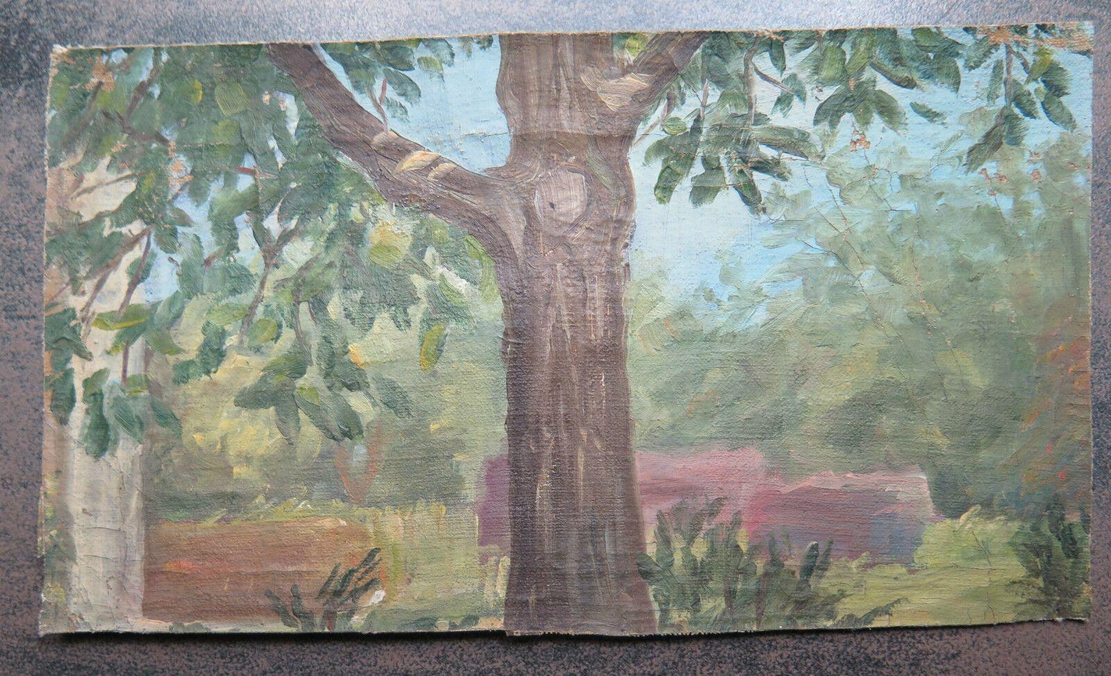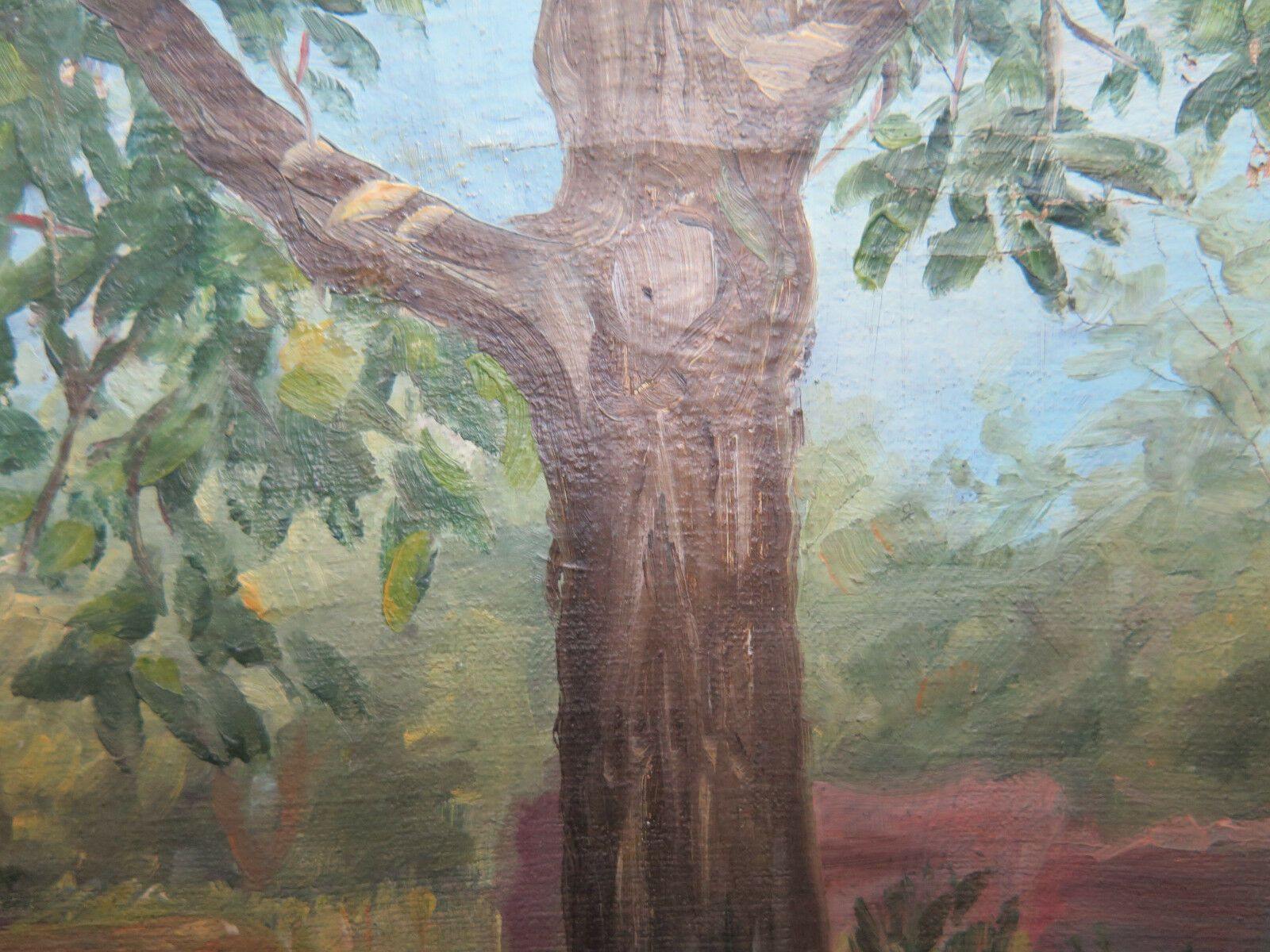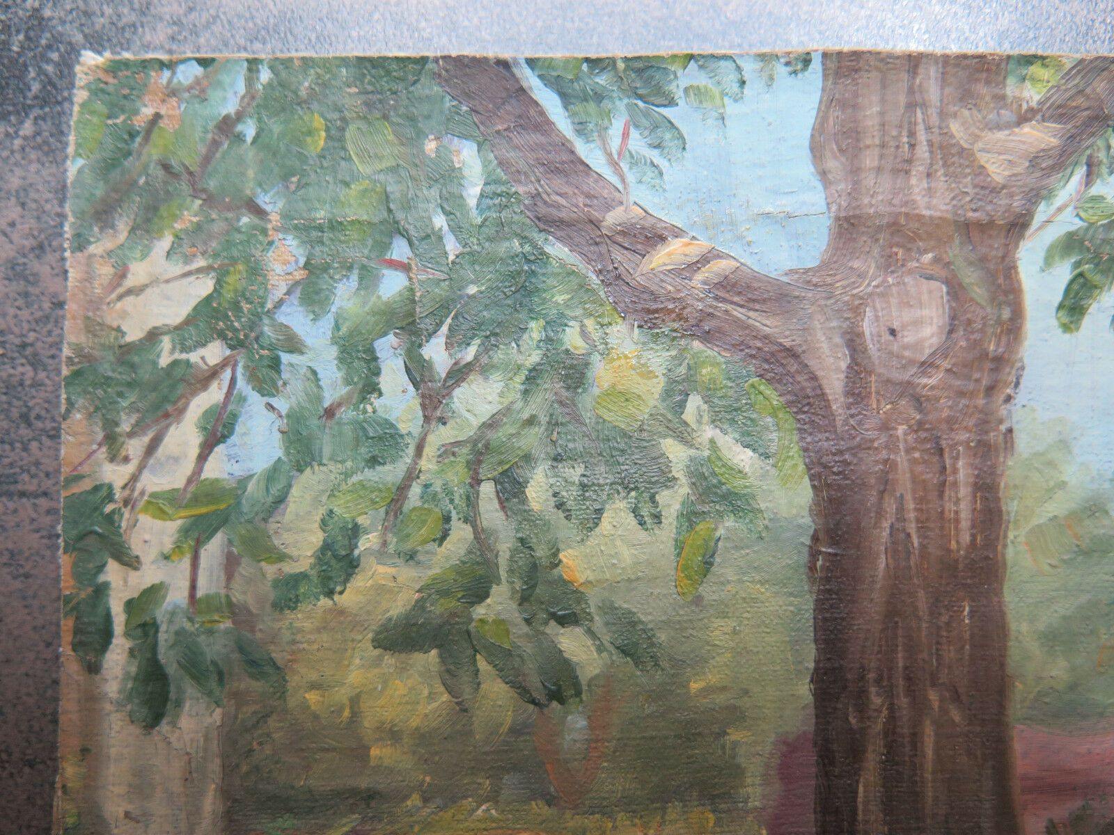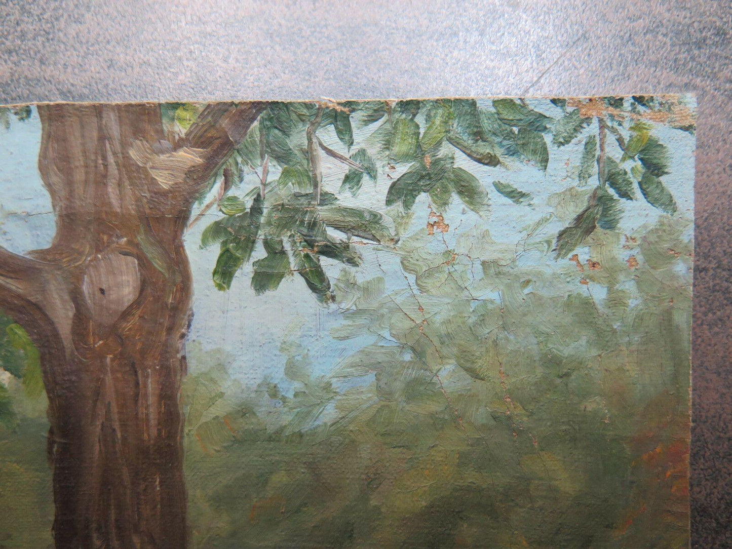QUADRO ANTICO DIPINTO SU TAVOLA VEDUTA PAESAGGIO CON ALBERI ORIGINALE p1