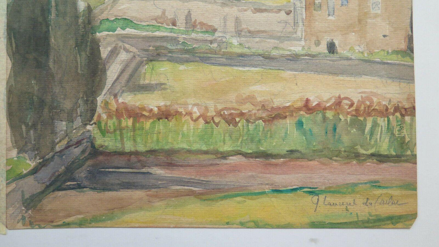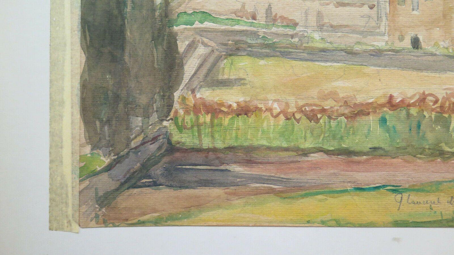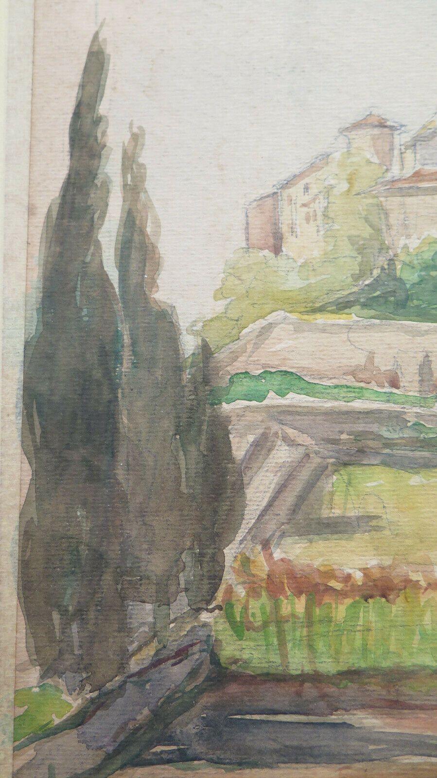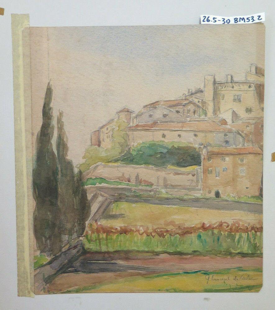 QUADRO ANTICO FIRMATO PAESAGGIO VEDUTA PAESE FRANCIA ACQUERELLO SU CARTA BM53.2