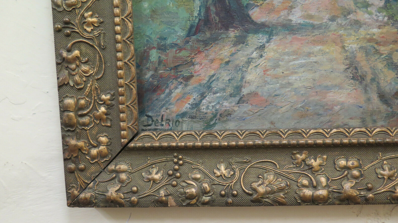 QUADRO ANTICO PAESAGGIO DI CAMPAGNA INIZIO 900 FIRMATO DELRIO CORNICE COEVA BM51