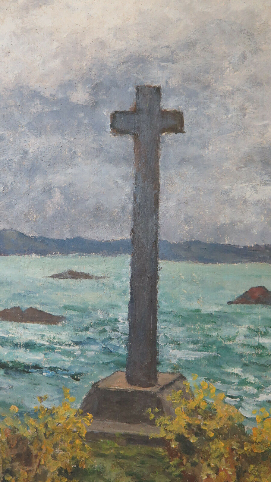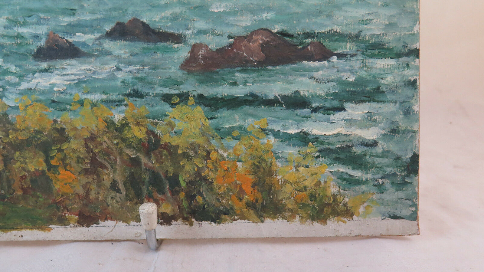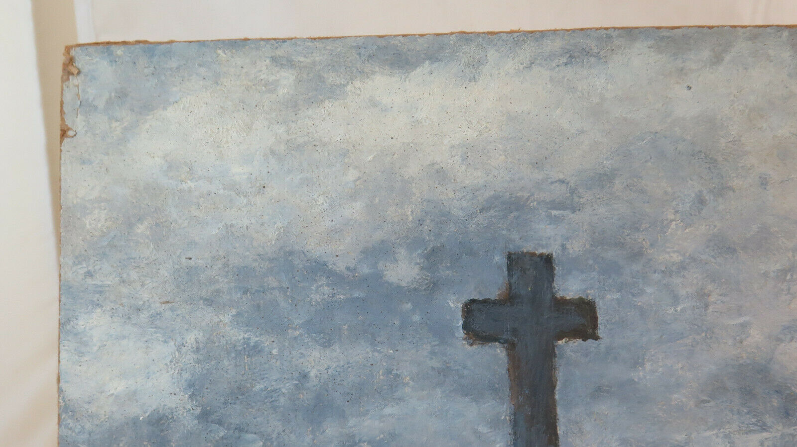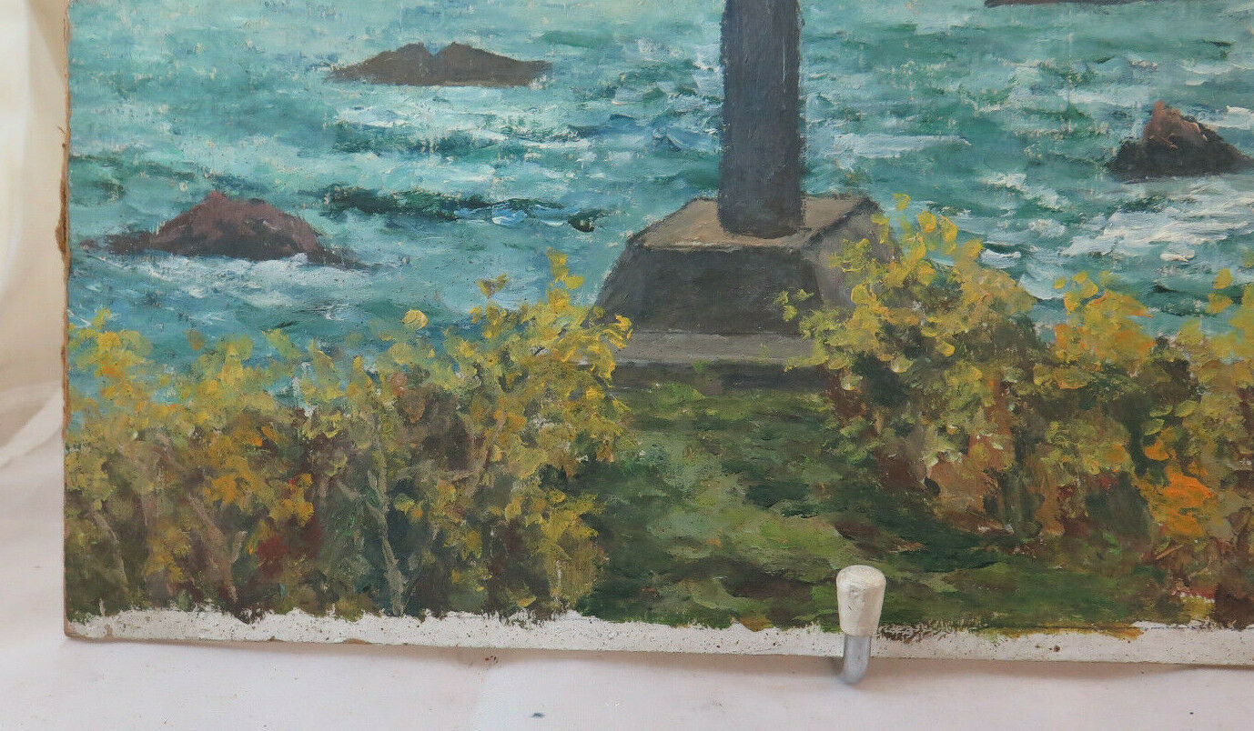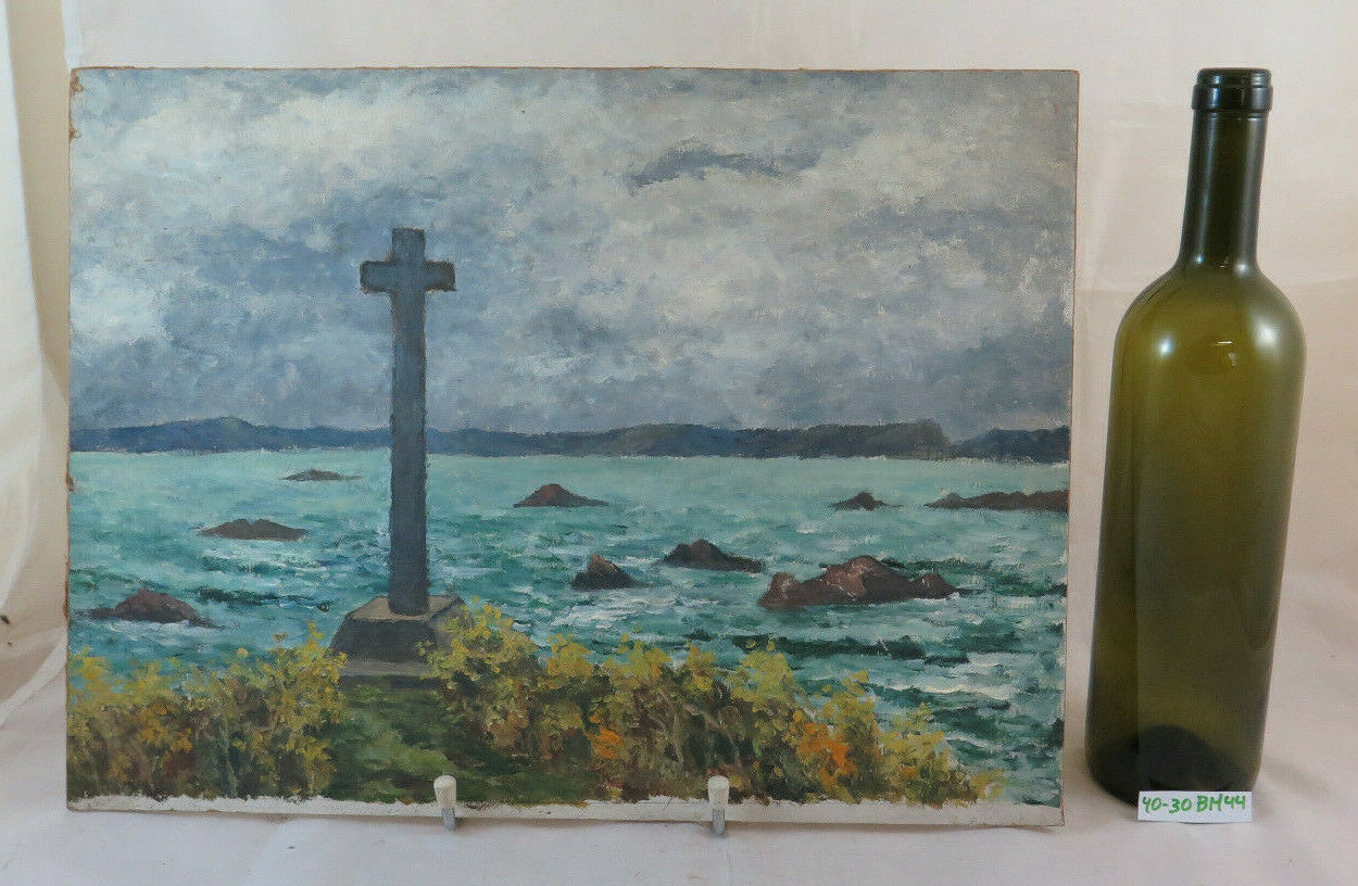QUADRO ANTICO PAESAGGIO MARE MARINA CROCE STILE IMPRESSIONISTA OLIO TAVOLA BM44