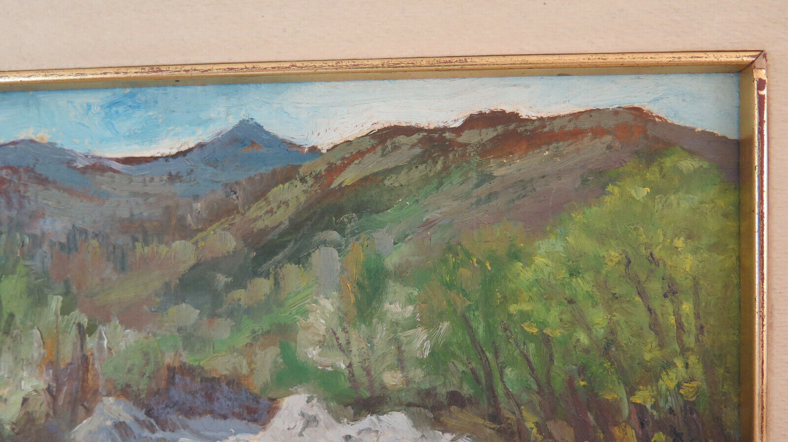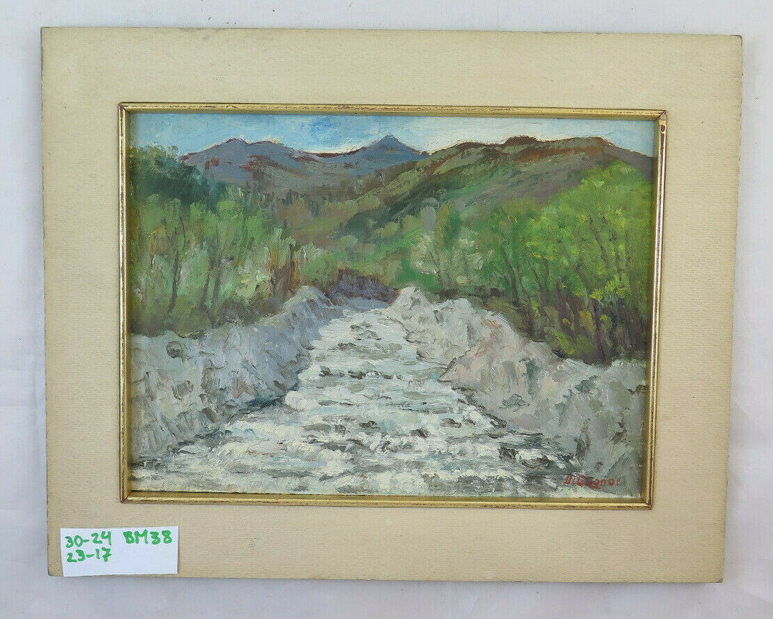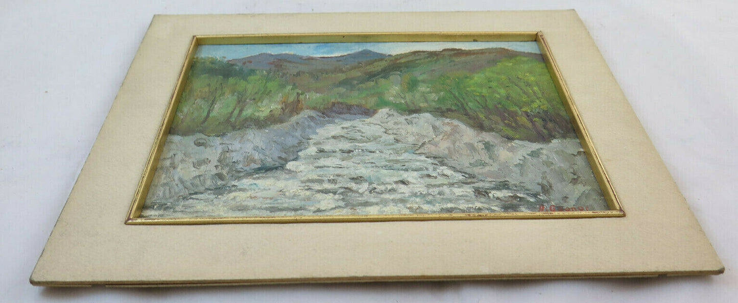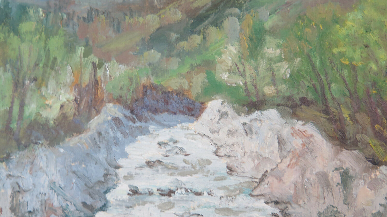 Dipinto ad olio su tavola opera del pittore piemontese Delfino Gagnor (1896-1970) che raffigura una veduta della valle di Susa con un torrente che scende dalle montagne verso l'osservatore.