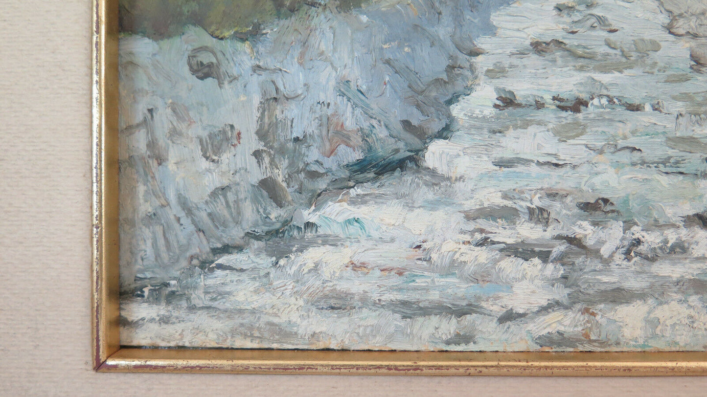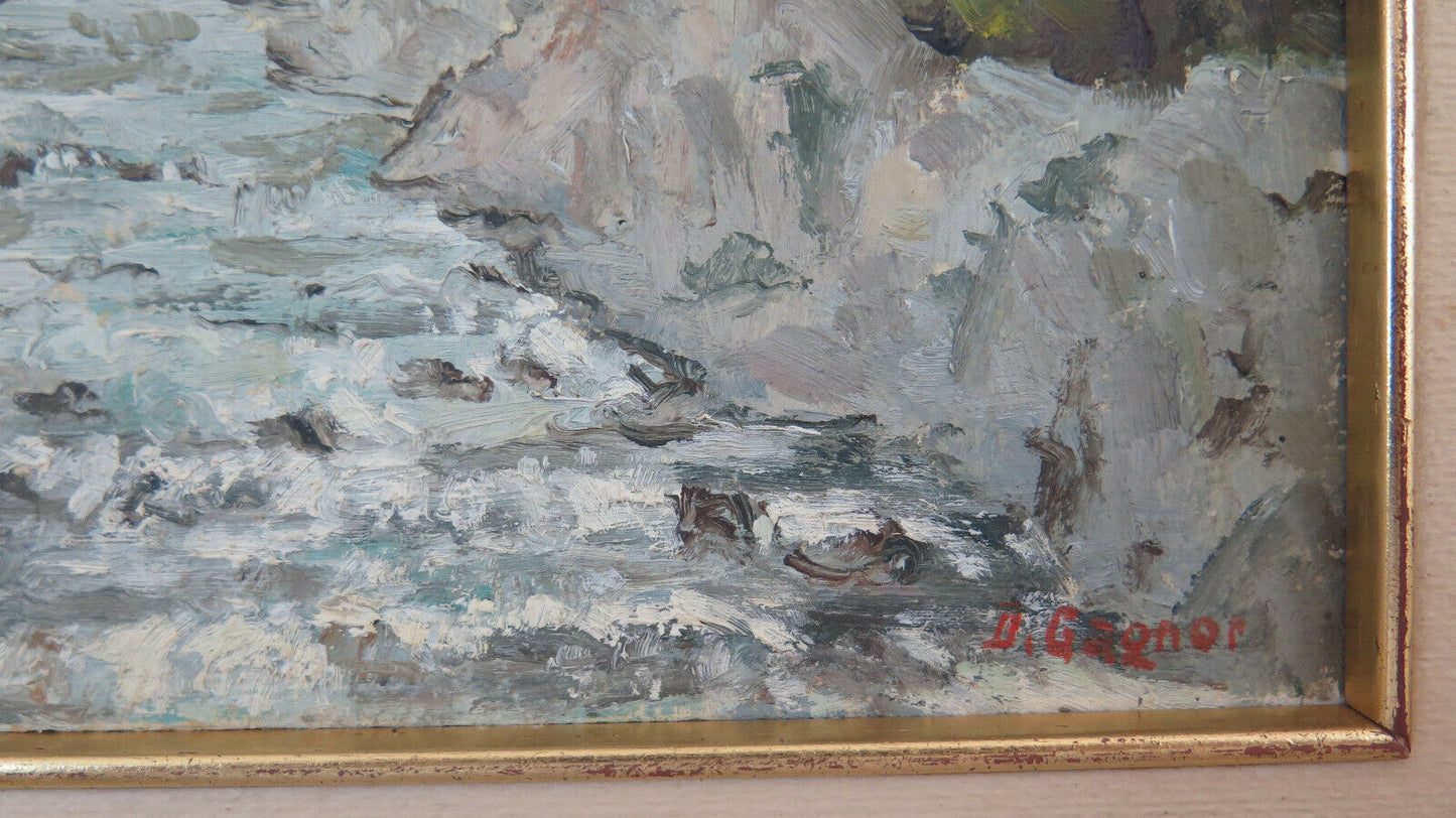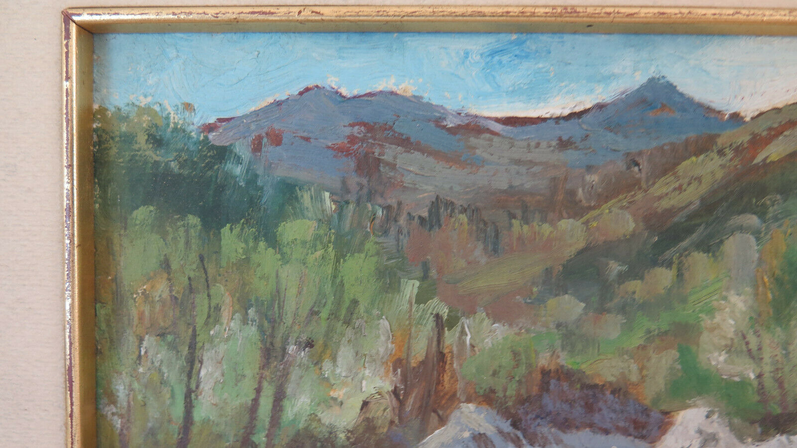 Dipinto ad olio su tavola opera del pittore piemontese Delfino Gagnor (1896-1970) che raffigura una veduta della valle di Susa con un torrente che scende dalle montagne verso l'osservatore.