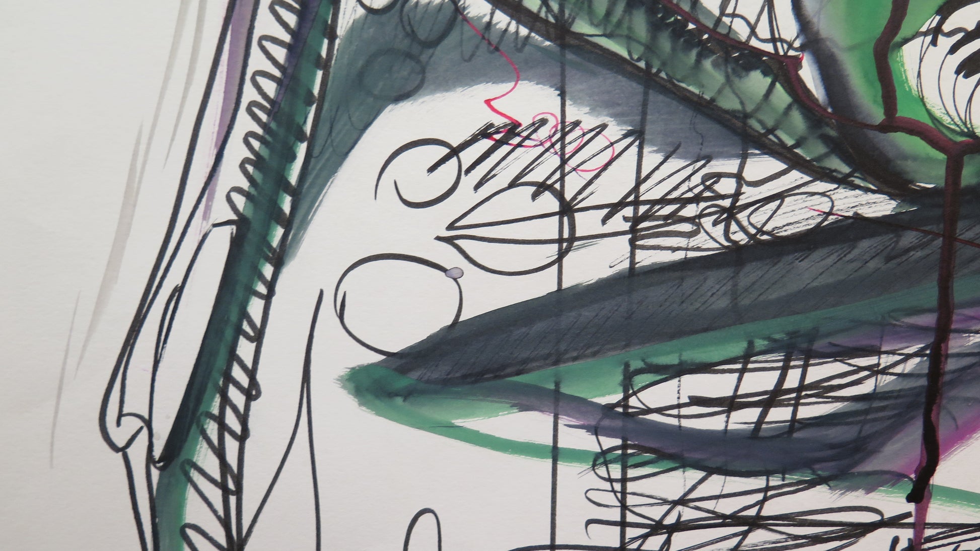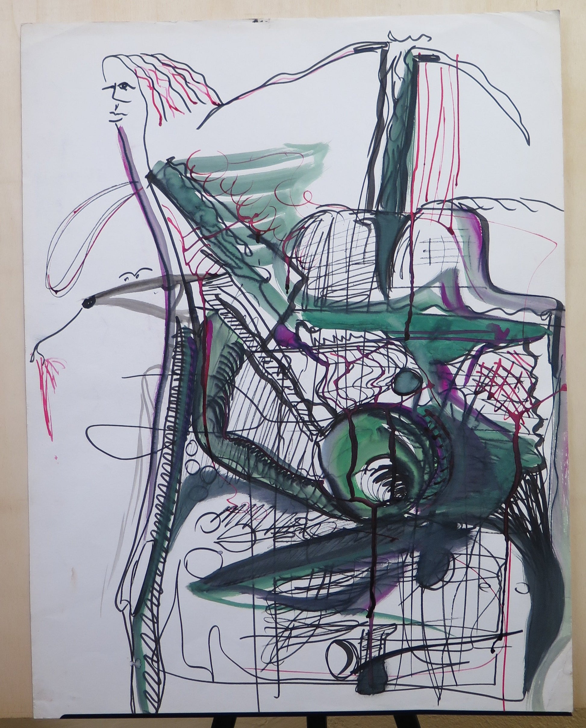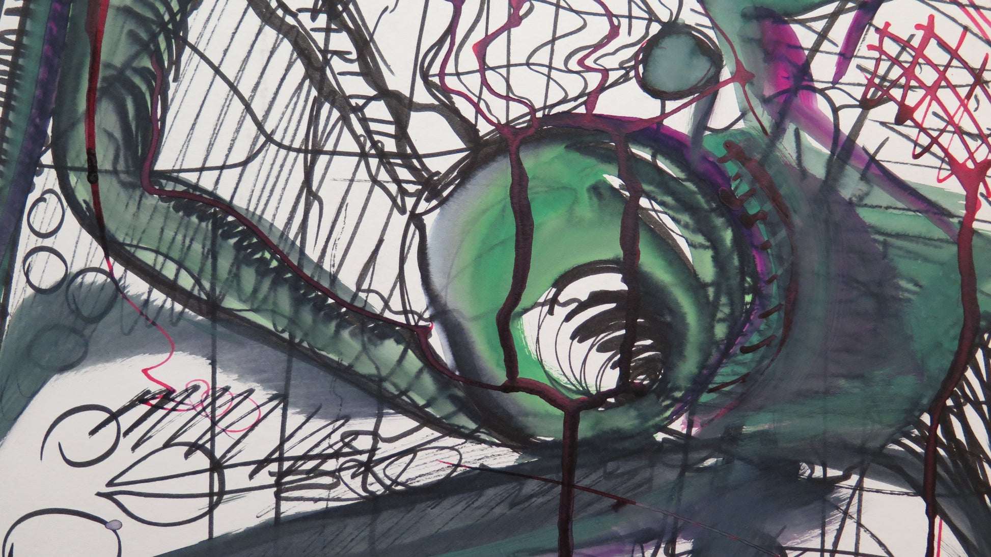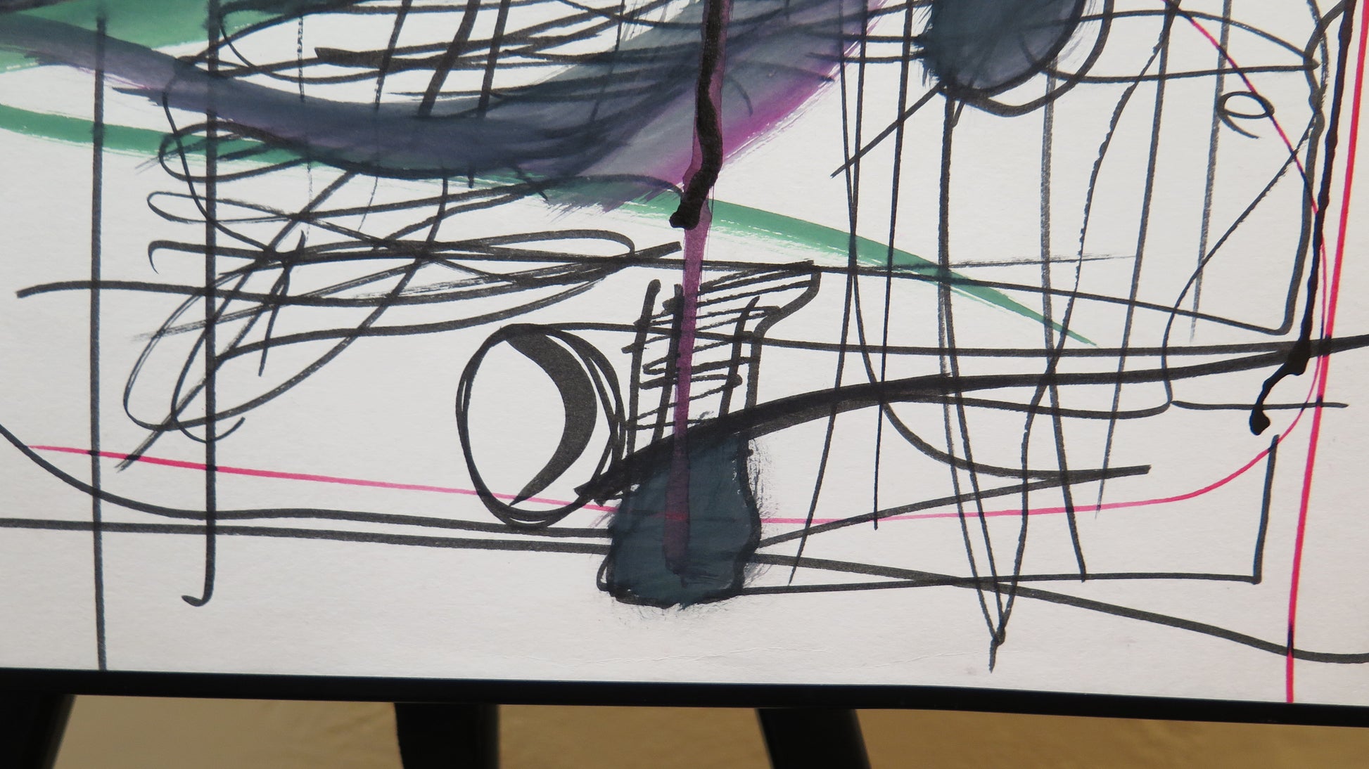 Grande e coloratissimo dipinto astratto dalle linee sottili.