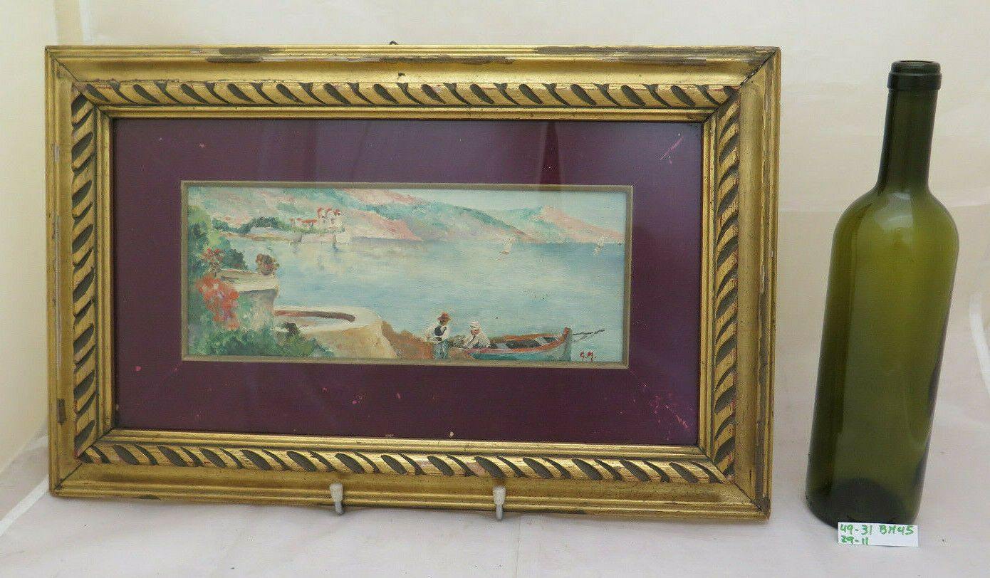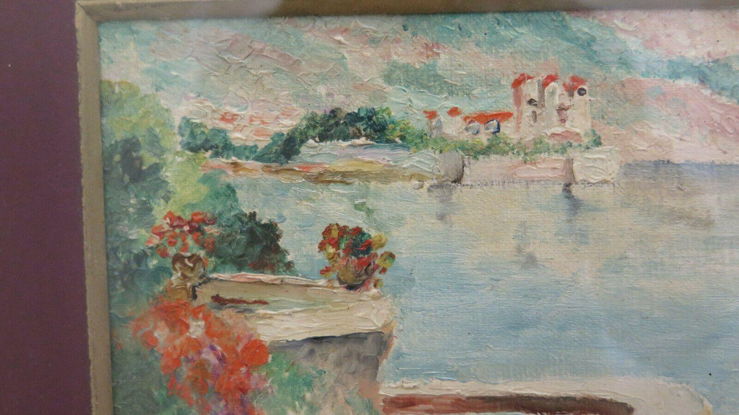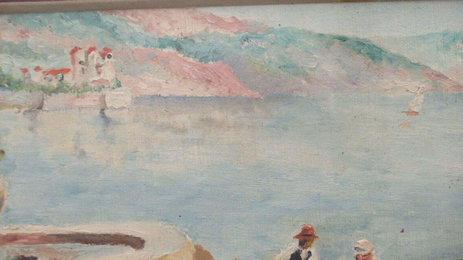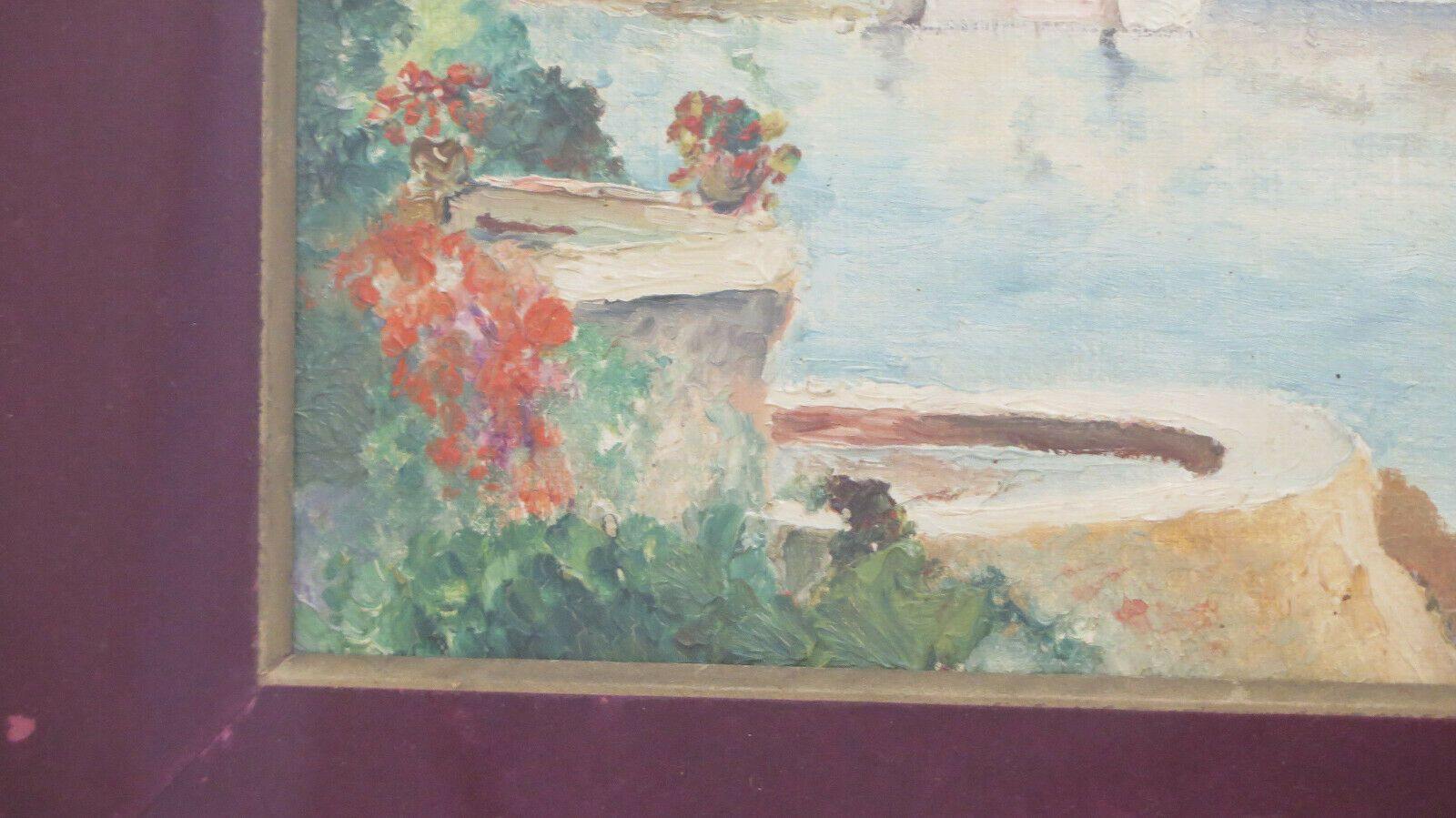 QUADRO D'EPOCA PAESAGGIO RIVIERA FRANCESE MEDITERRANEO DIPINTO OLIO FIRMATO BM45