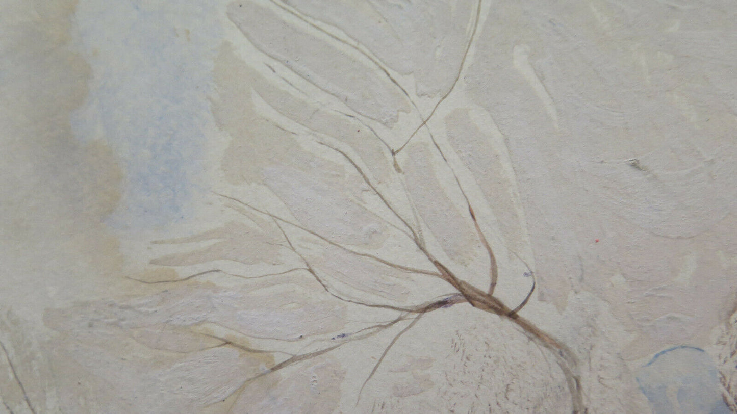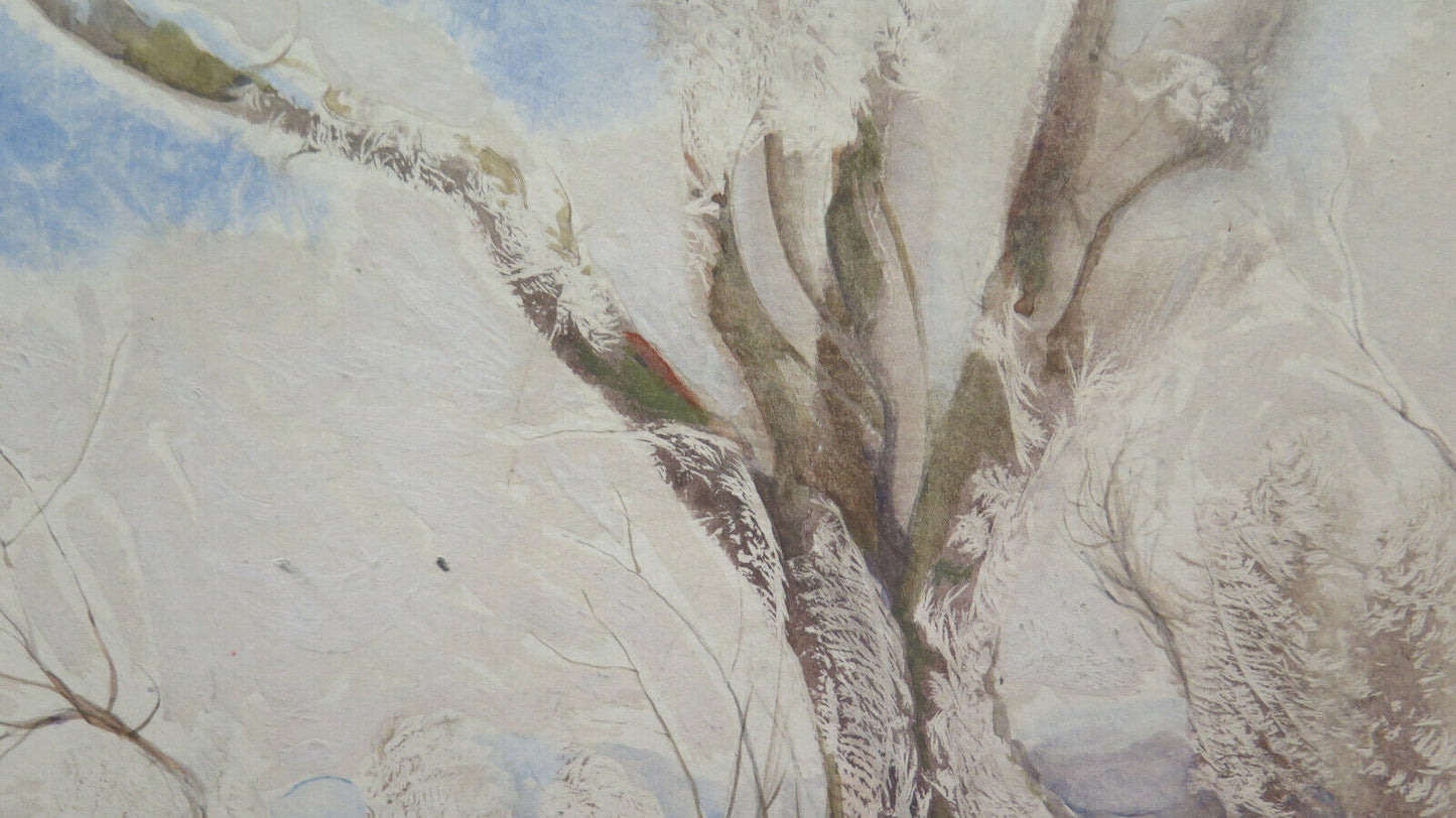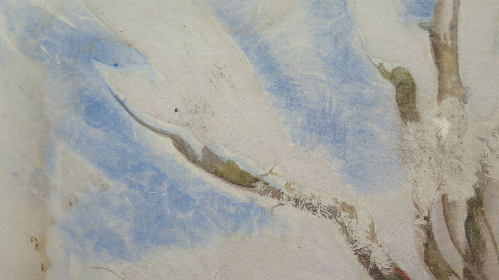 QUADRO DIPINTO ACQUERELLO CON TECNICA DEL GELO PAESAGGIO INVERNALE NEVE GELO P8