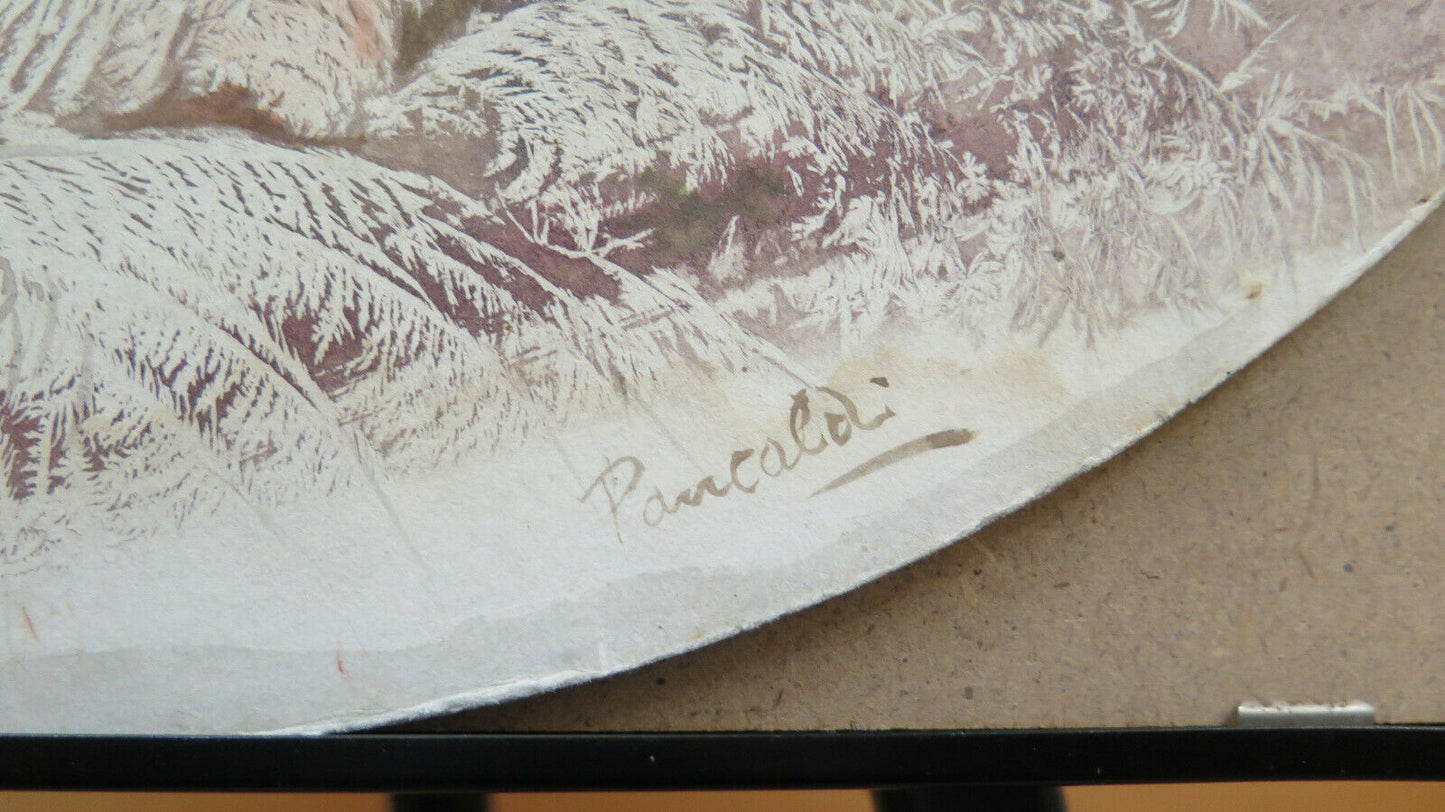 Supporto e tecnica: acquerello su cartoncino. Realizzato con la "tecnica del gelo" per ottenere la cristallizzazione di alcuni aree della superficie pittorica, tale tecnica consisteva nel porre al freddo vero e proprio il dipinto ancora fresco per poi lavorarlo successivamente. Questo effetto è stato creato dal pittore Pancaldi verso i primi anni Sessanta ed affinato per tutta la sua carriera fino a giungere ai risultati straordinari dei dipinti degli anni 80/90.